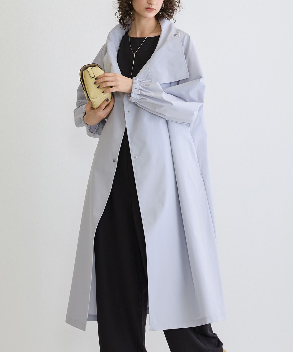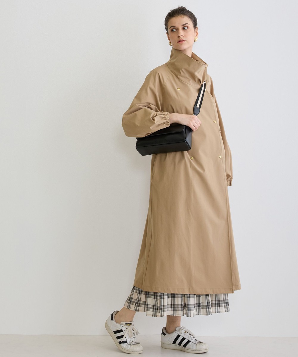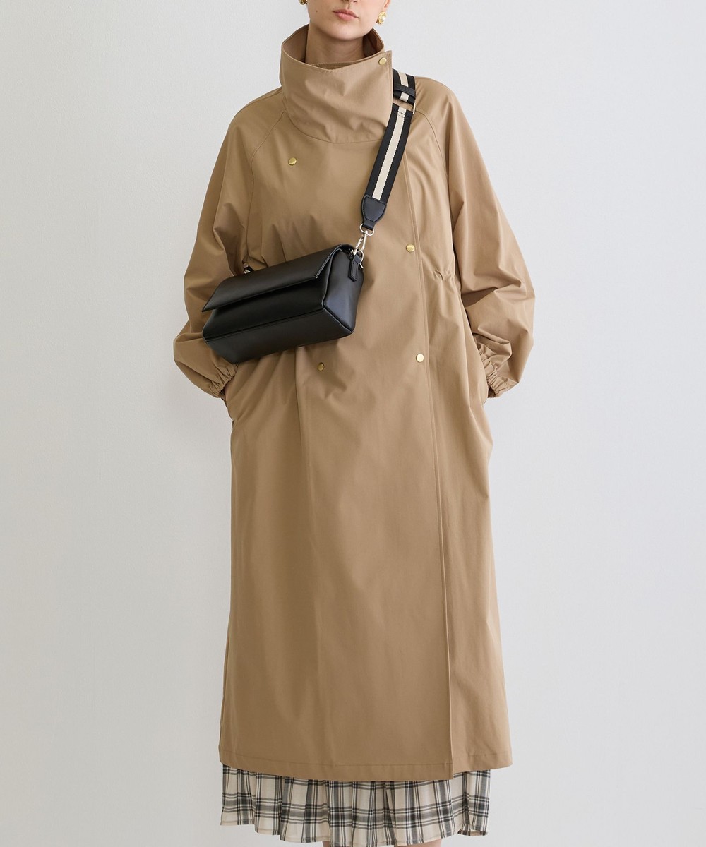トレンド感あるスタンドコート、軽量でさらっと羽織れます。