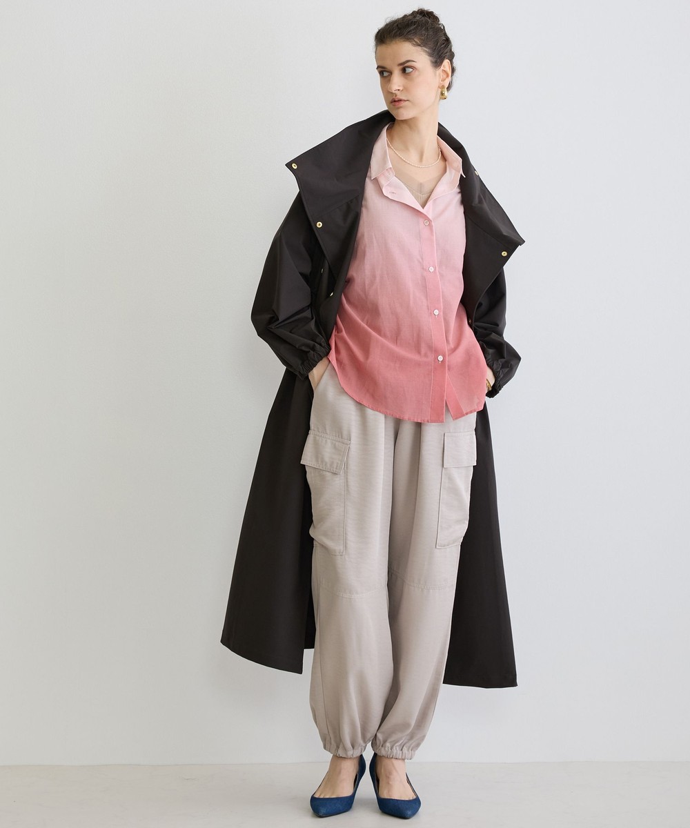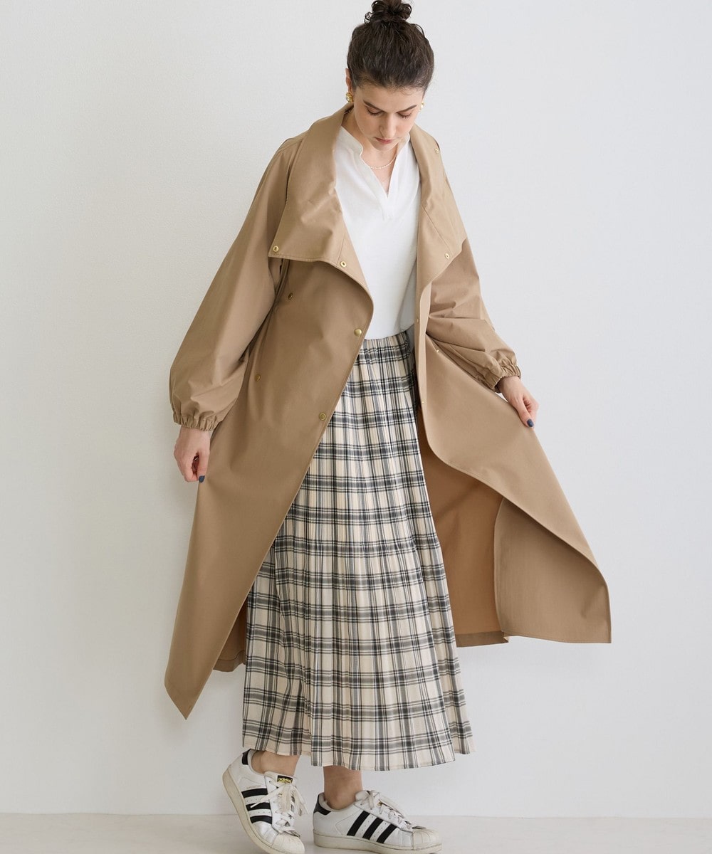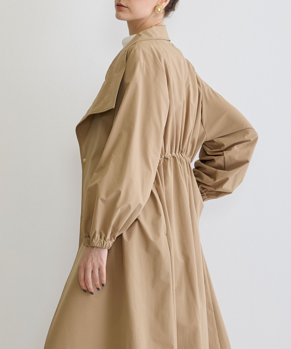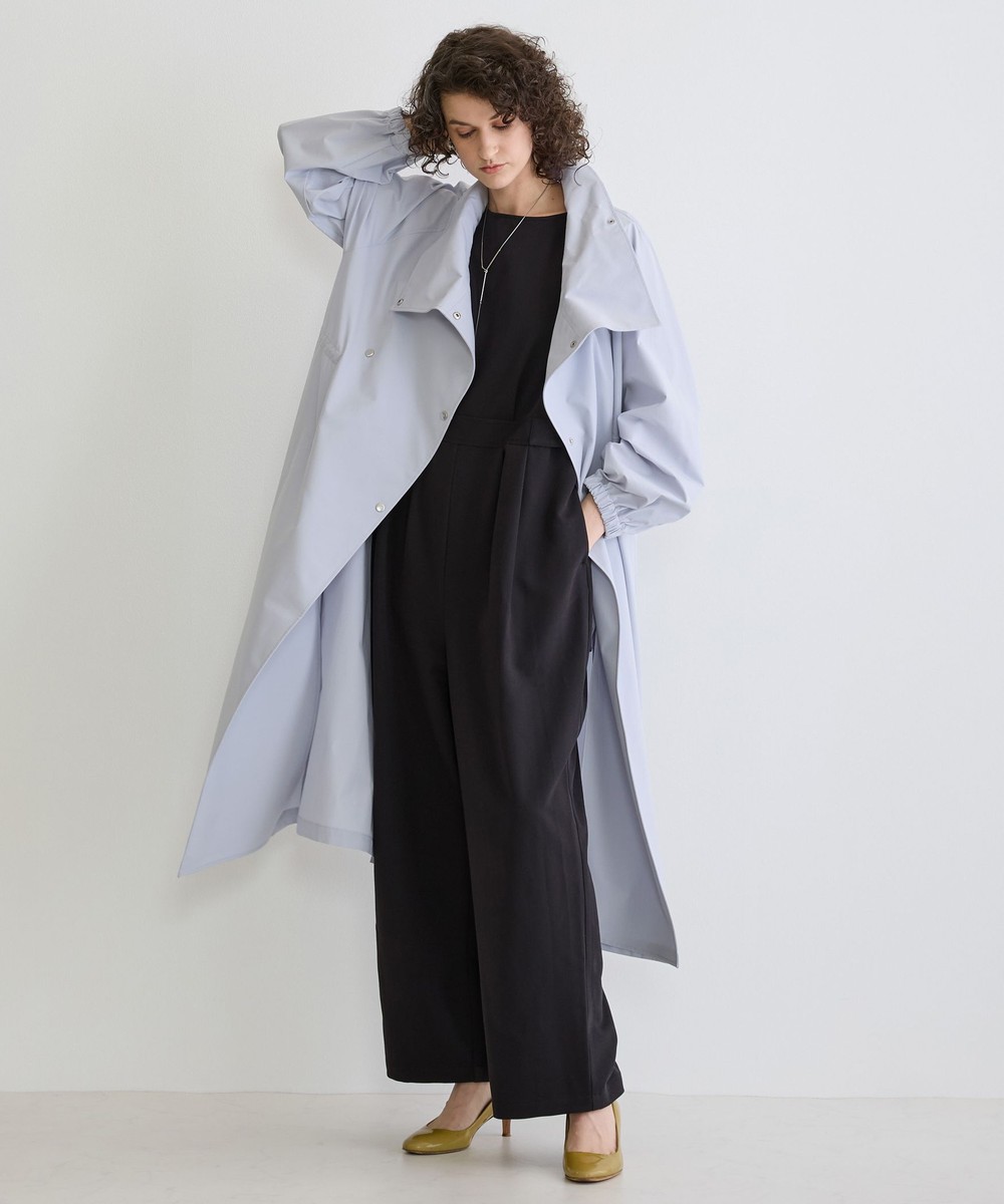 トレンド感あるスタンドコート、軽量でさらっと羽織れます。