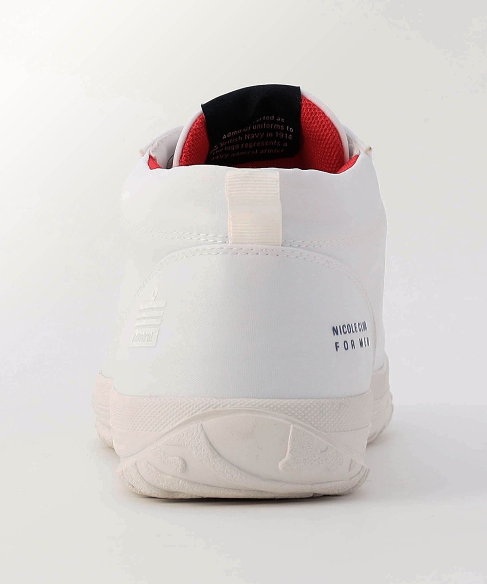 木型やソール、アッパー素材はインラインそのままですが、フォーメンコラボネームを付け、かかとの内側にはブランドロゴを印字、オリジナルハトメにシューレースには別注デュブレを通し、赤のライニングに変更する事でトリコロール配色を意識したオリジナリティの高いスニーカーに仕上げました。