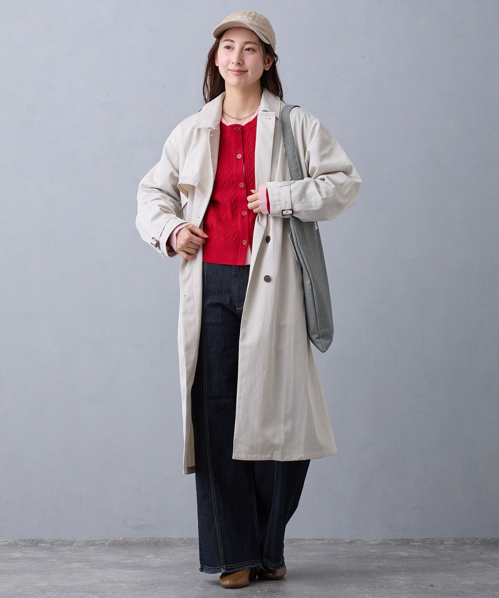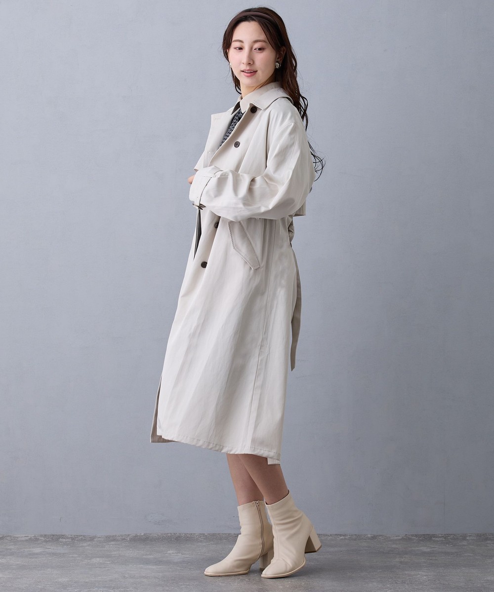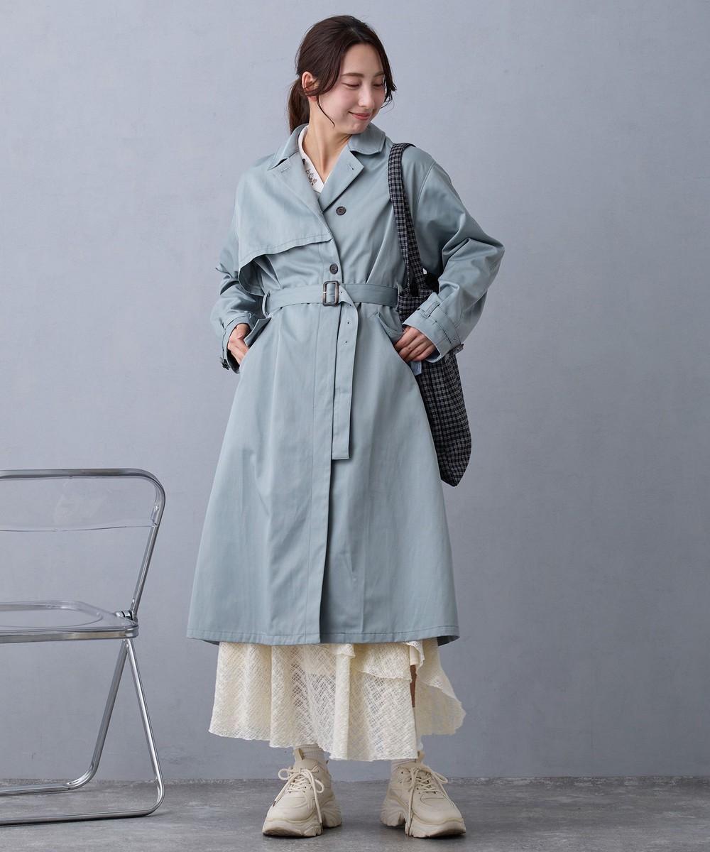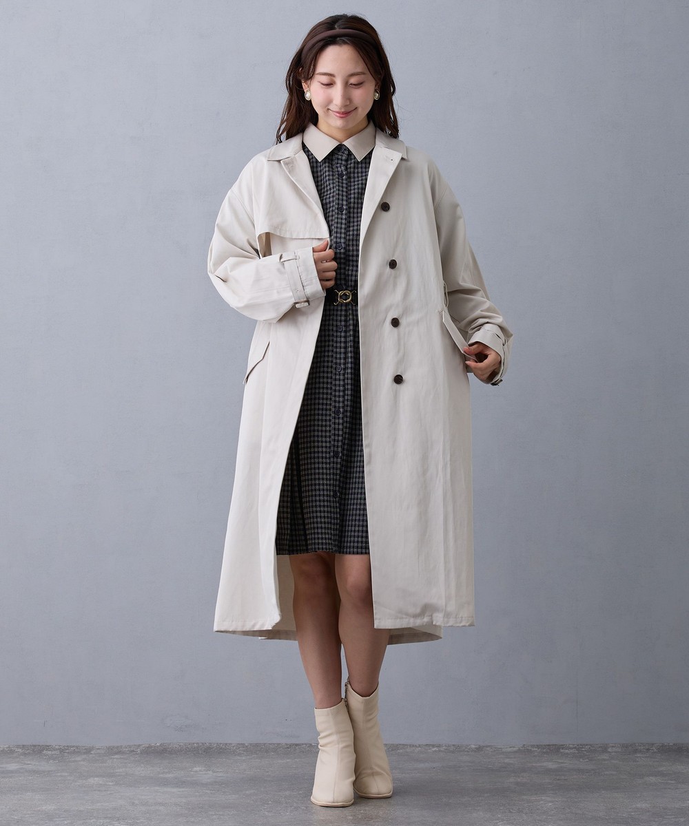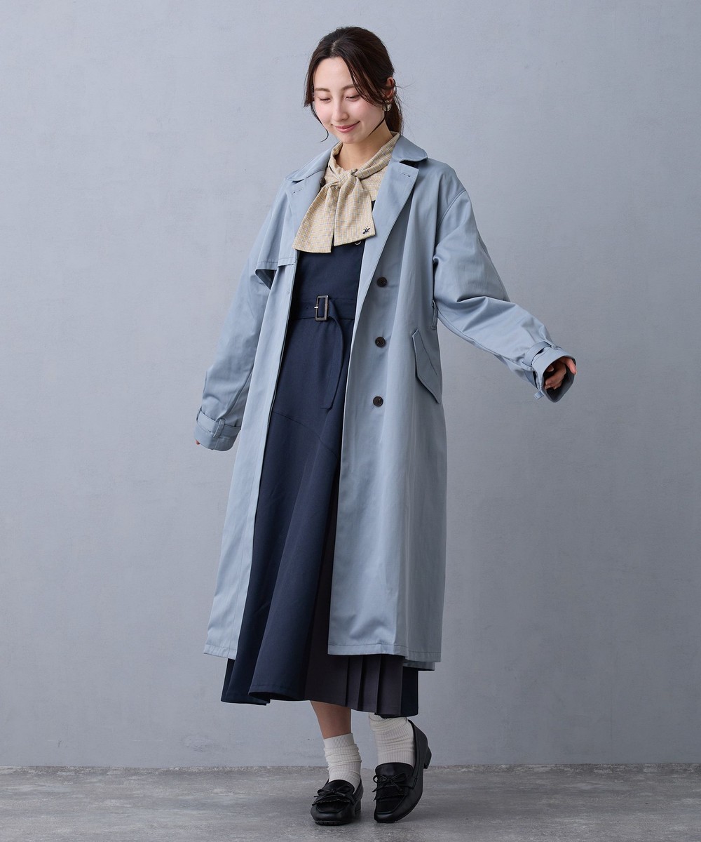 張りのあるしっかりした生地ながらもややオーバーなシルエットで、かっちりしすぎず普段のおでかけにも羽織りやすいコート。