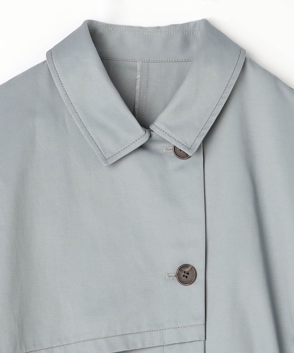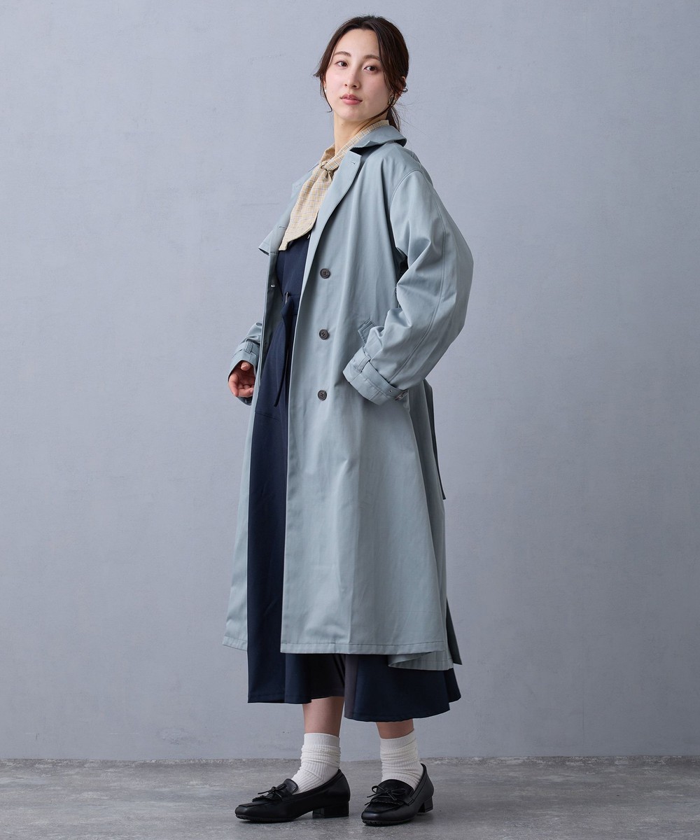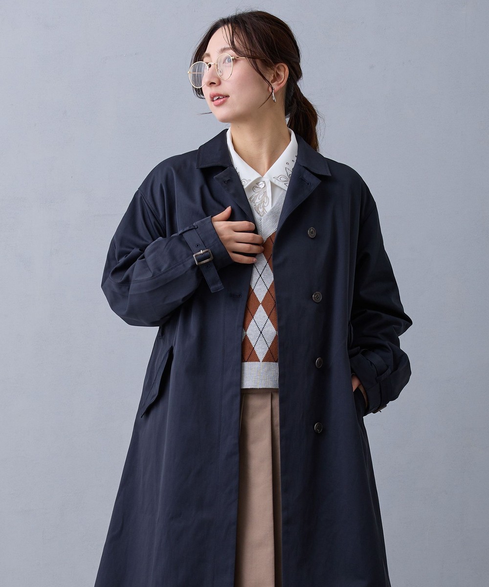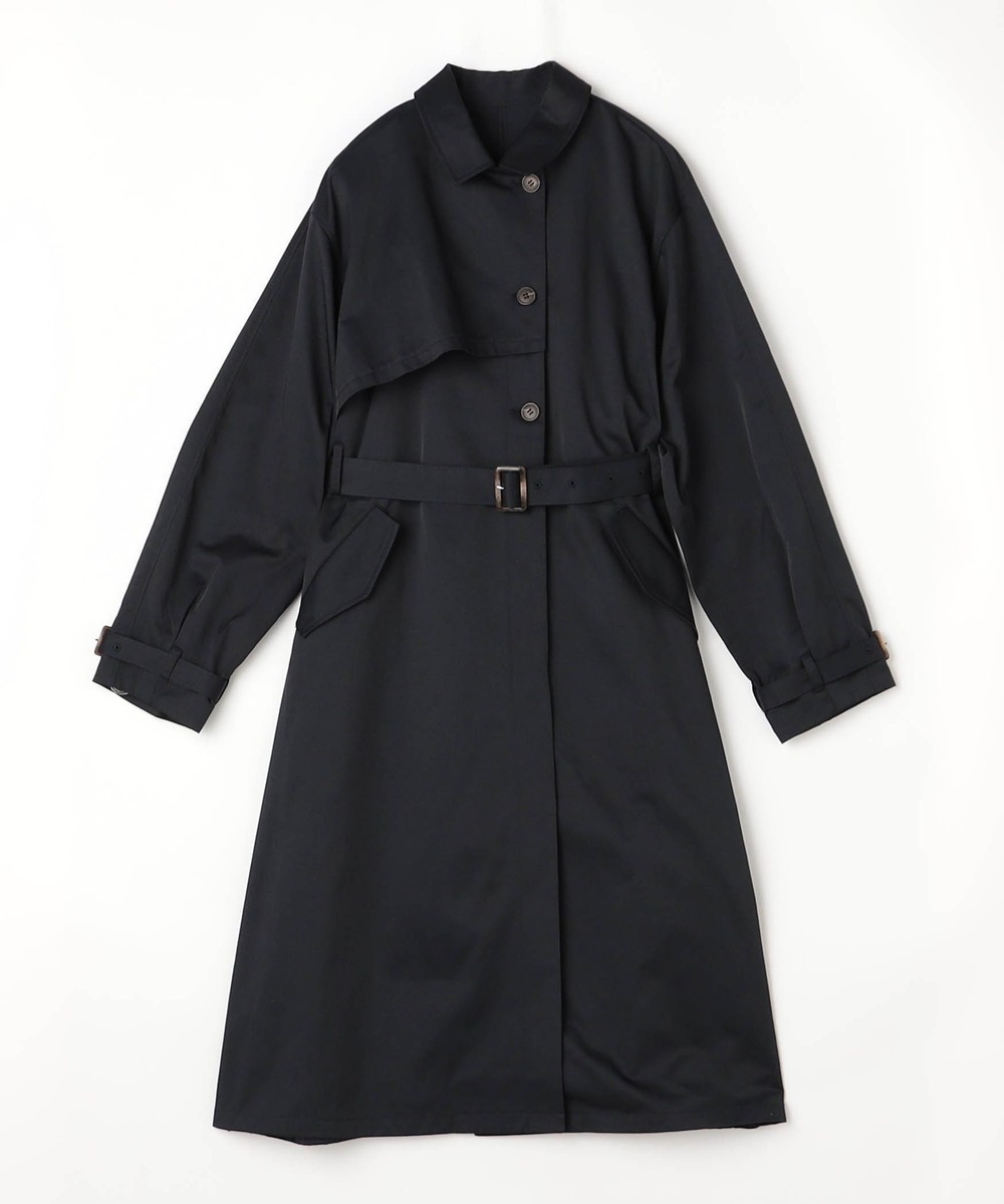 張りのあるしっかりした生地ながらもややオーバーなシルエットで、かっちりしすぎず普段のおでかけにも羽織りやすいコート。