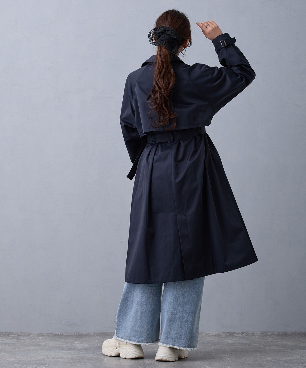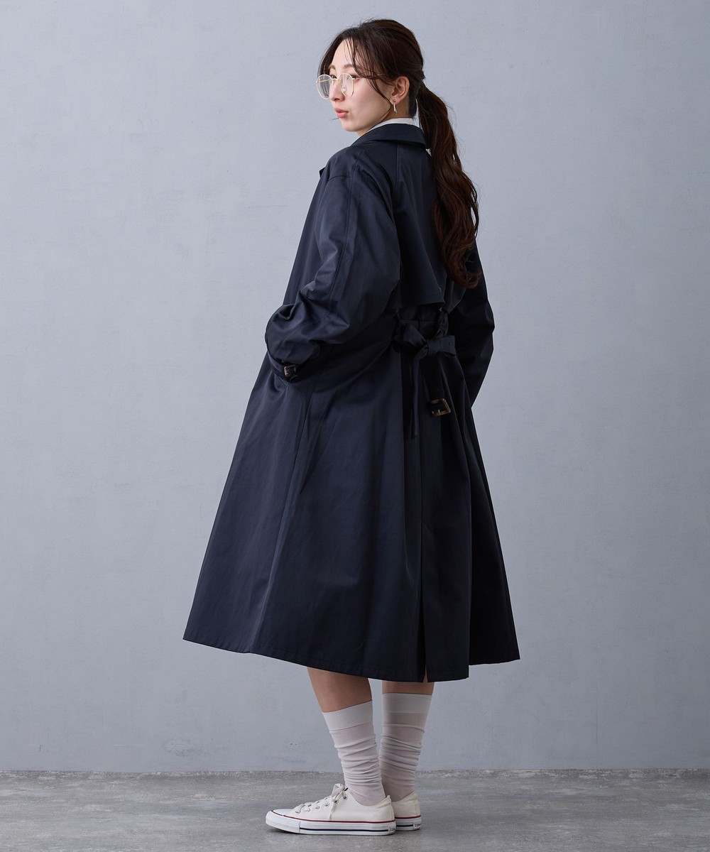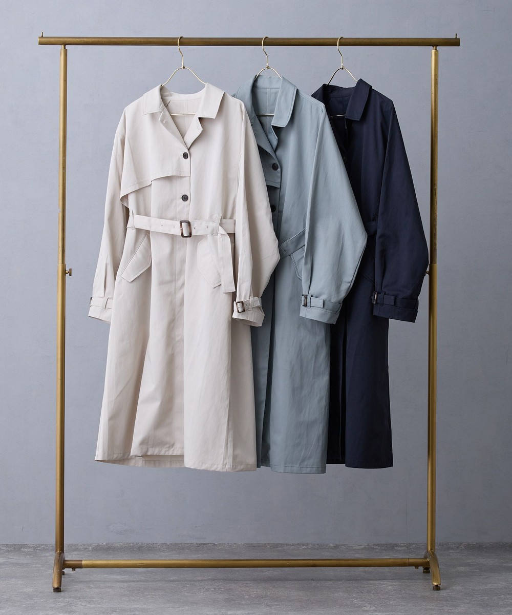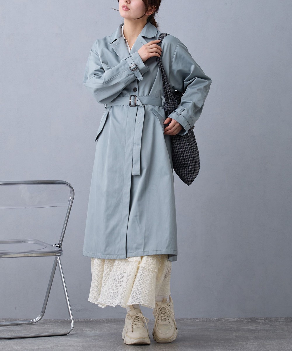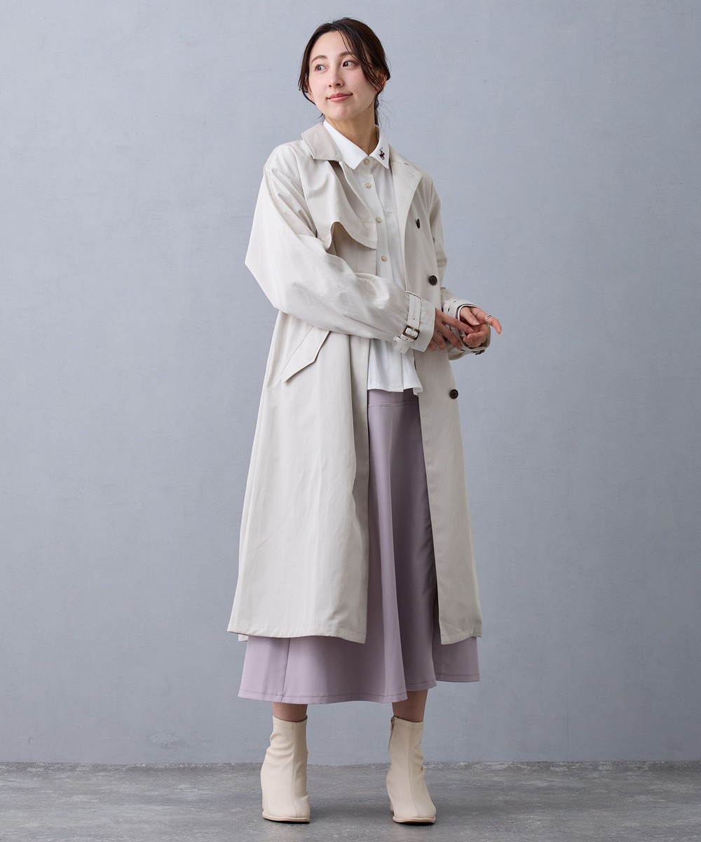 張りのあるしっかりした生地ながらもややオーバーなシルエットで、かっちりしすぎず普段のおでかけにも羽織りやすいコート。