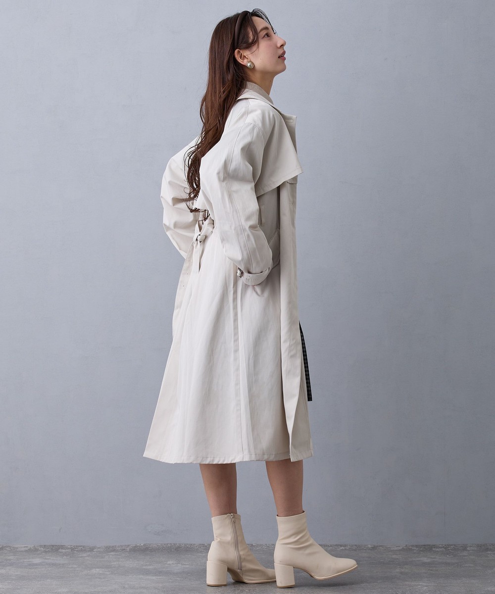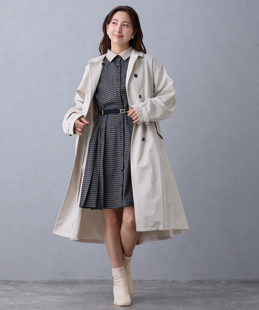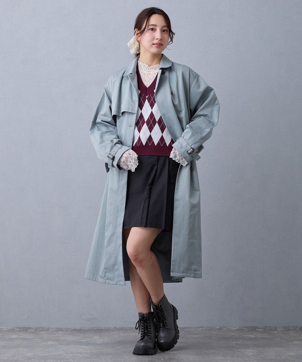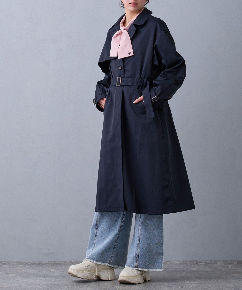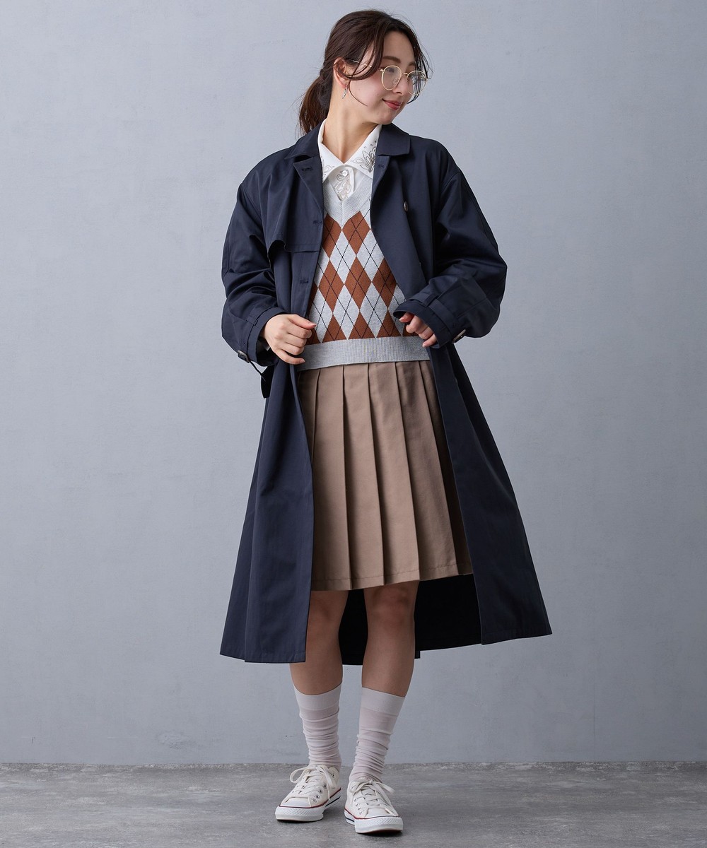 張りのあるしっかりした生地ながらもややオーバーなシルエットで、かっちりしすぎず普段のおでかけにも羽織りやすいコート。