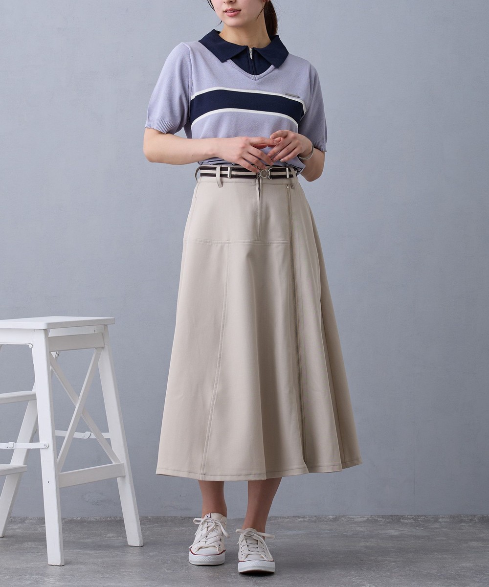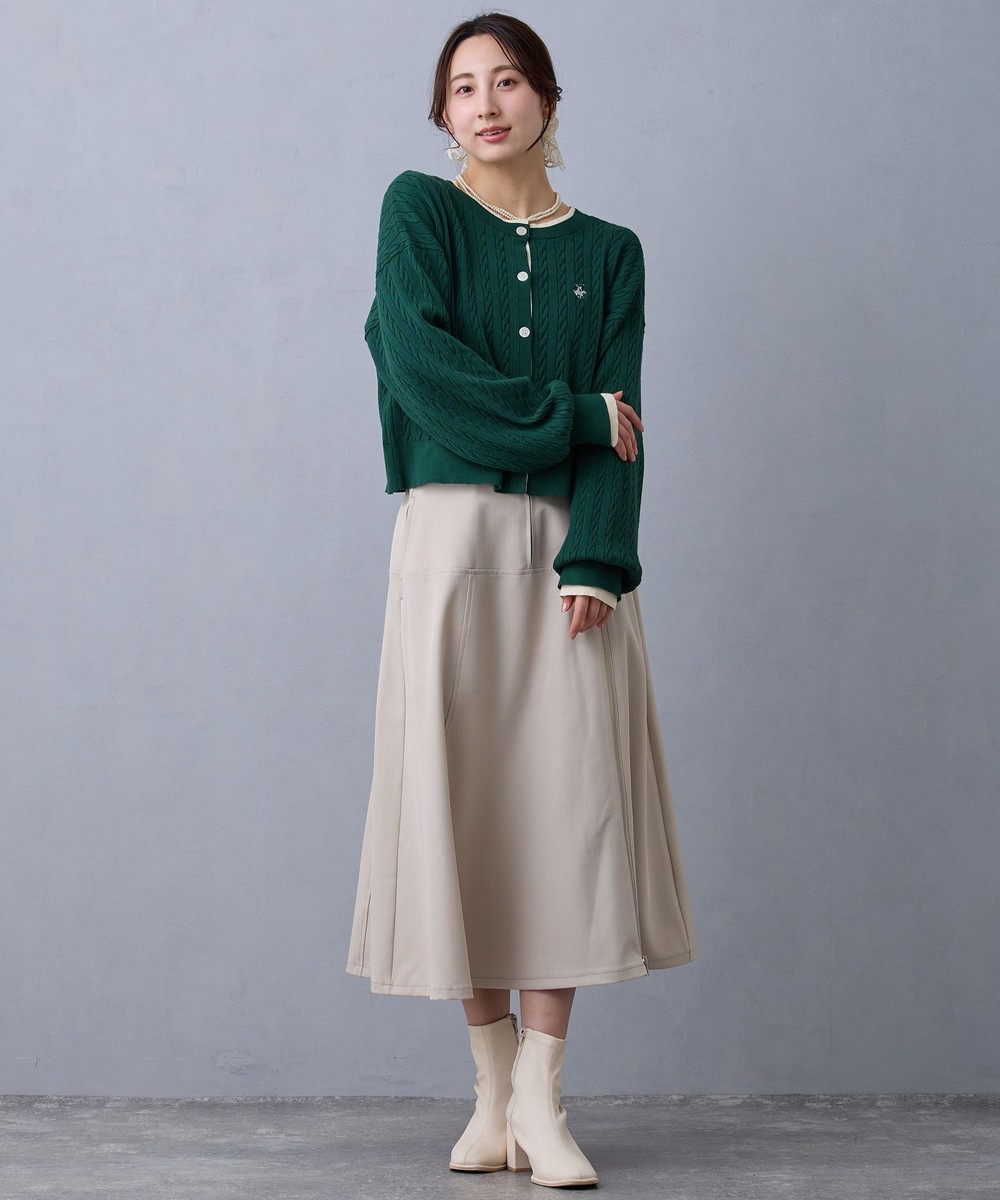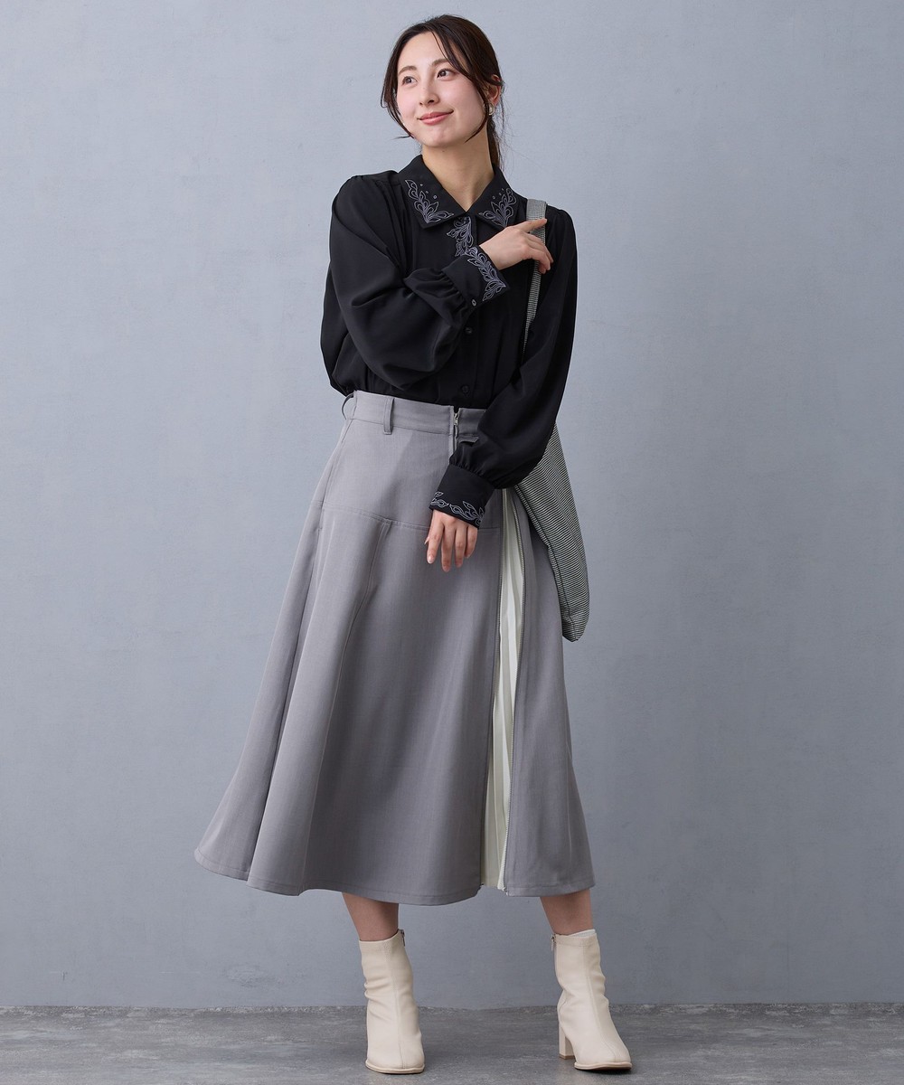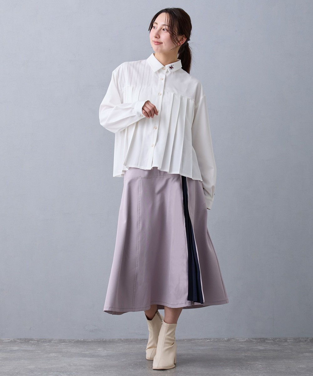 ヨーク切り替えで腰周りをすっきり見せつつもフレア分量をたっぷり取っており、歩く度揺れる裾周りが上品な印象に。