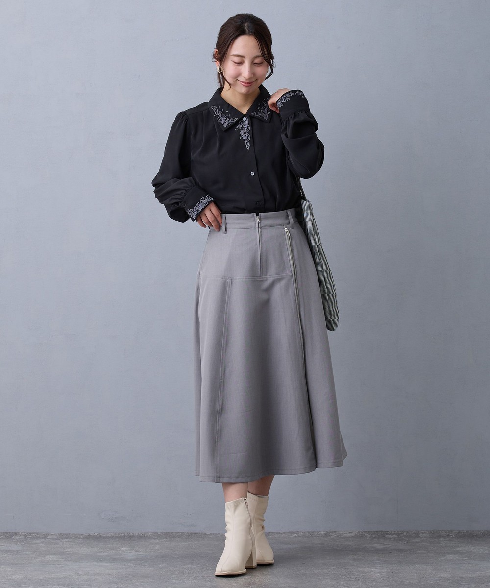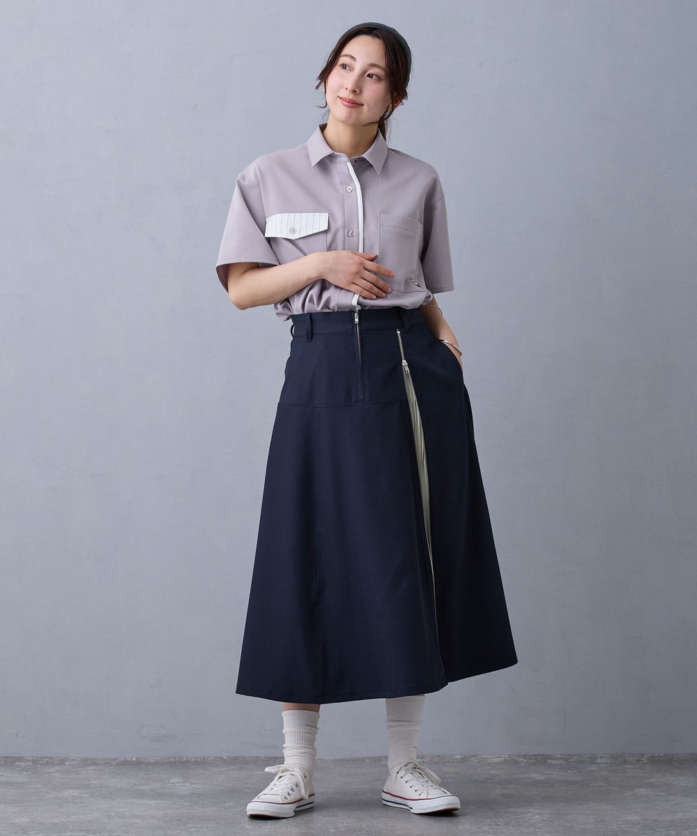 ファスナーの明け具合でお好みのシルエットにしていただけます。