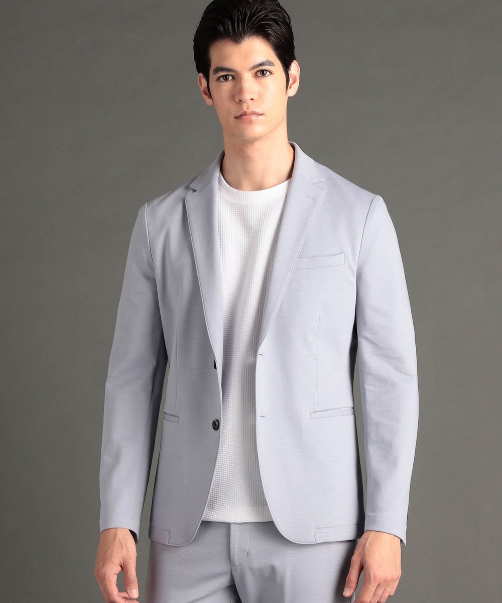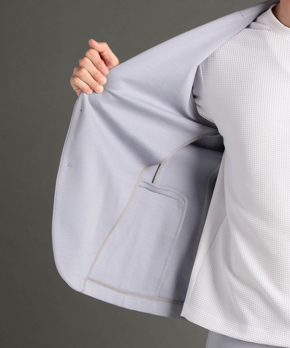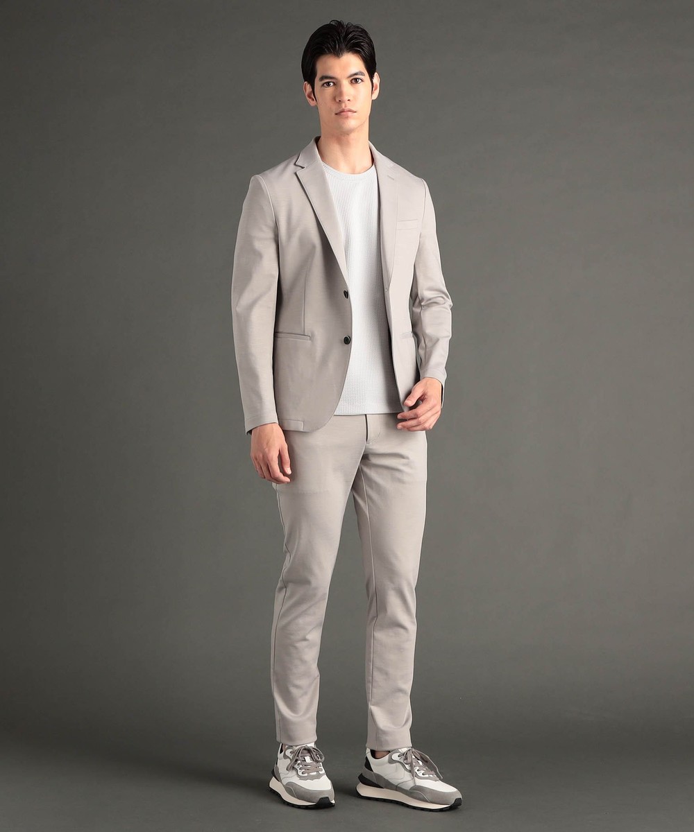 抜群のストレッチ性と上品なメランジ感を表現した別注Technical jersey素材を採用。