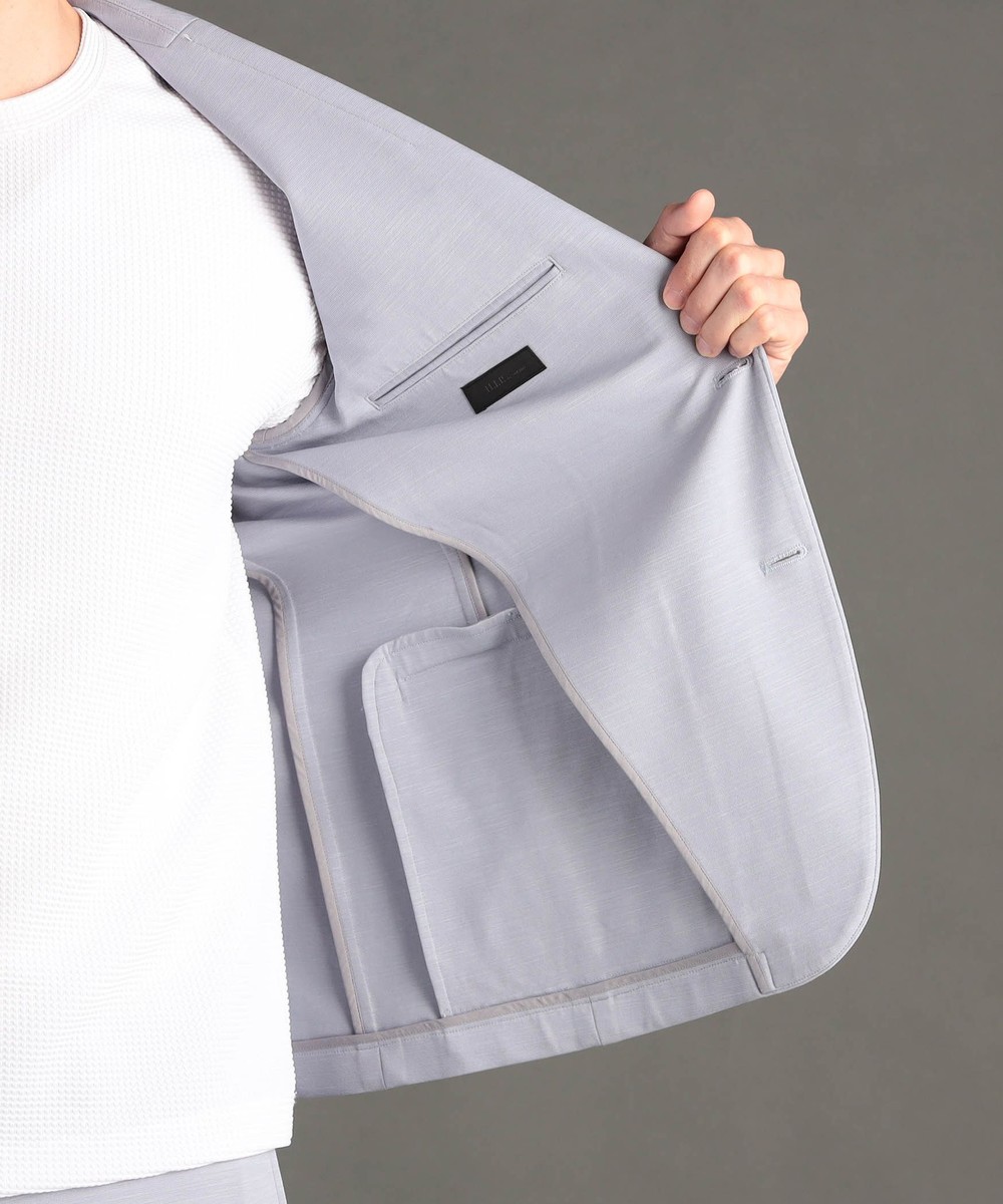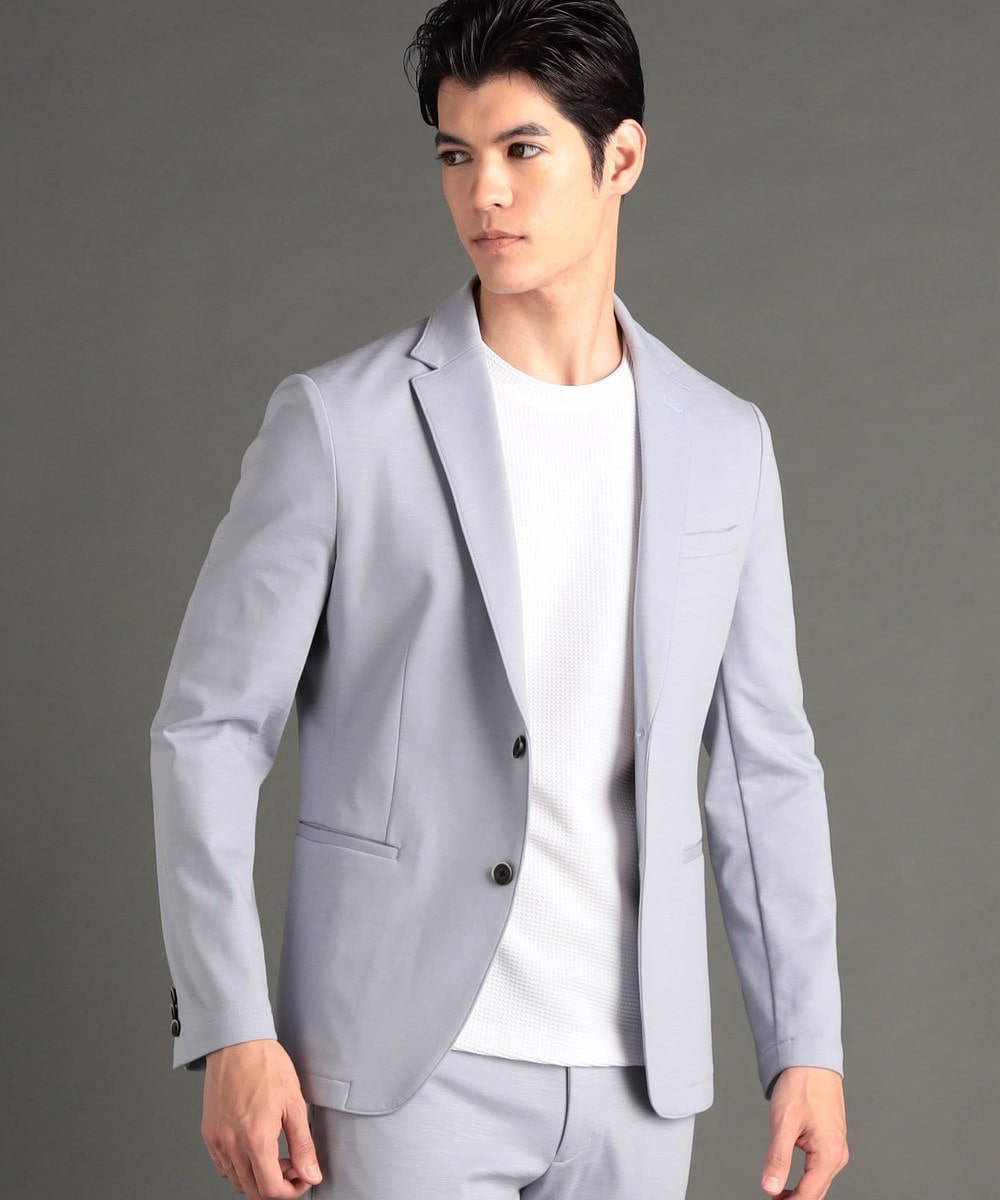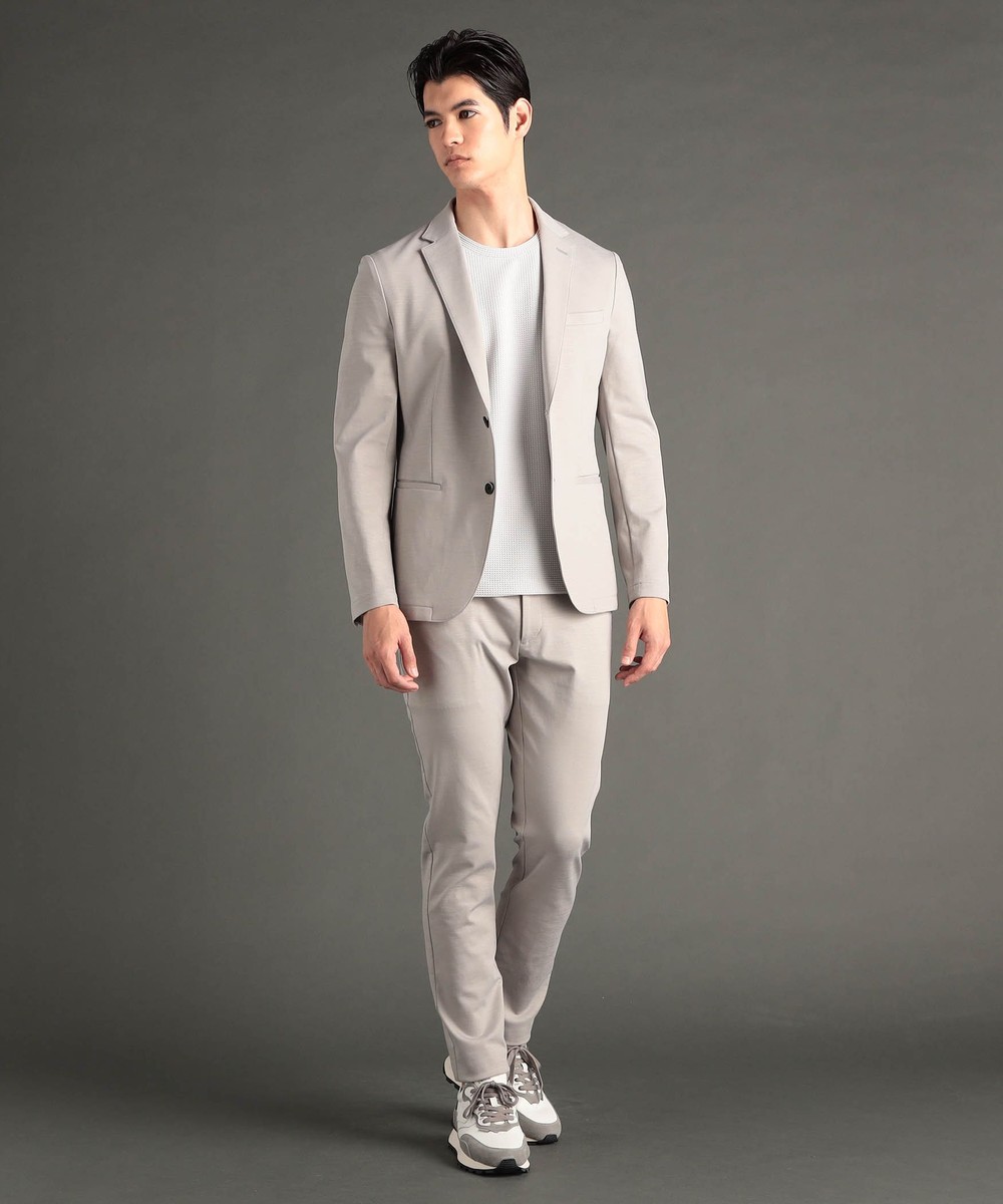 抜群のストレッチ性と上品なメランジ感を表現した別注Technical jersey素材を採用。