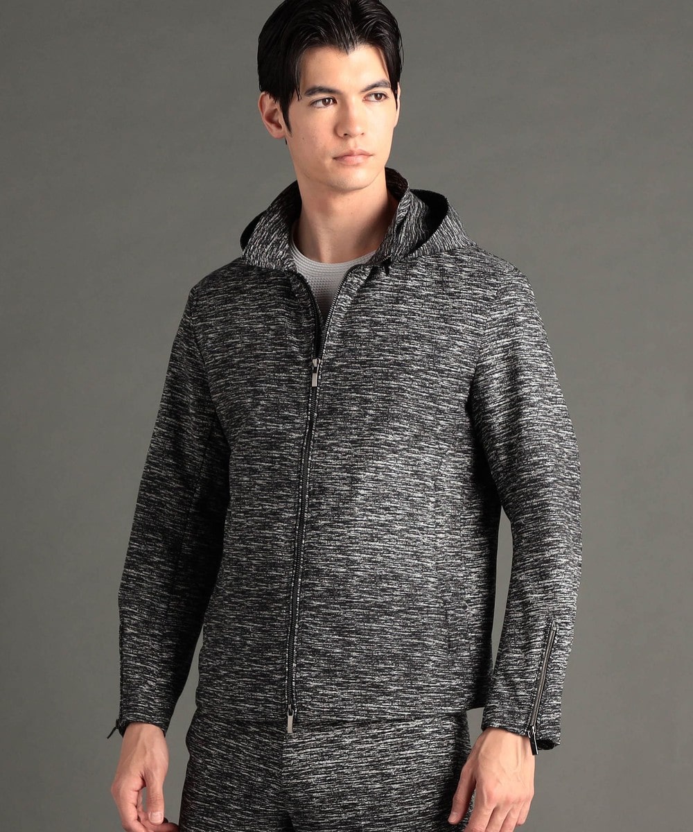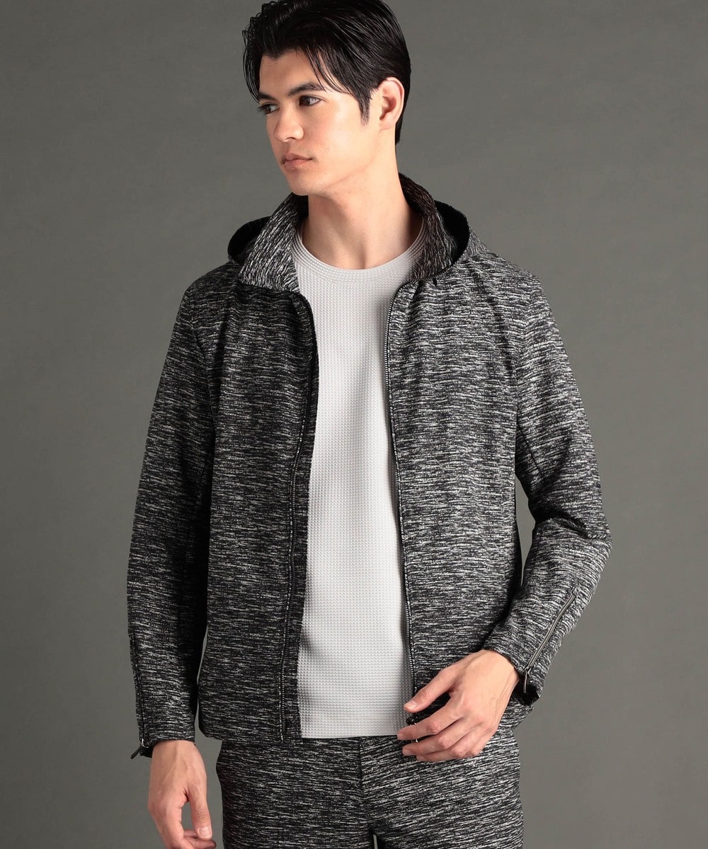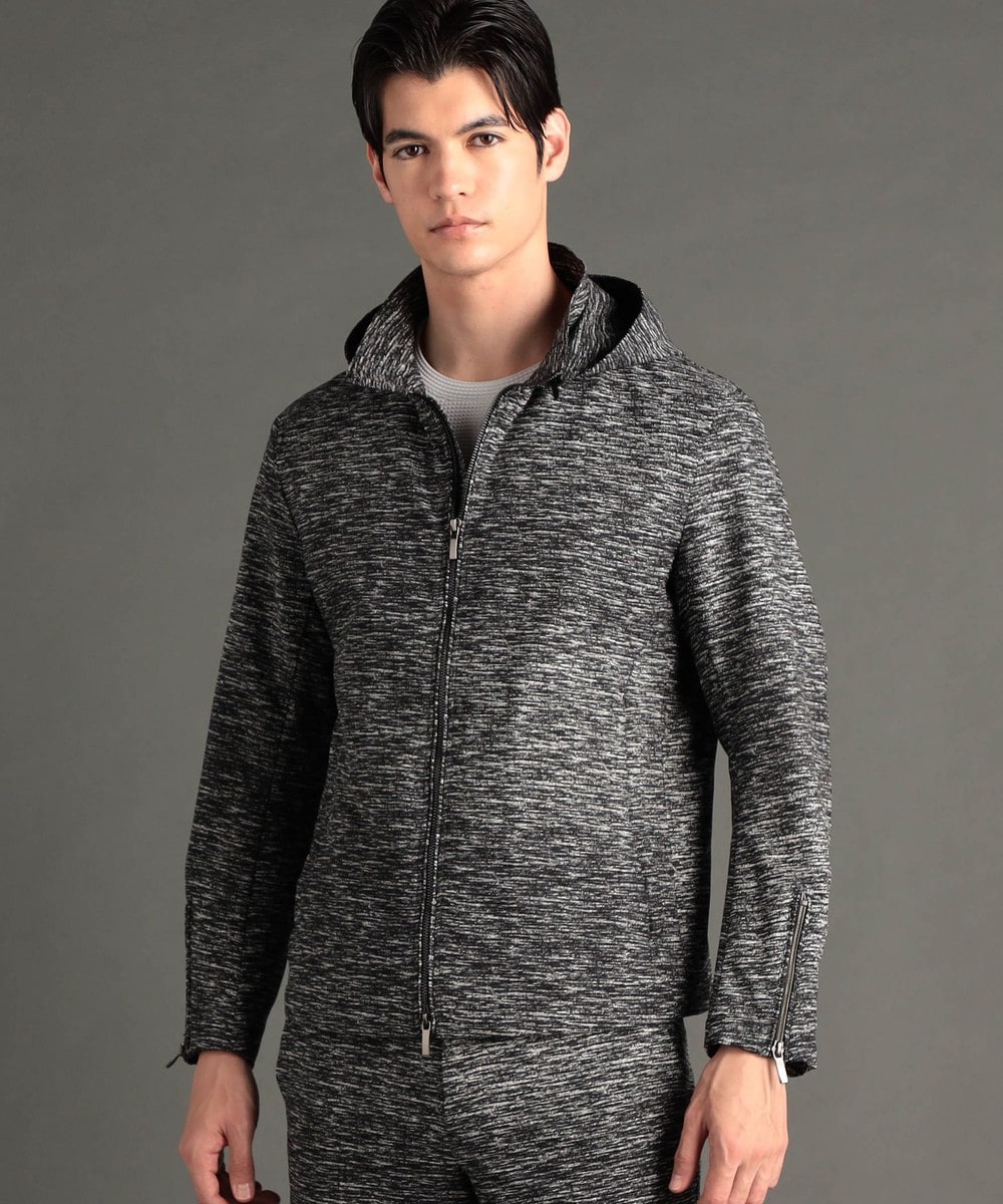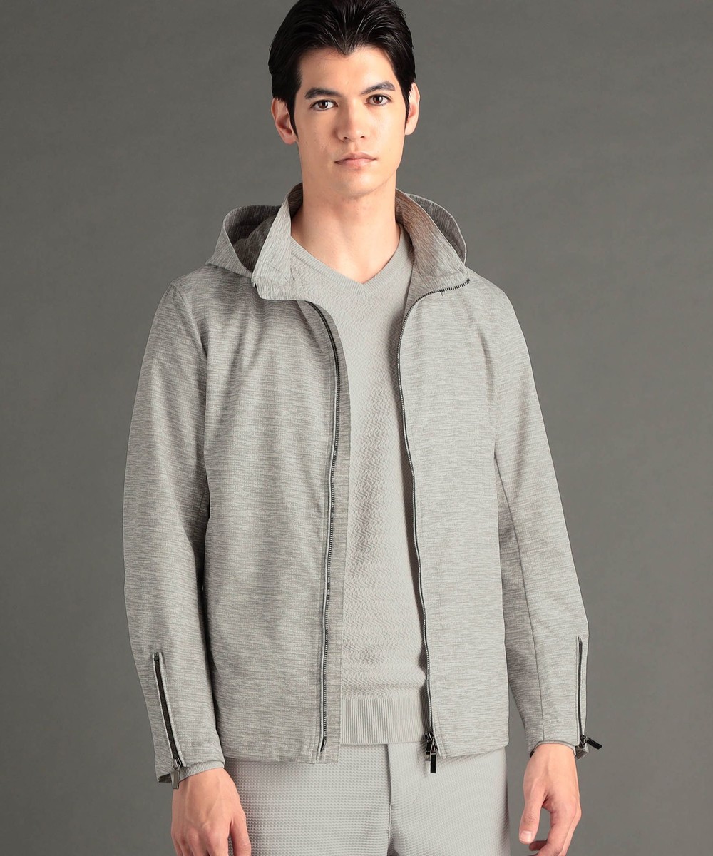 フードが脱着できるジップアップブルゾン。