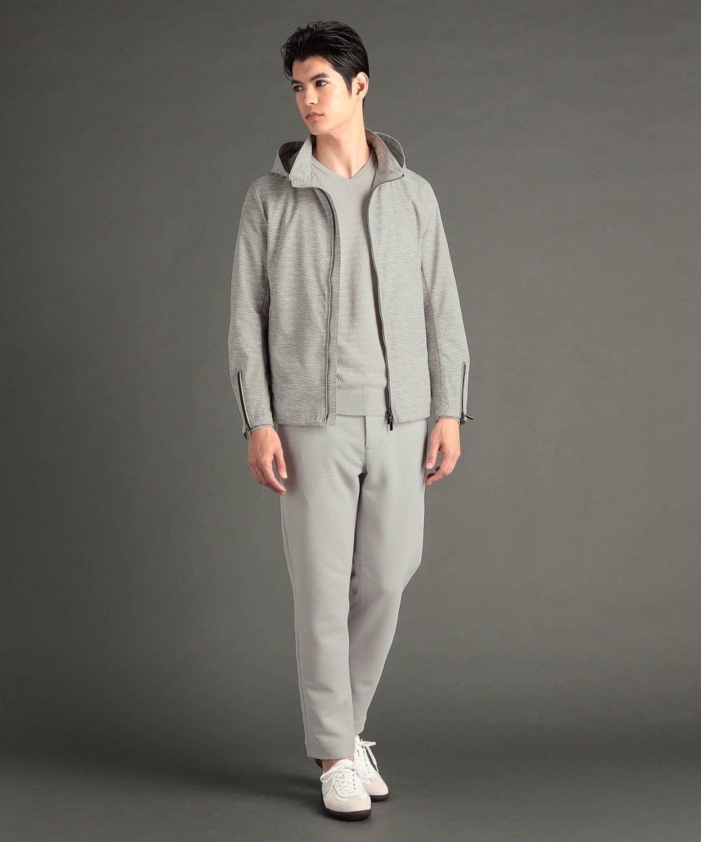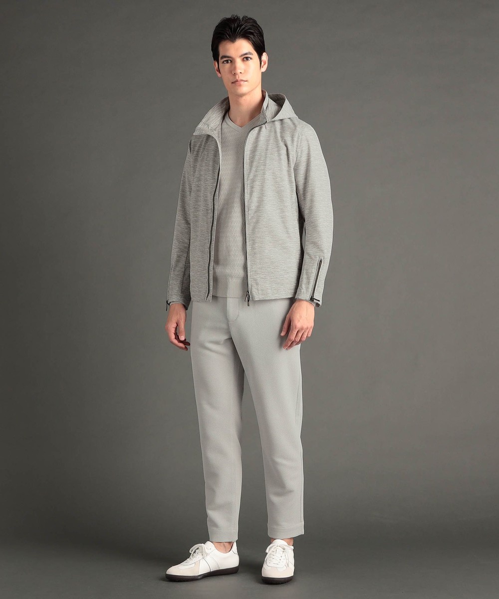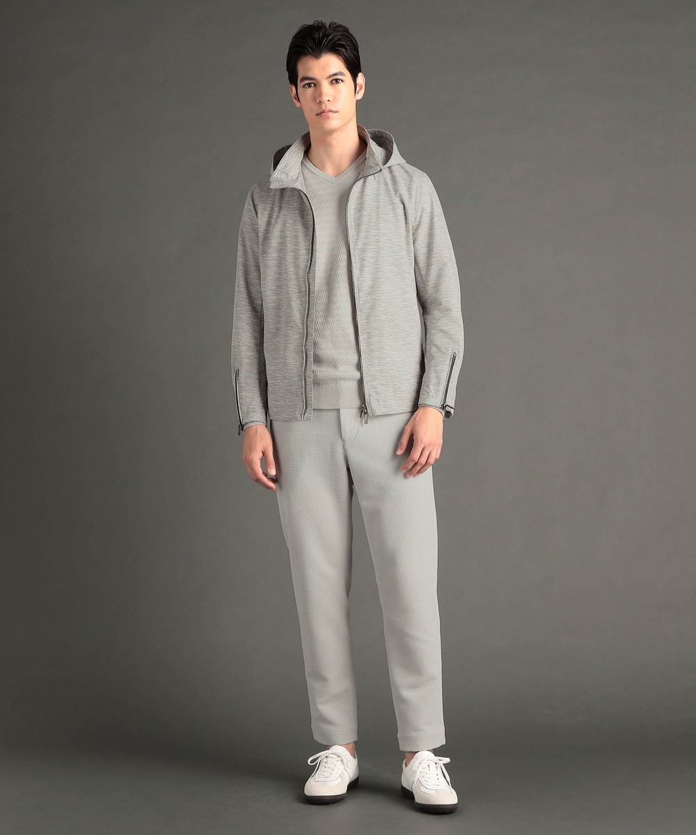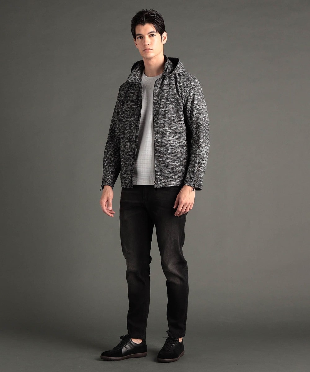 フードが脱着できるジップアップブルゾン。