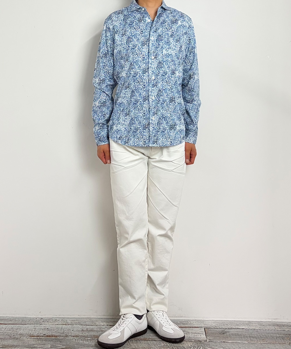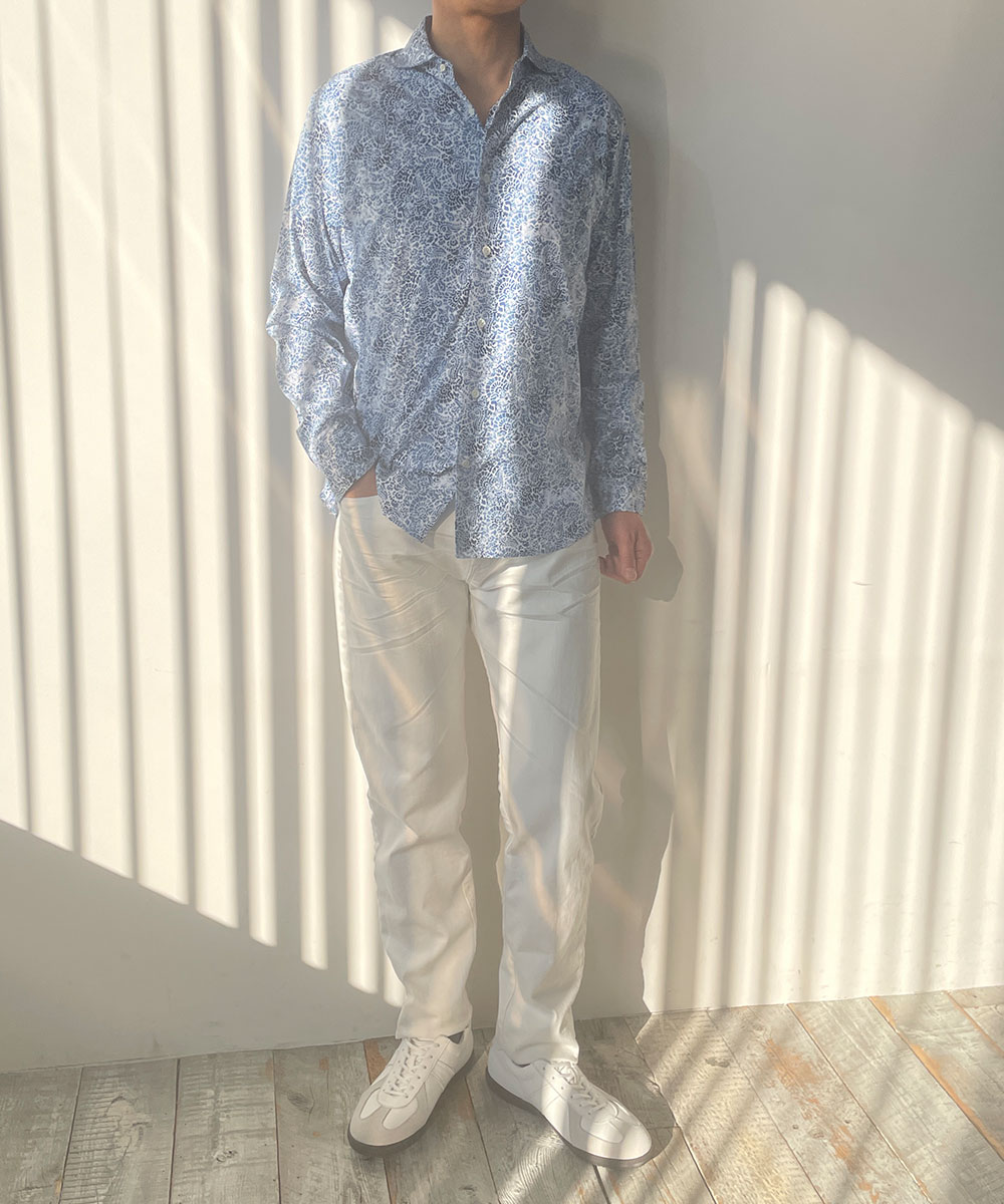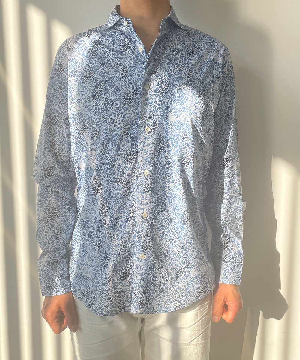 TEXTA ボタニカルプリント カッタウェイカラーシャツ