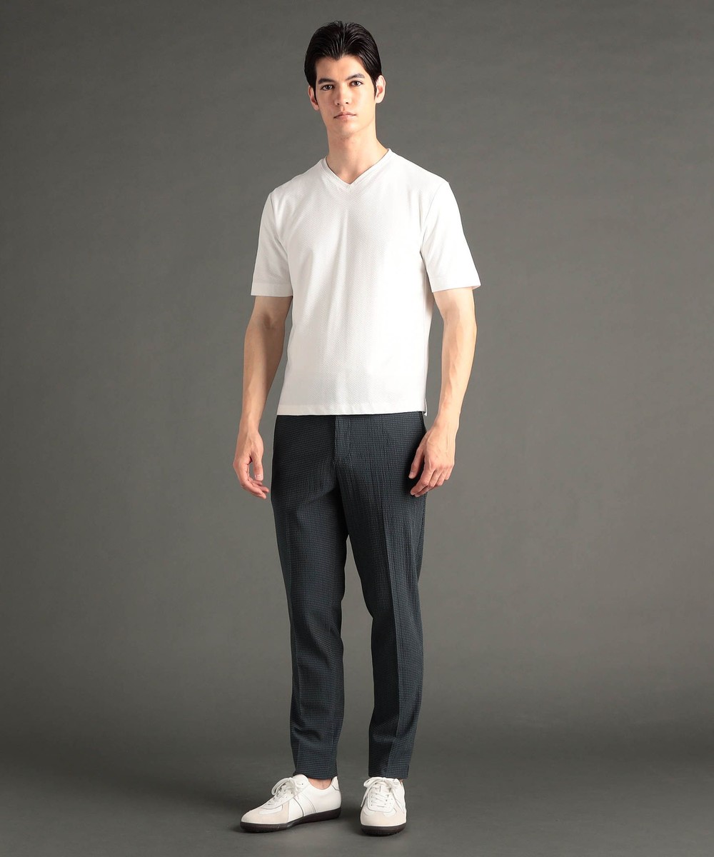 ナイロンとポリウレタンを交編し、伸縮性と接触冷感を両立。