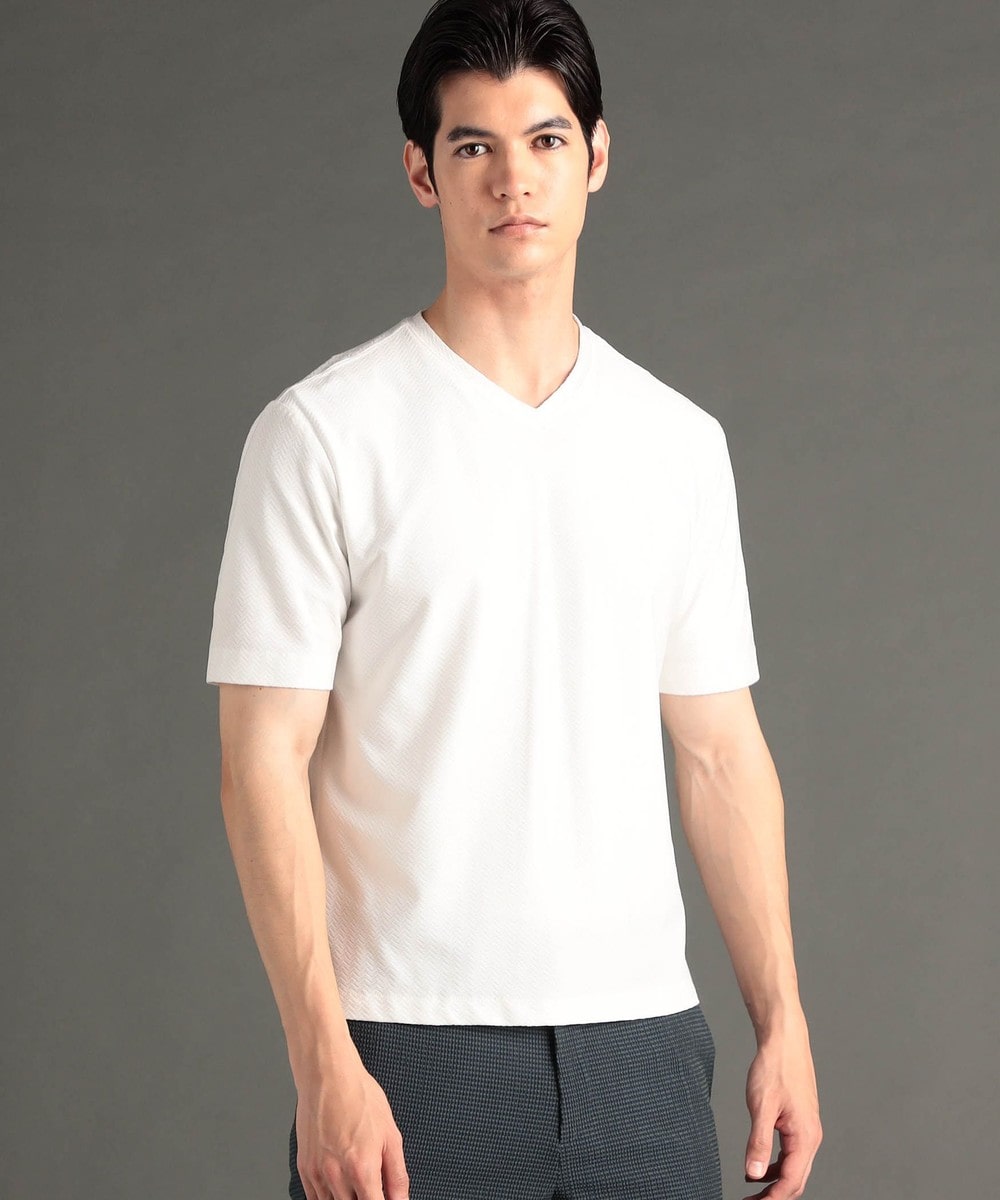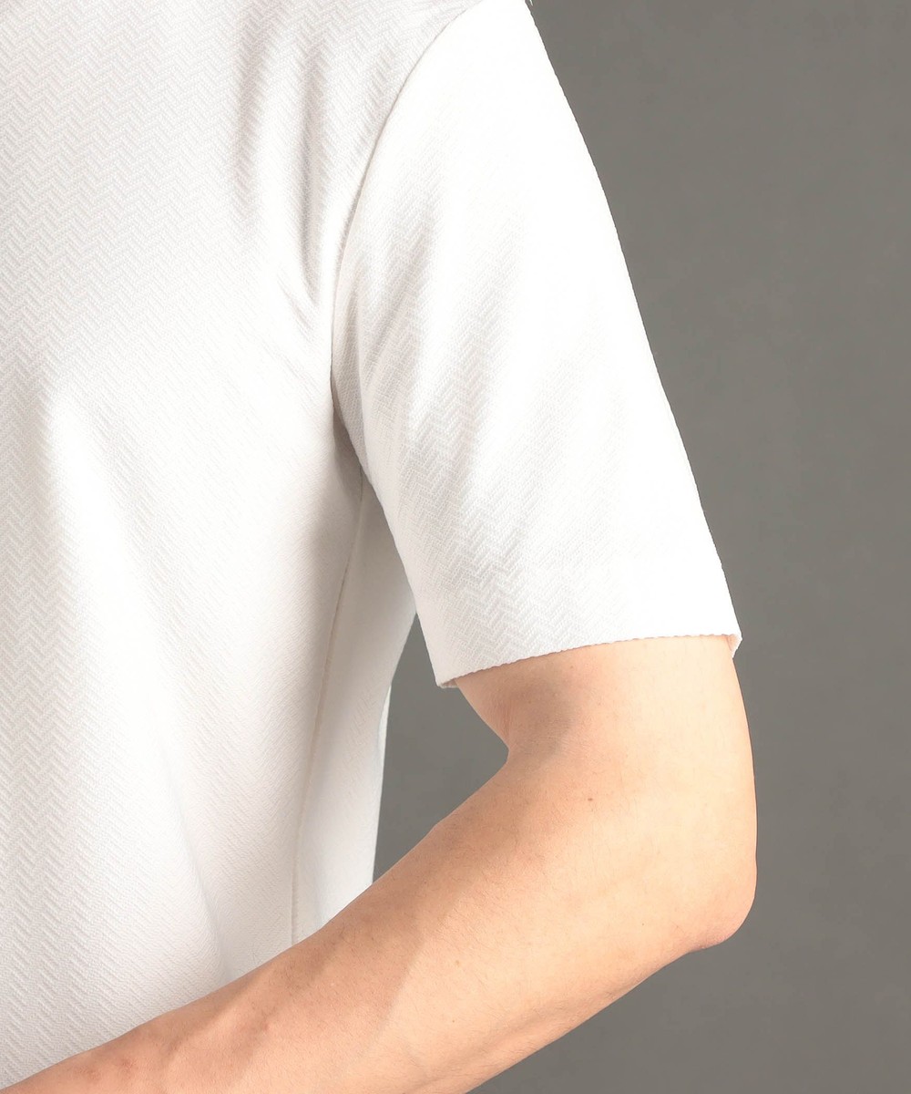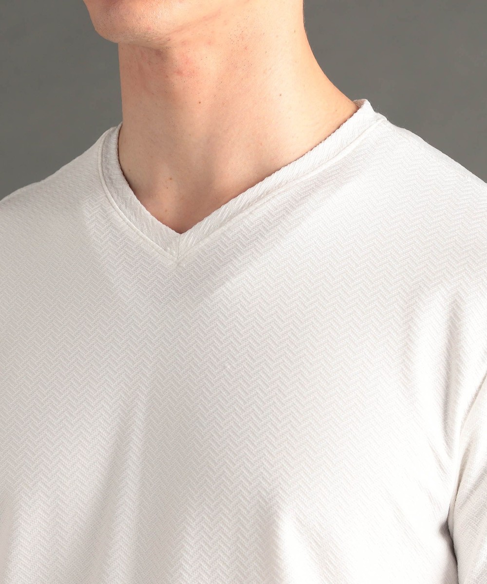 光の当たり方によってシェブロン柄が浮沈する、高級感のある洗練された一枚。