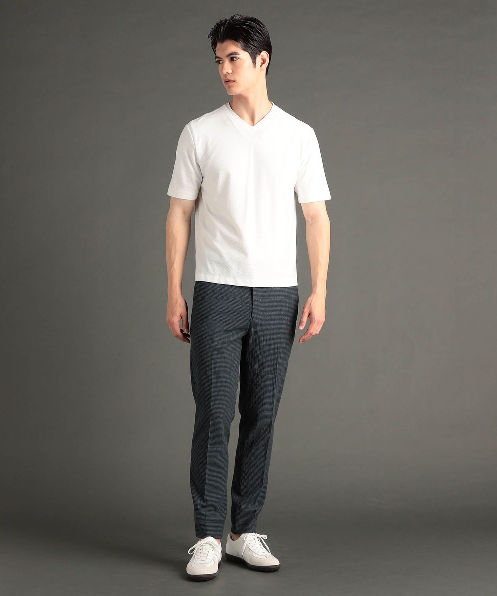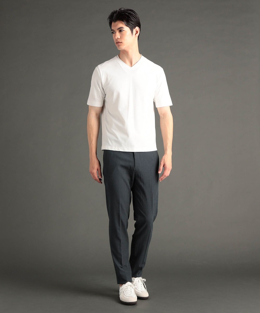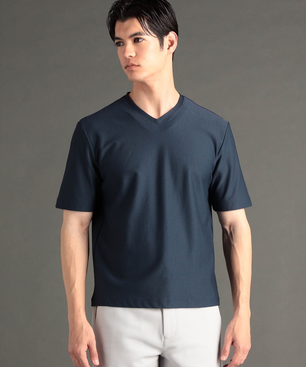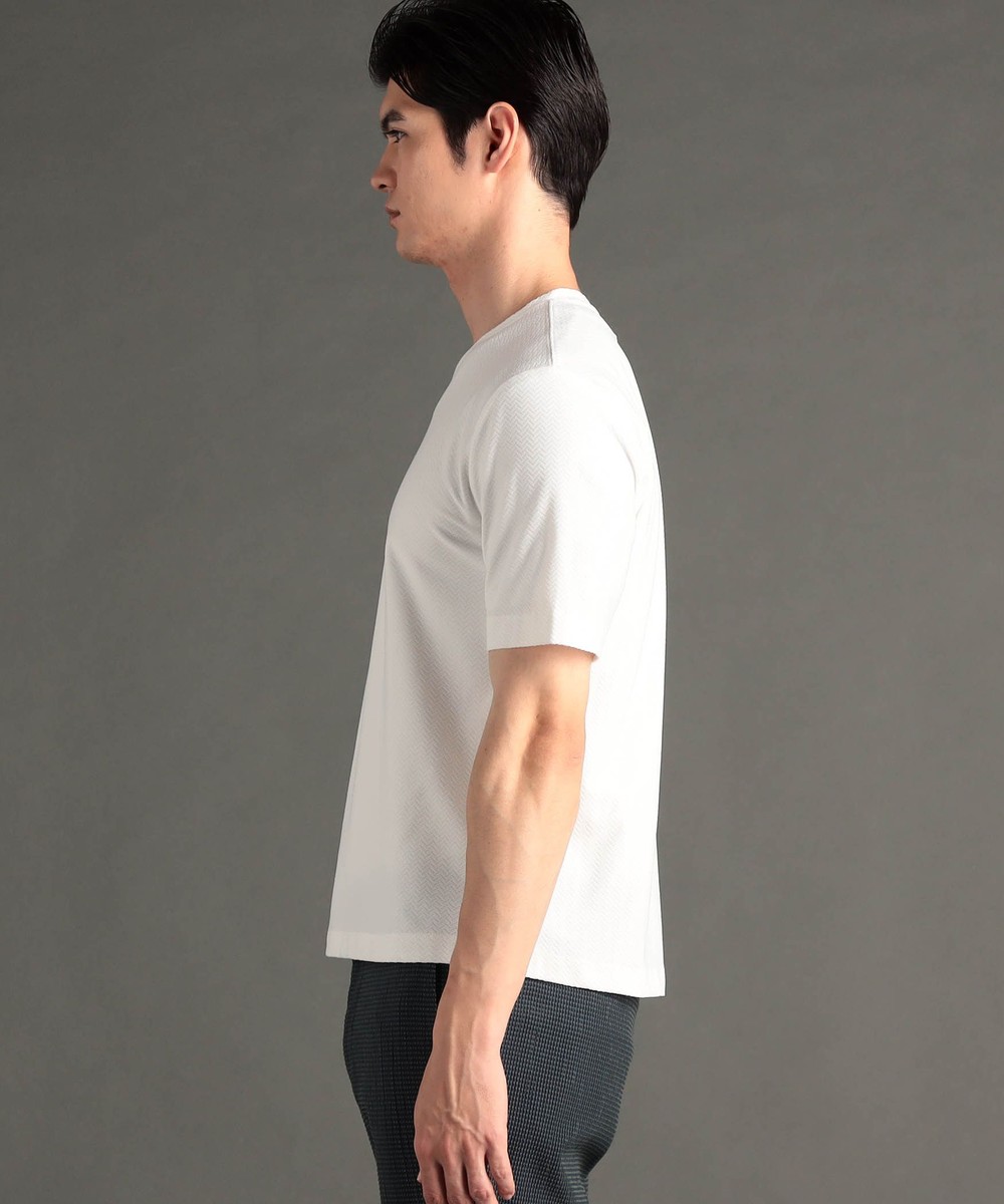 光の当たり方によってシェブロン柄が浮沈する、高級感のある洗練された一枚。