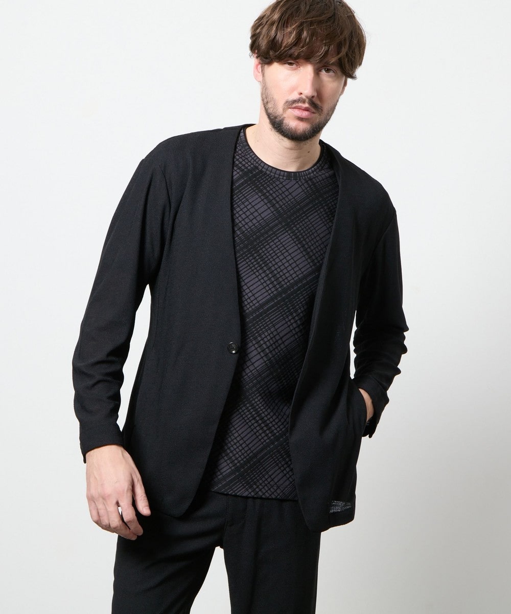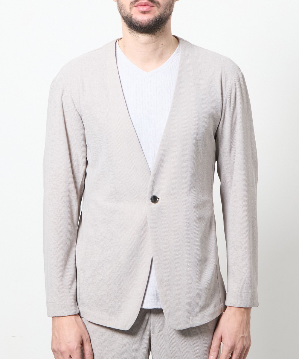 一つ釦デザインのシンプルなデザインですので、サラッとカーディガンのように羽織って頂けます。