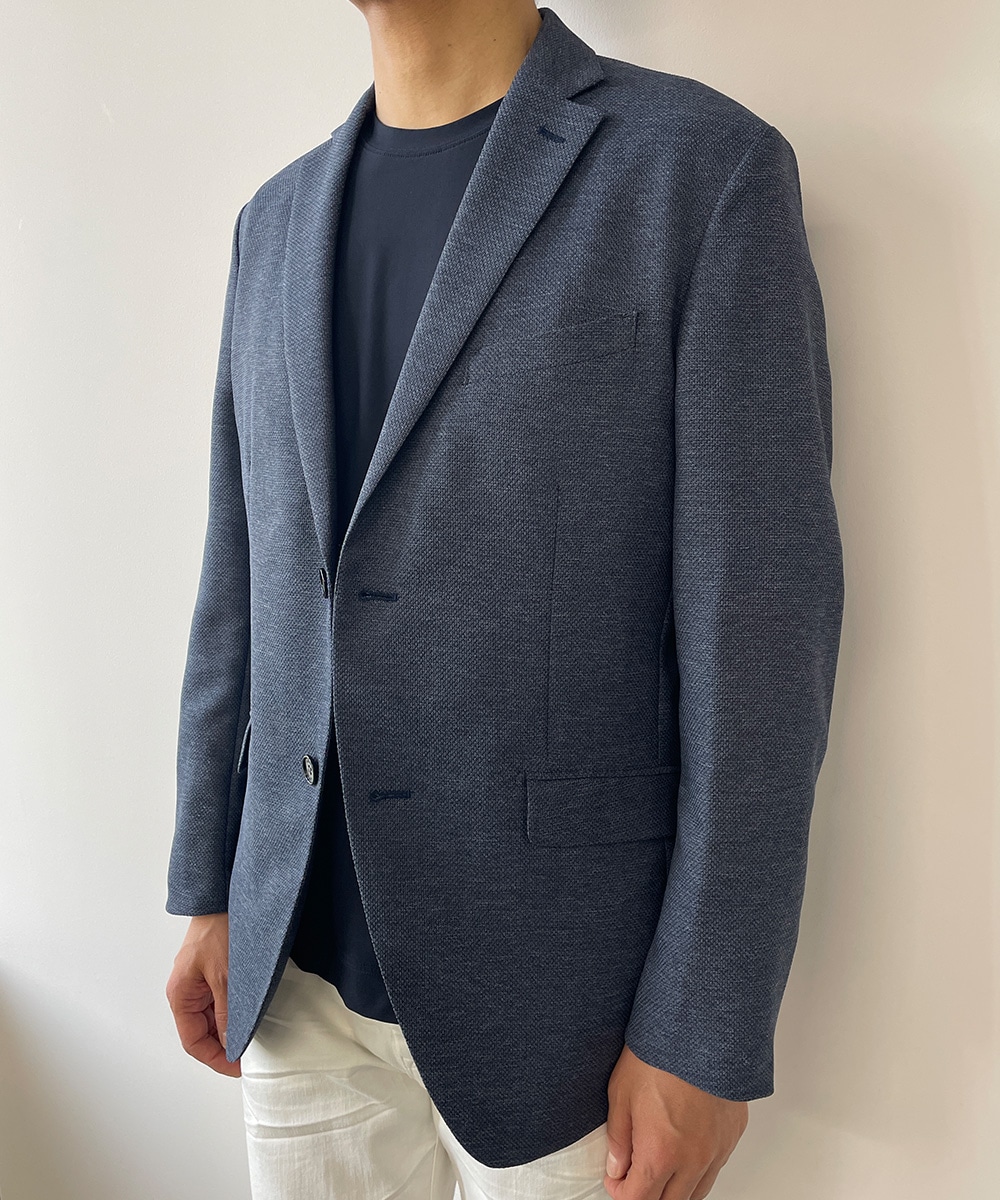 定評あるMNジャケットをベースに、やや広めのナローラペルに、着丈を1.0cm長くした二つ釦シングルジャケット。