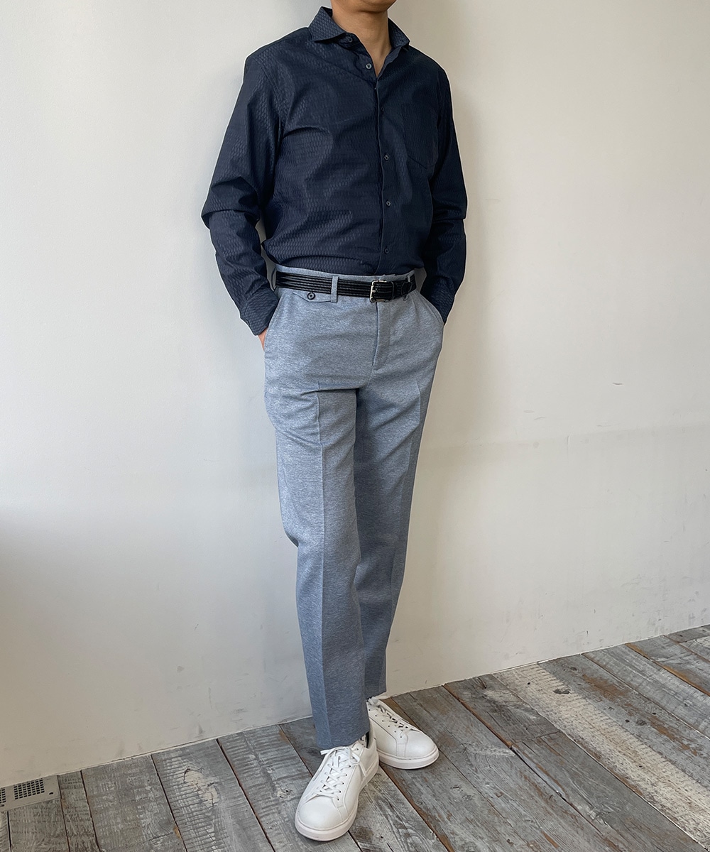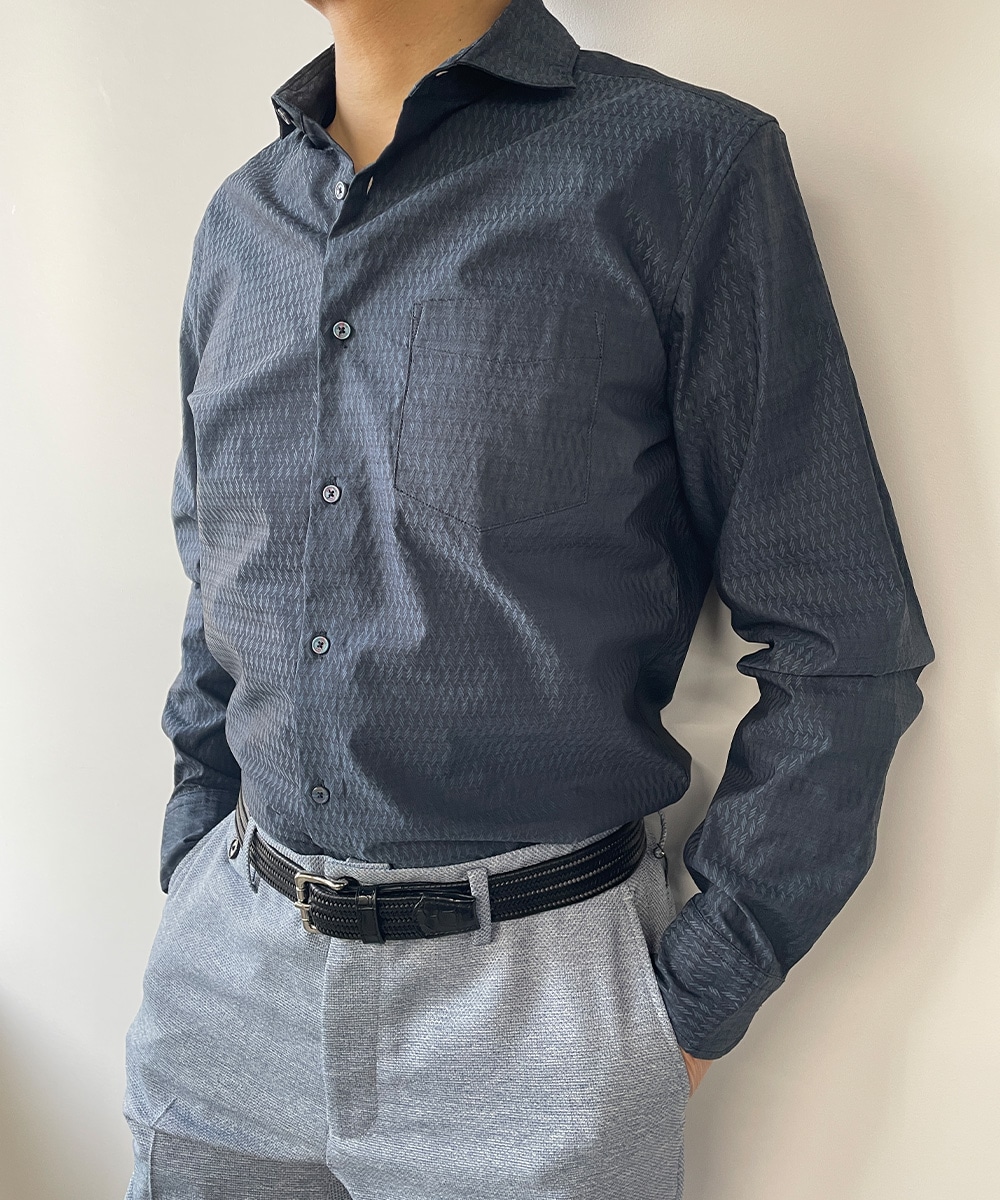 ヘリンボンストレッチ カッタウェイカラーシャツ