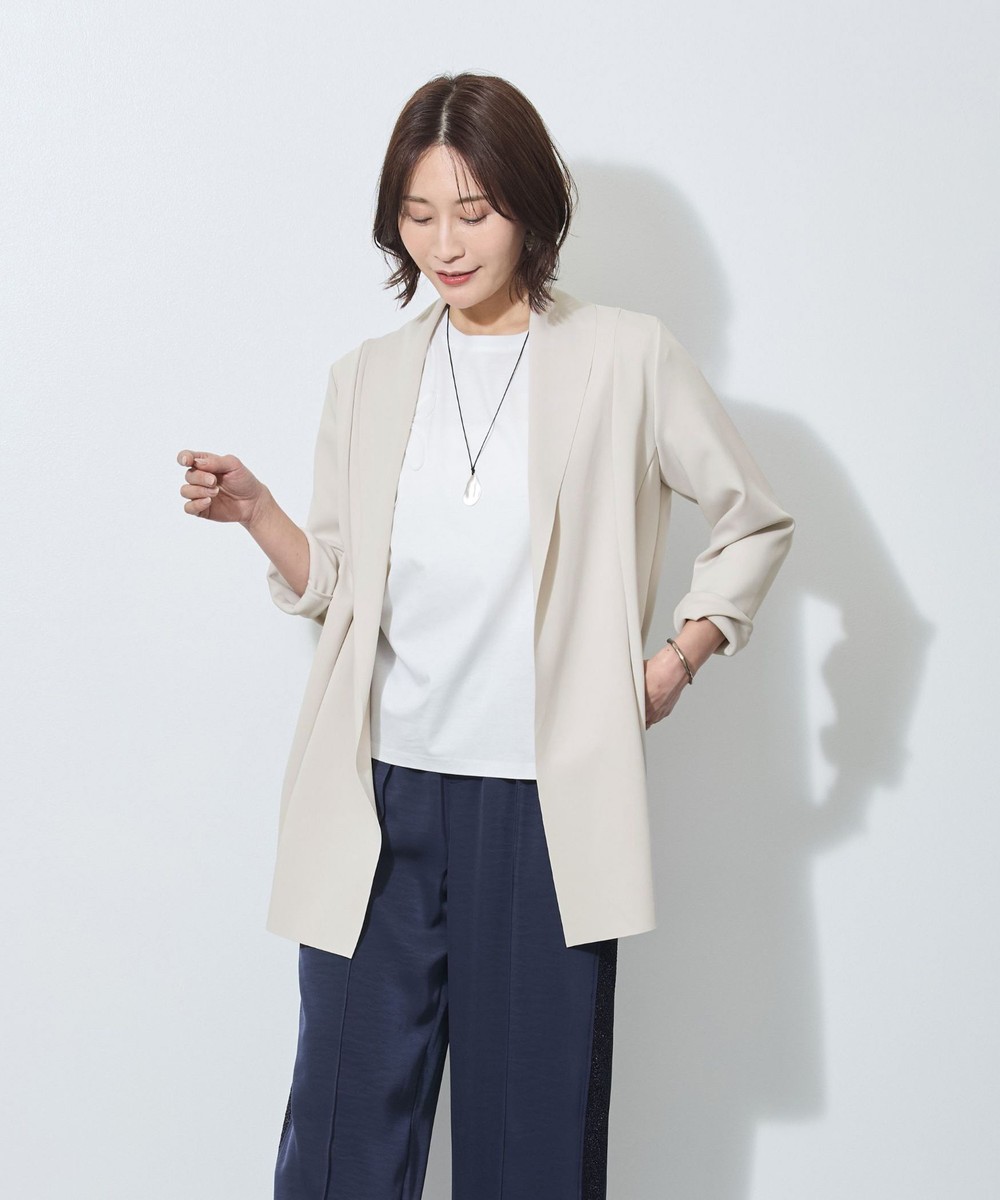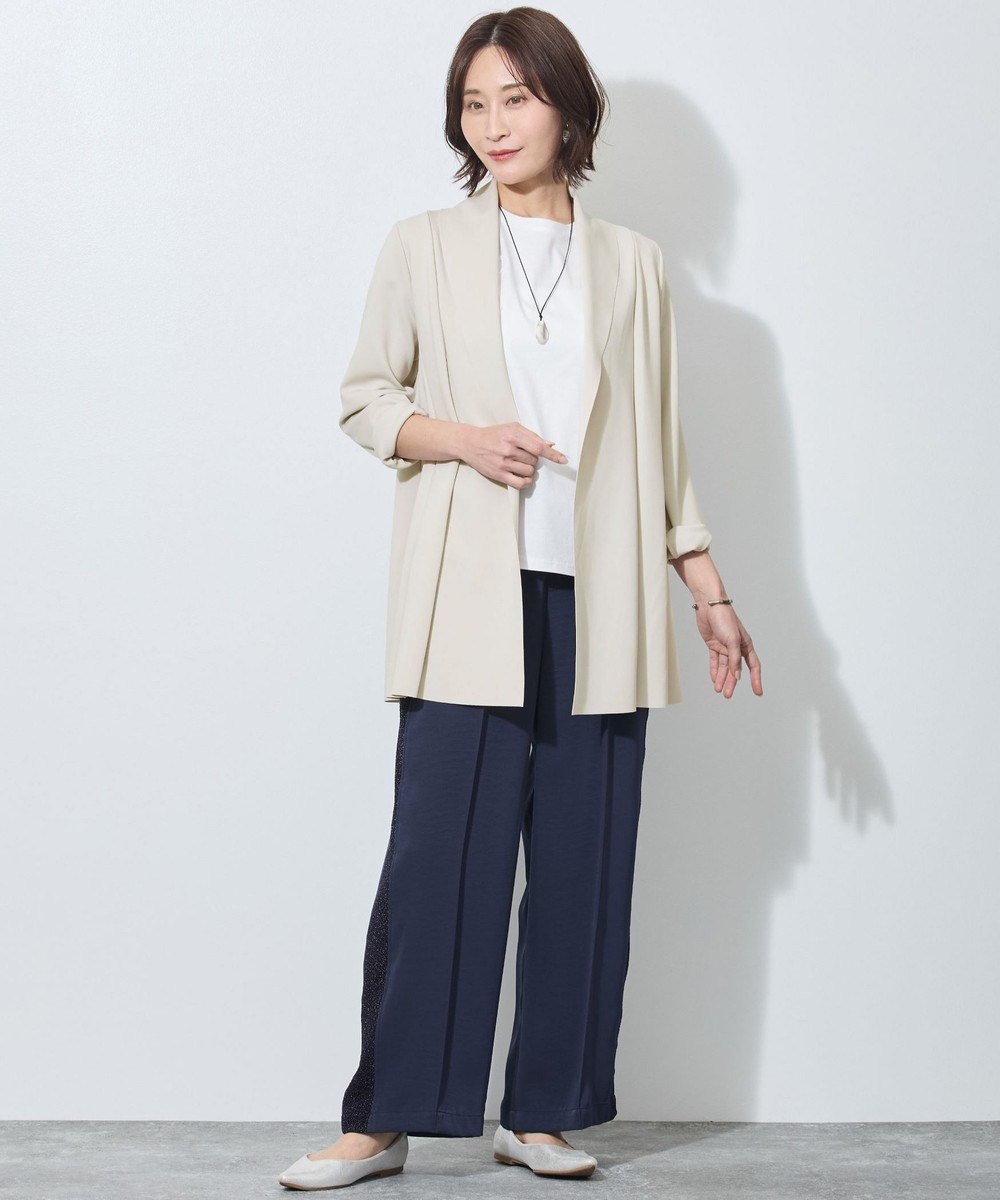 華やかなインナーを合わせることでオケージョンシーンにも対応可能。