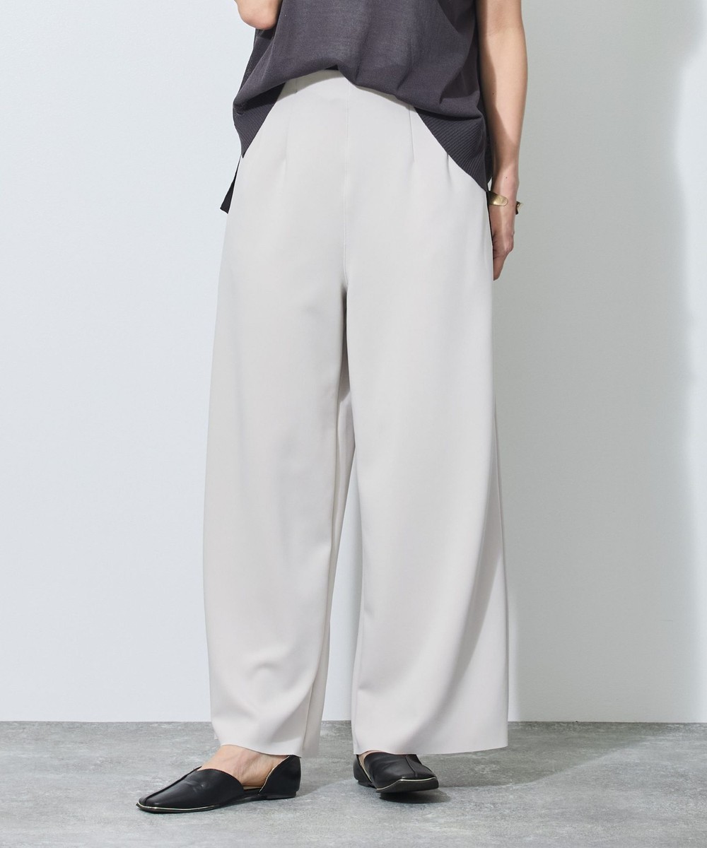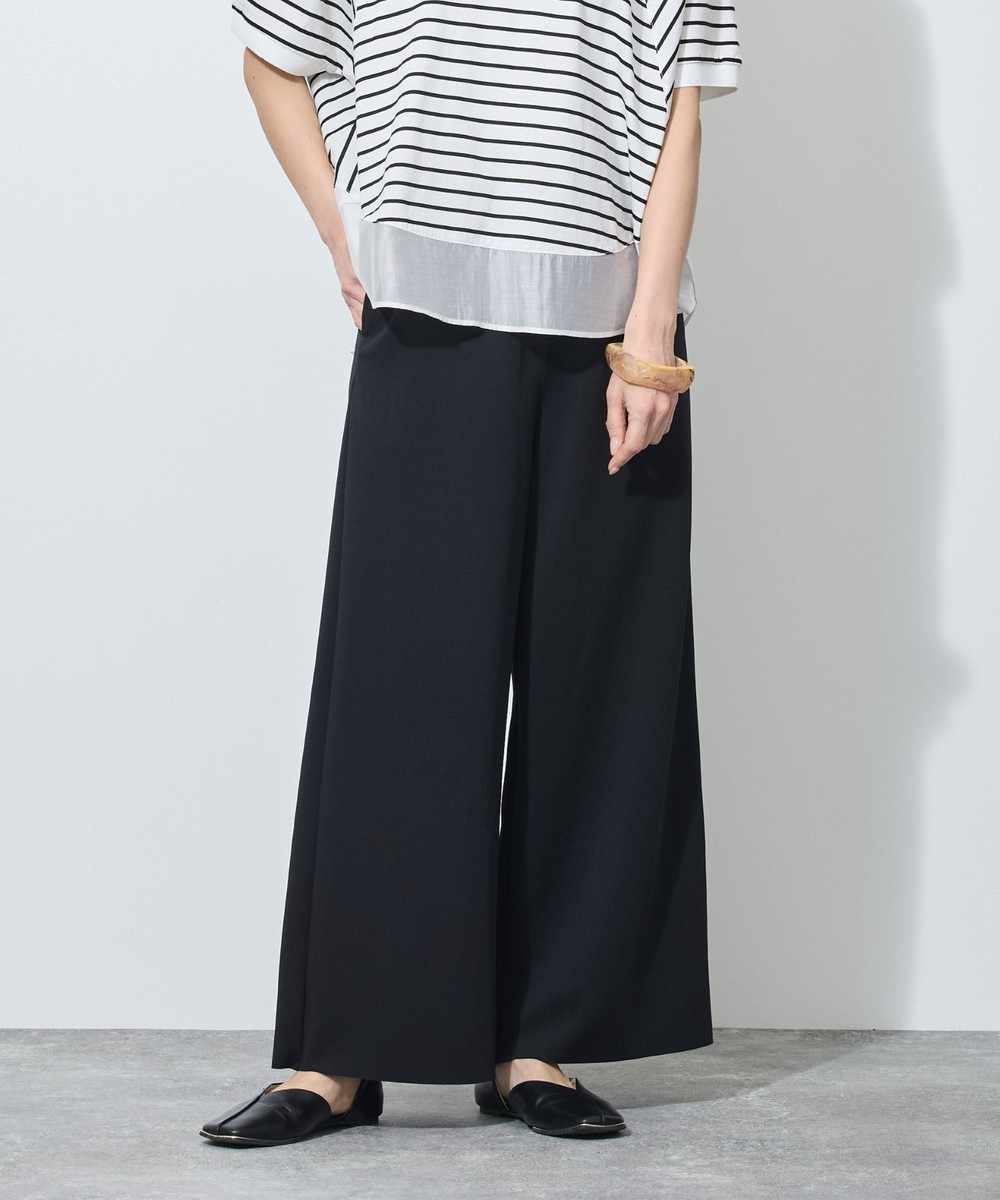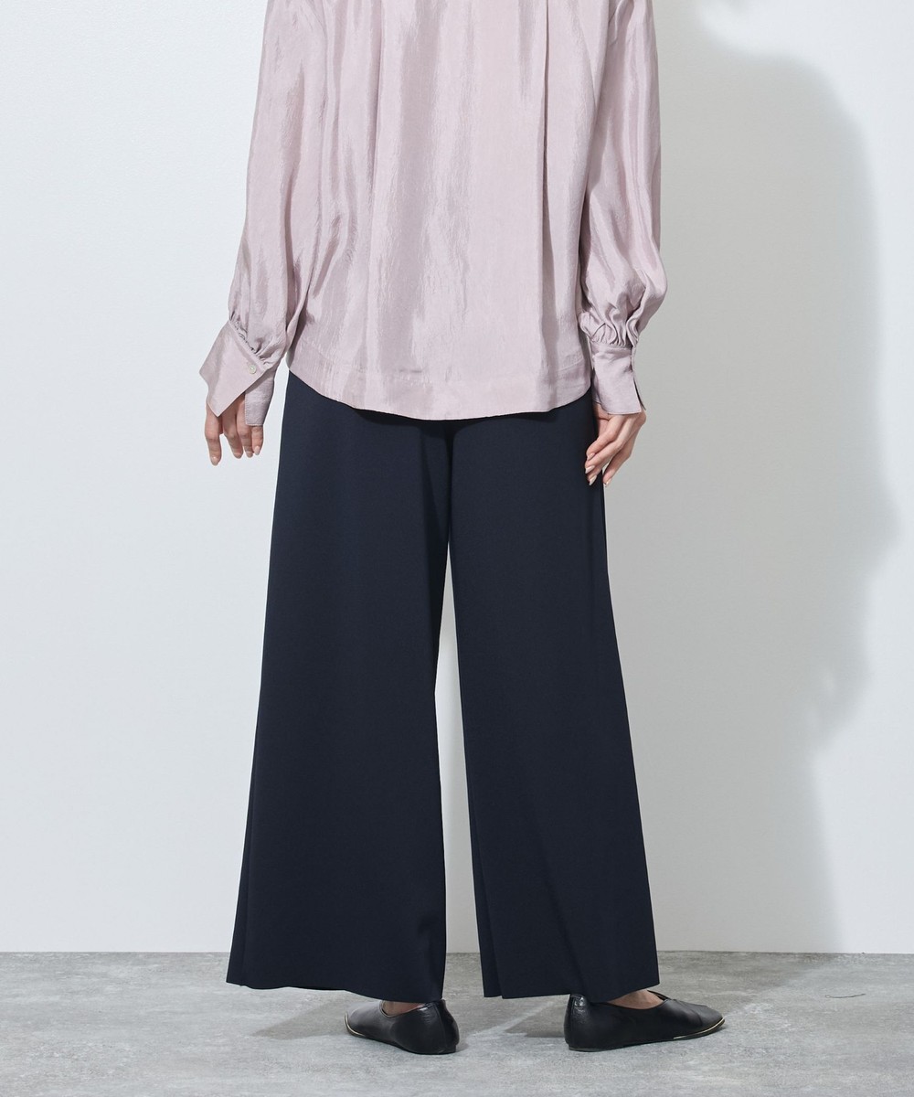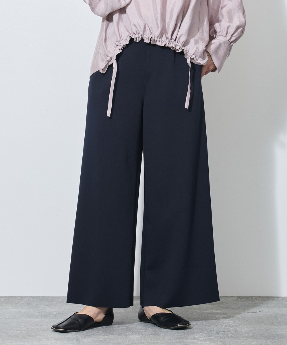 薄手のダンボールニットを使用した一重仕立てのワイドパンツ