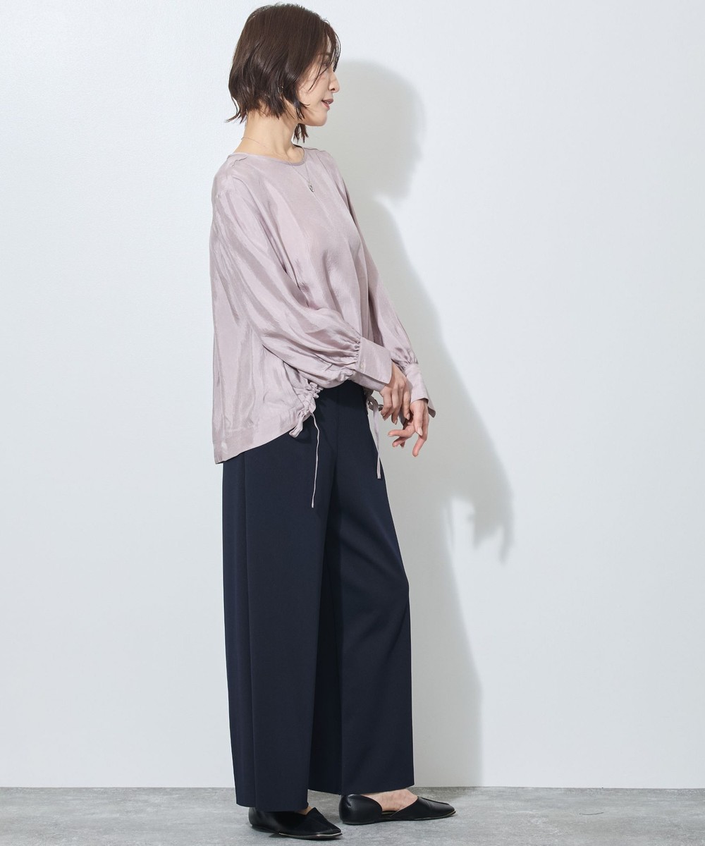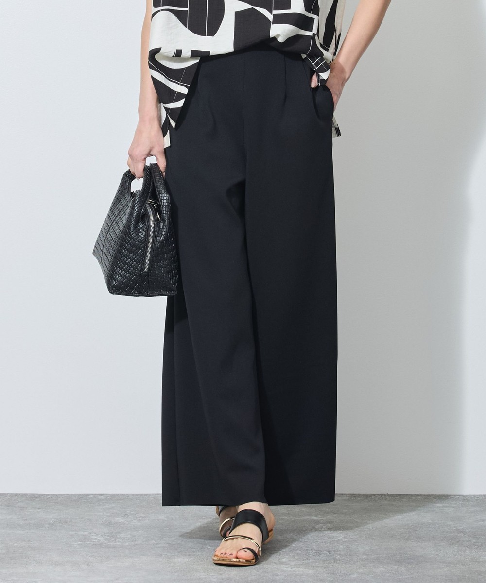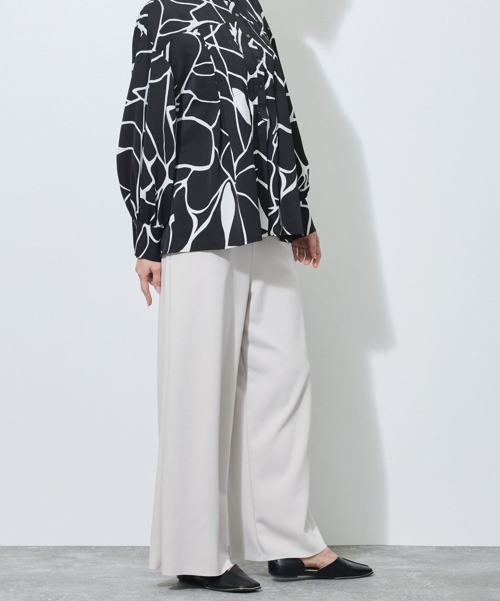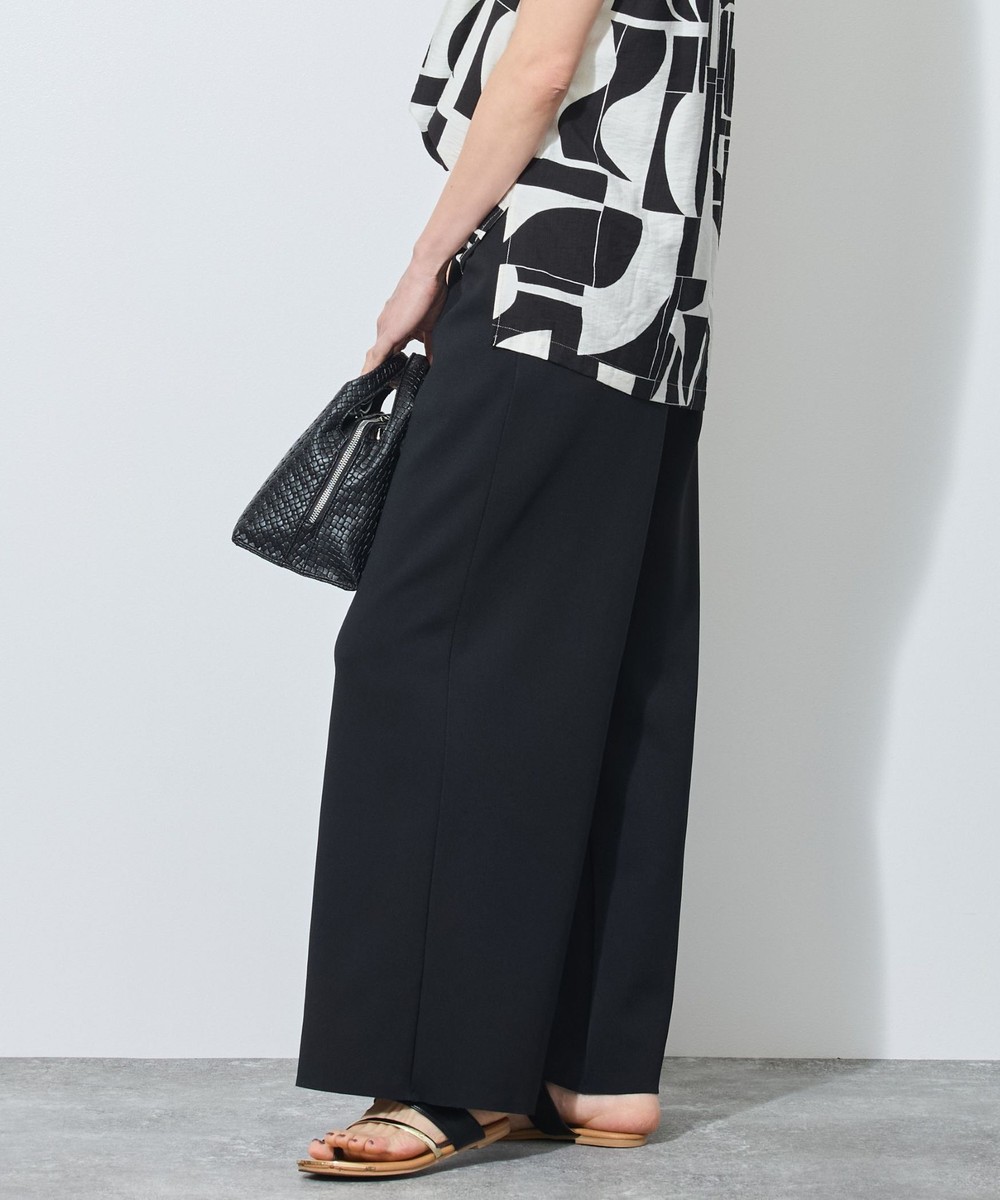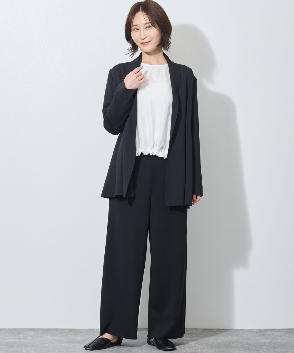 薄手のダンボールニットを使用した一重仕立てのワイドパンツ