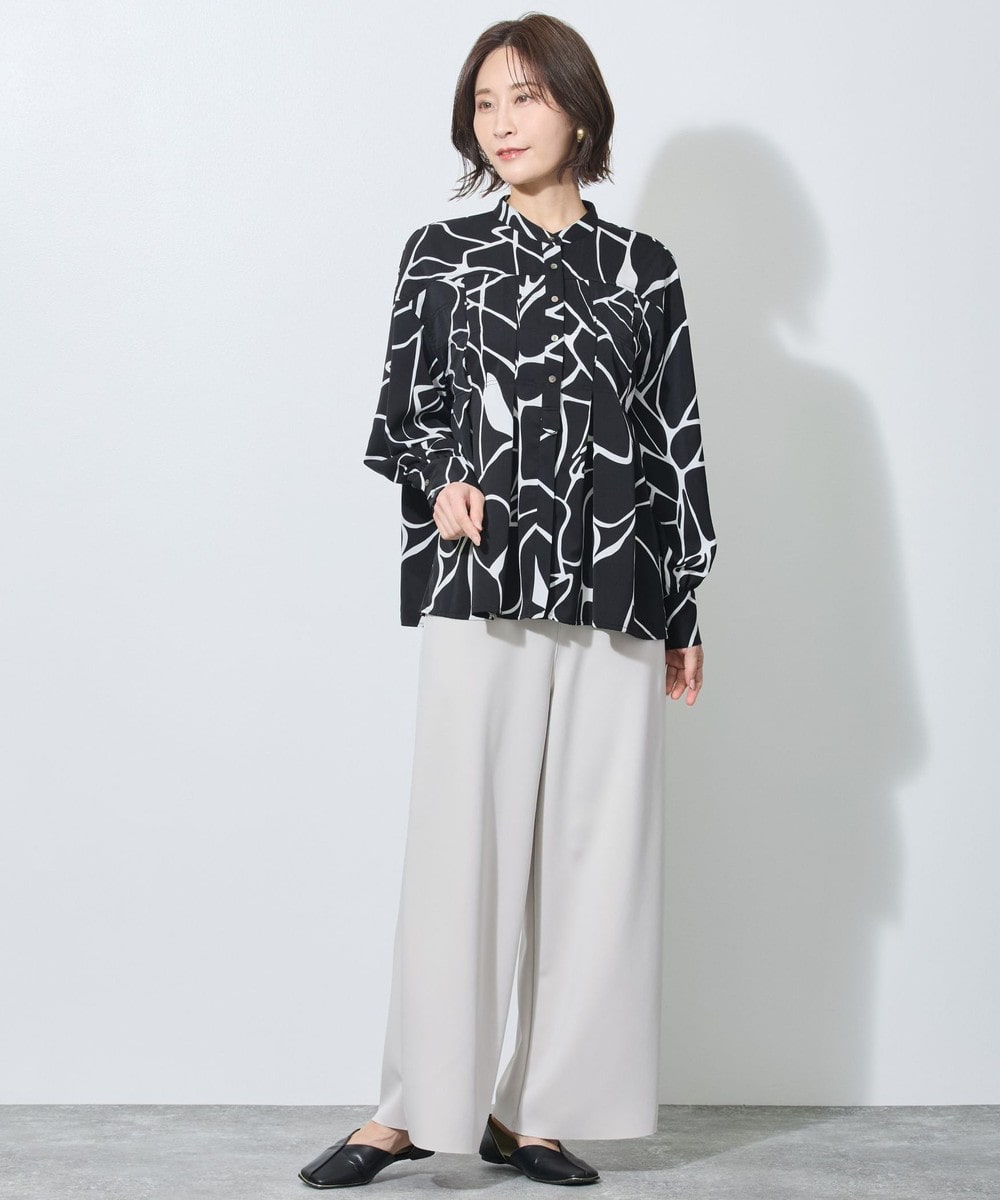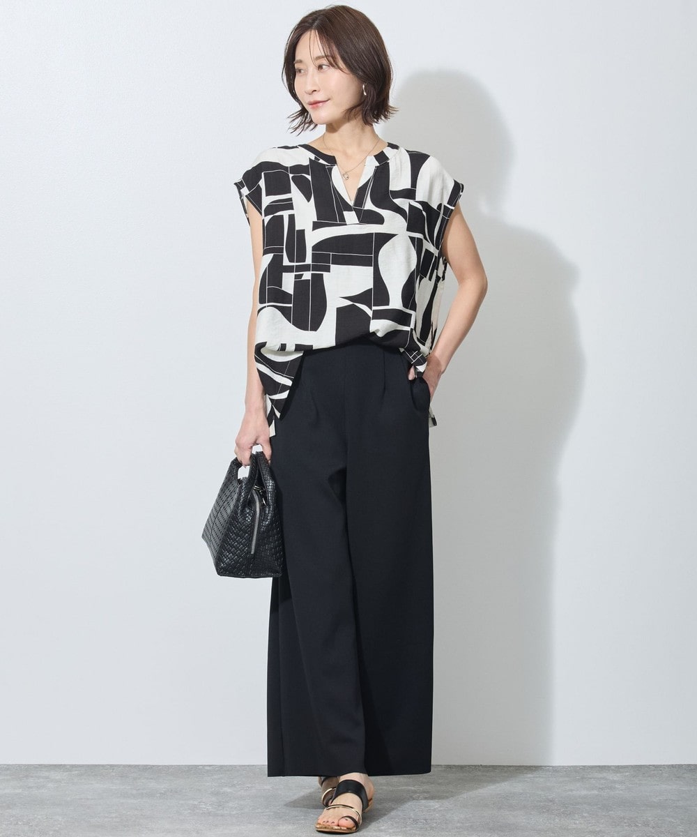 カジュアルにもきれい目にも合わせられ、どんなシチュエーションでも取り入れやすいアイテムです。