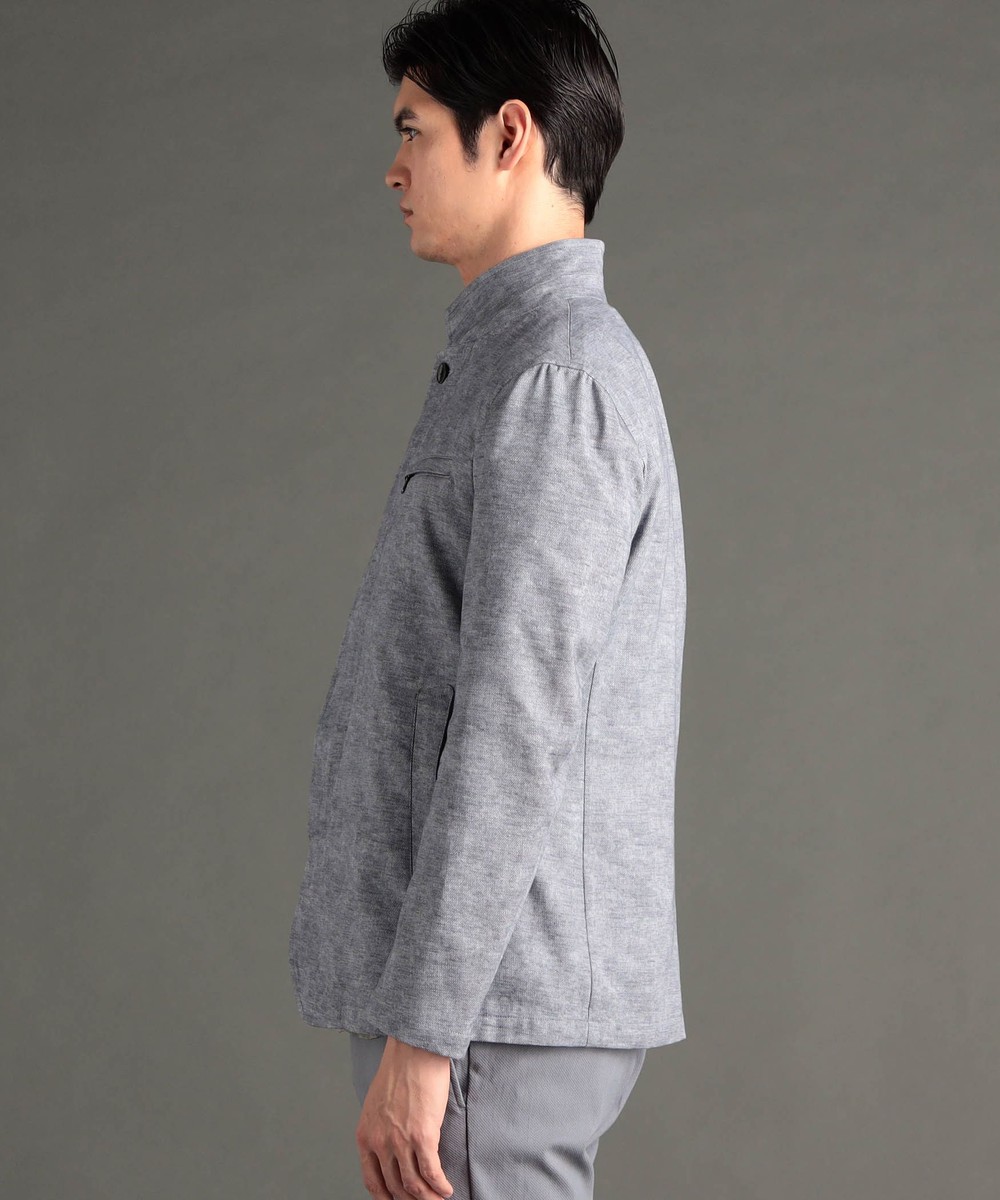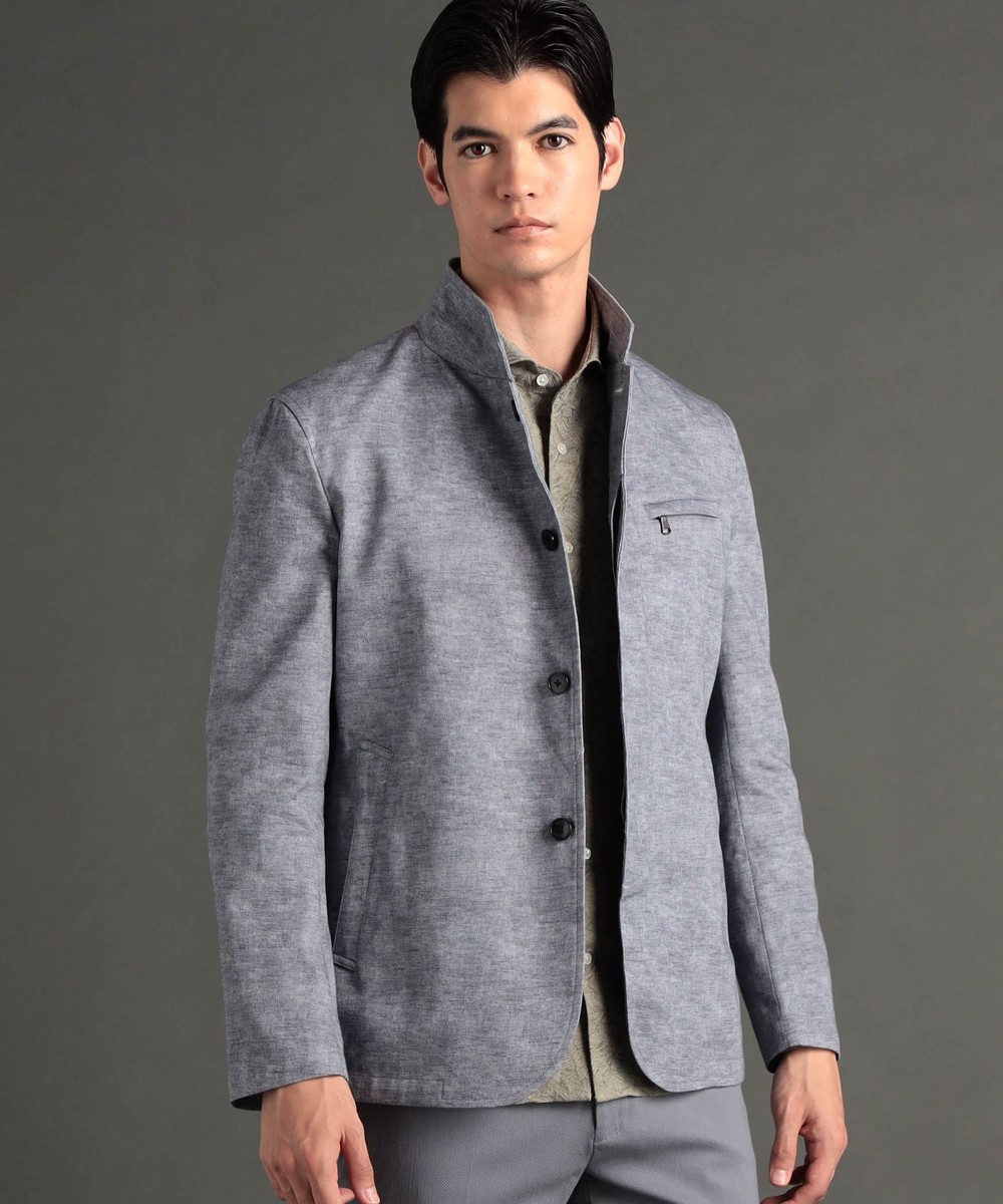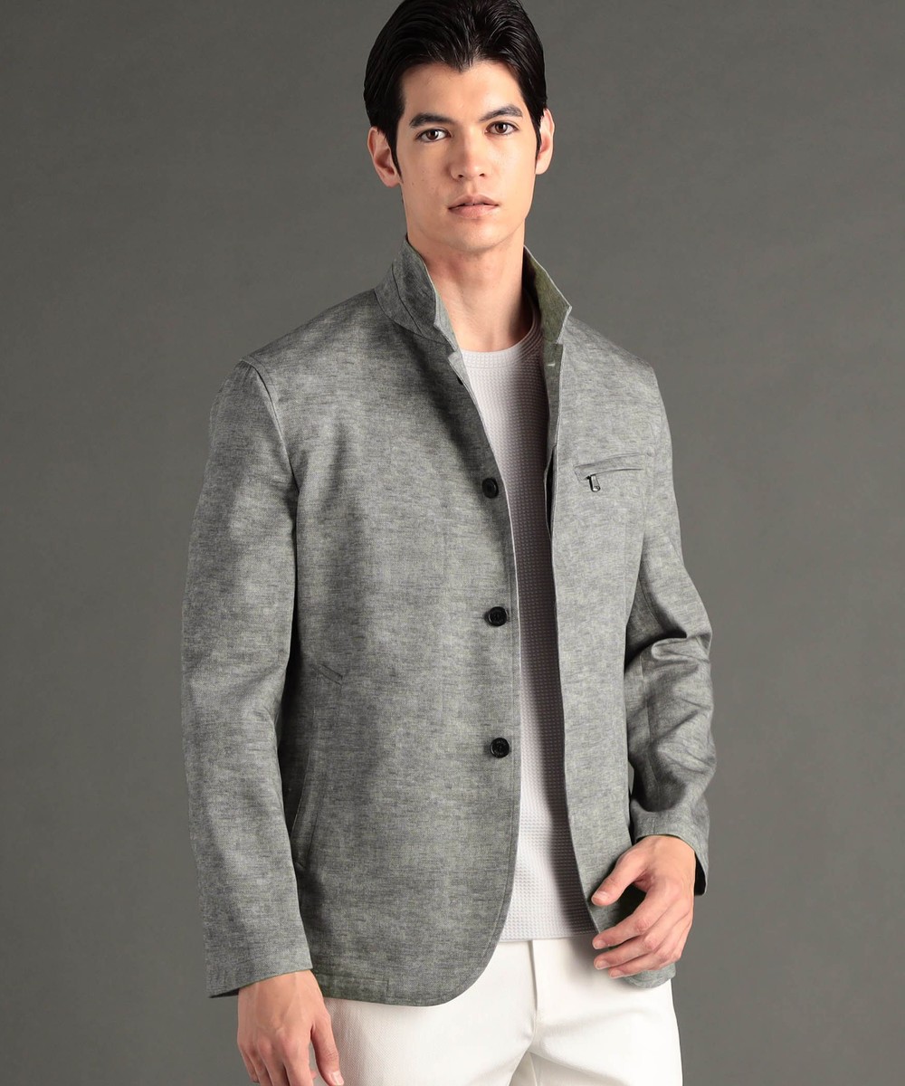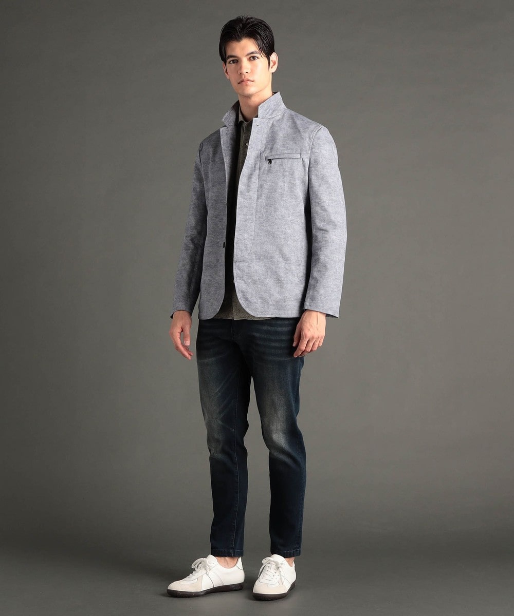 テーラードをベースに、ミニマルなスタンドカラーに進化させ、ミリタリーを再解釈したクリエイティブなアウター。