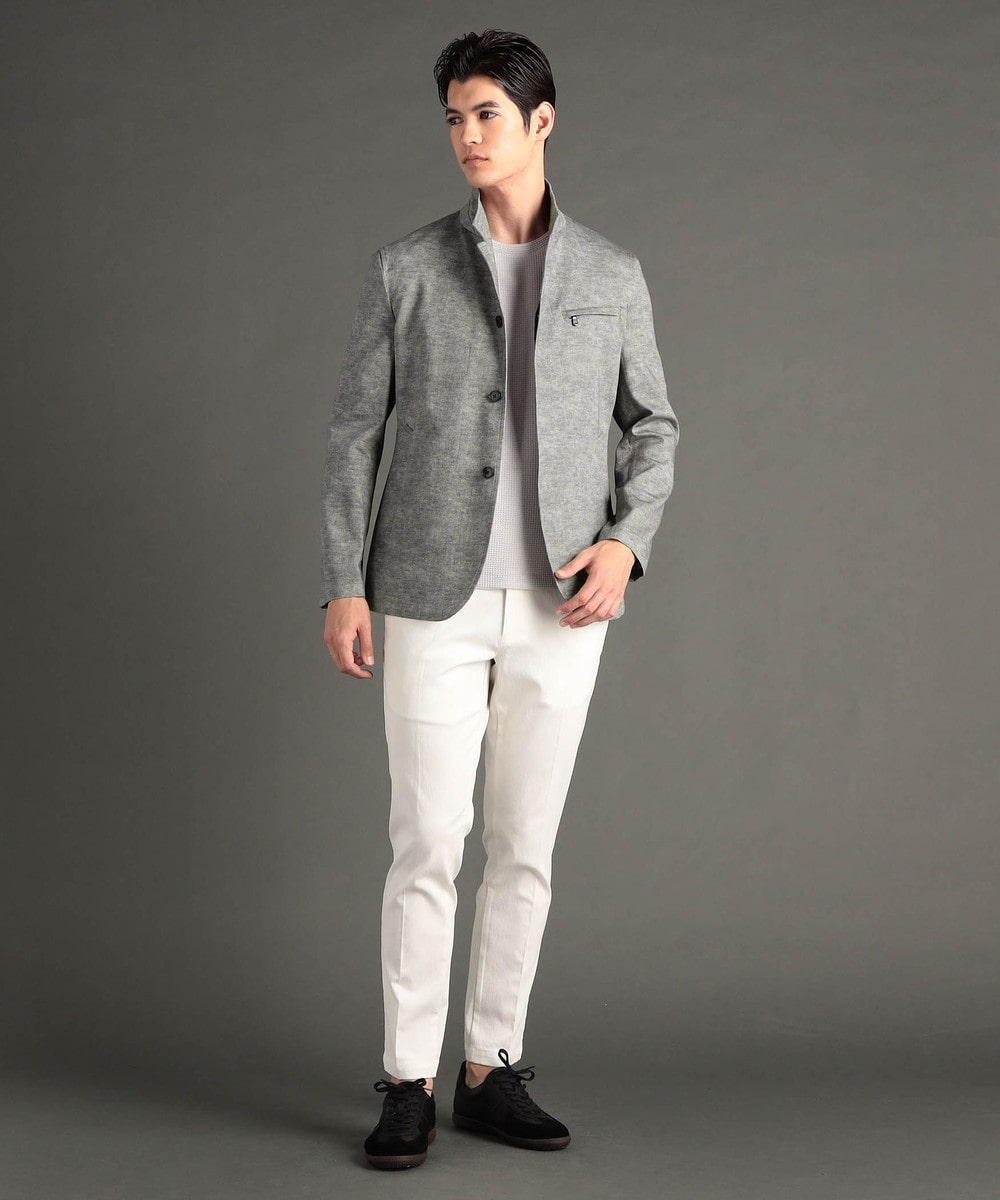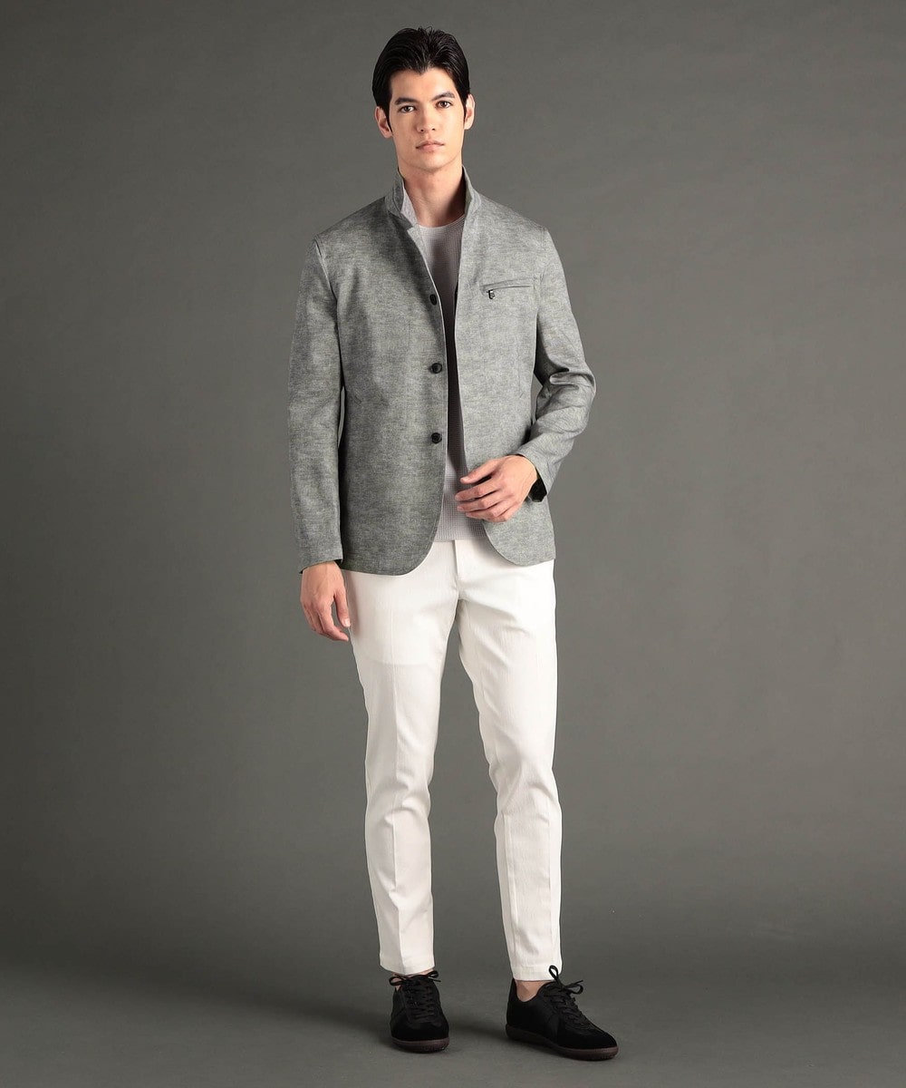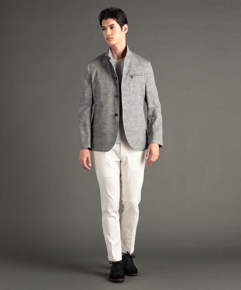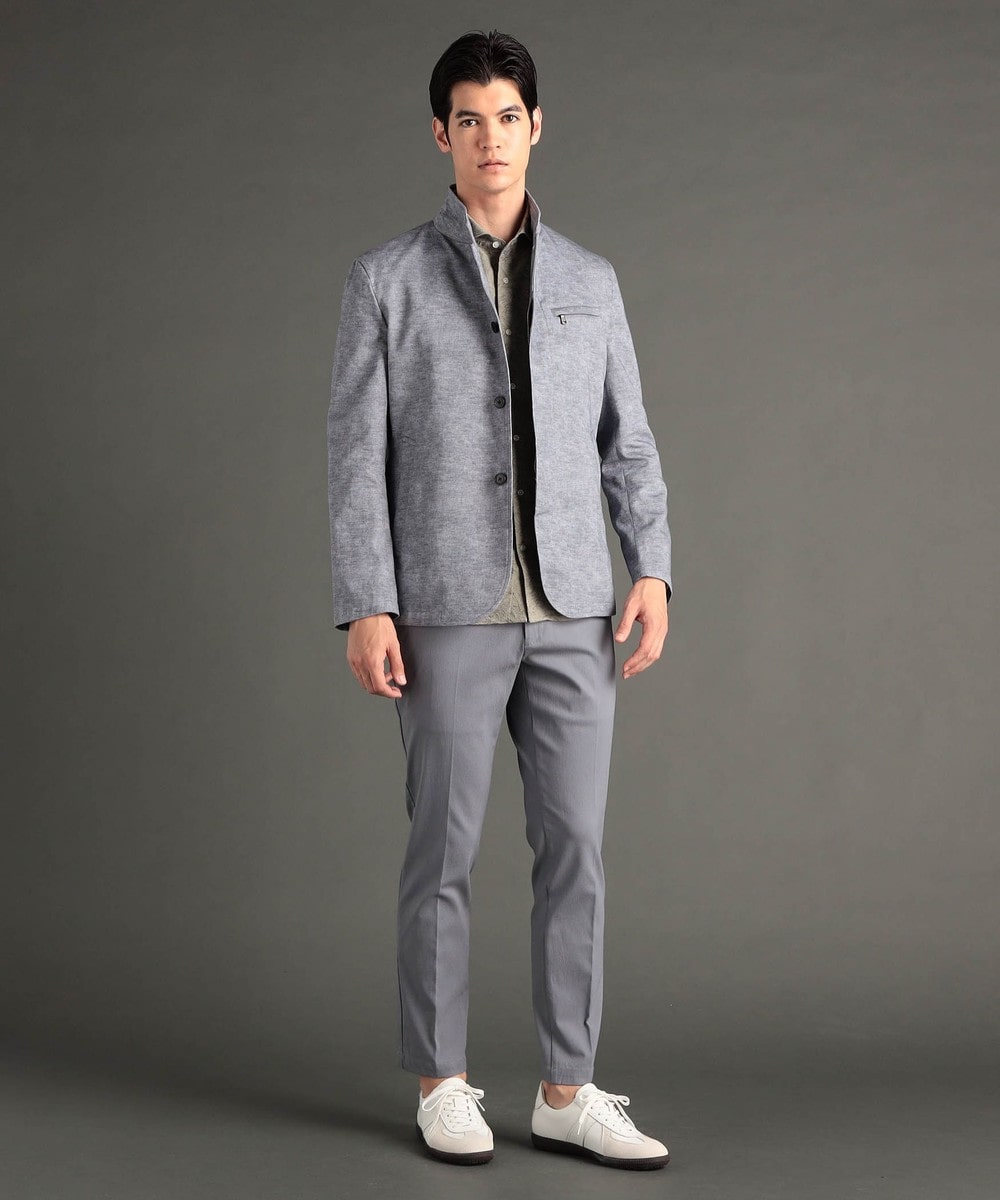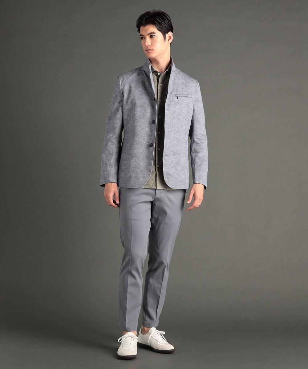 テーラードをベースに、ミニマルなスタンドカラーに進化させ、ミリタリーを再解釈したクリエイティブなアウター。