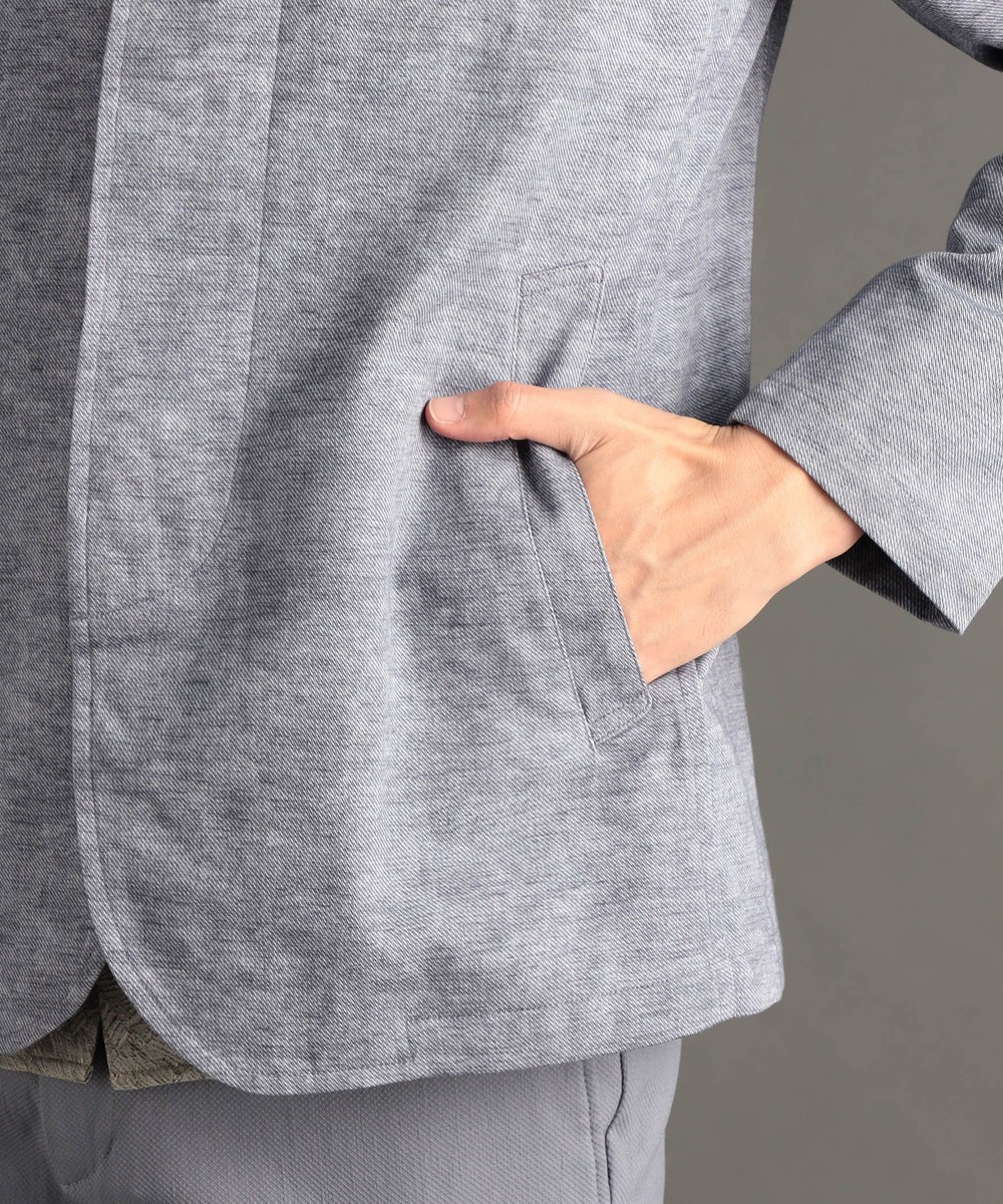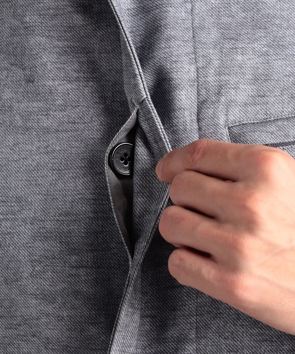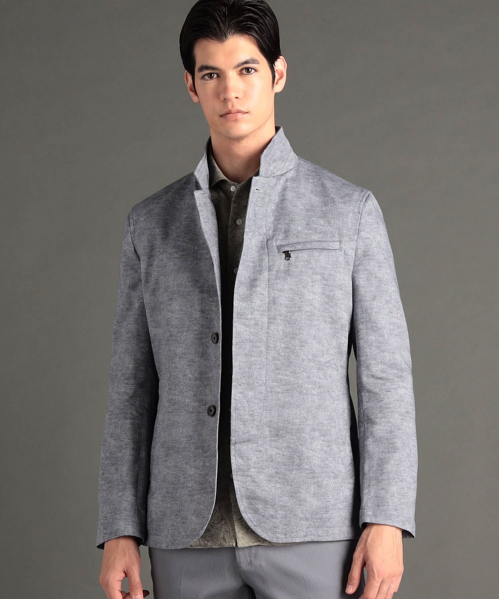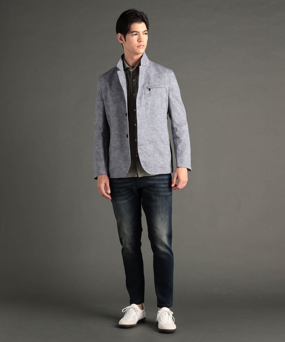 テーラードをベースに、ミニマルなスタンドカラーに進化させ、ミリタリーを再解釈したクリエイティブなアウター。