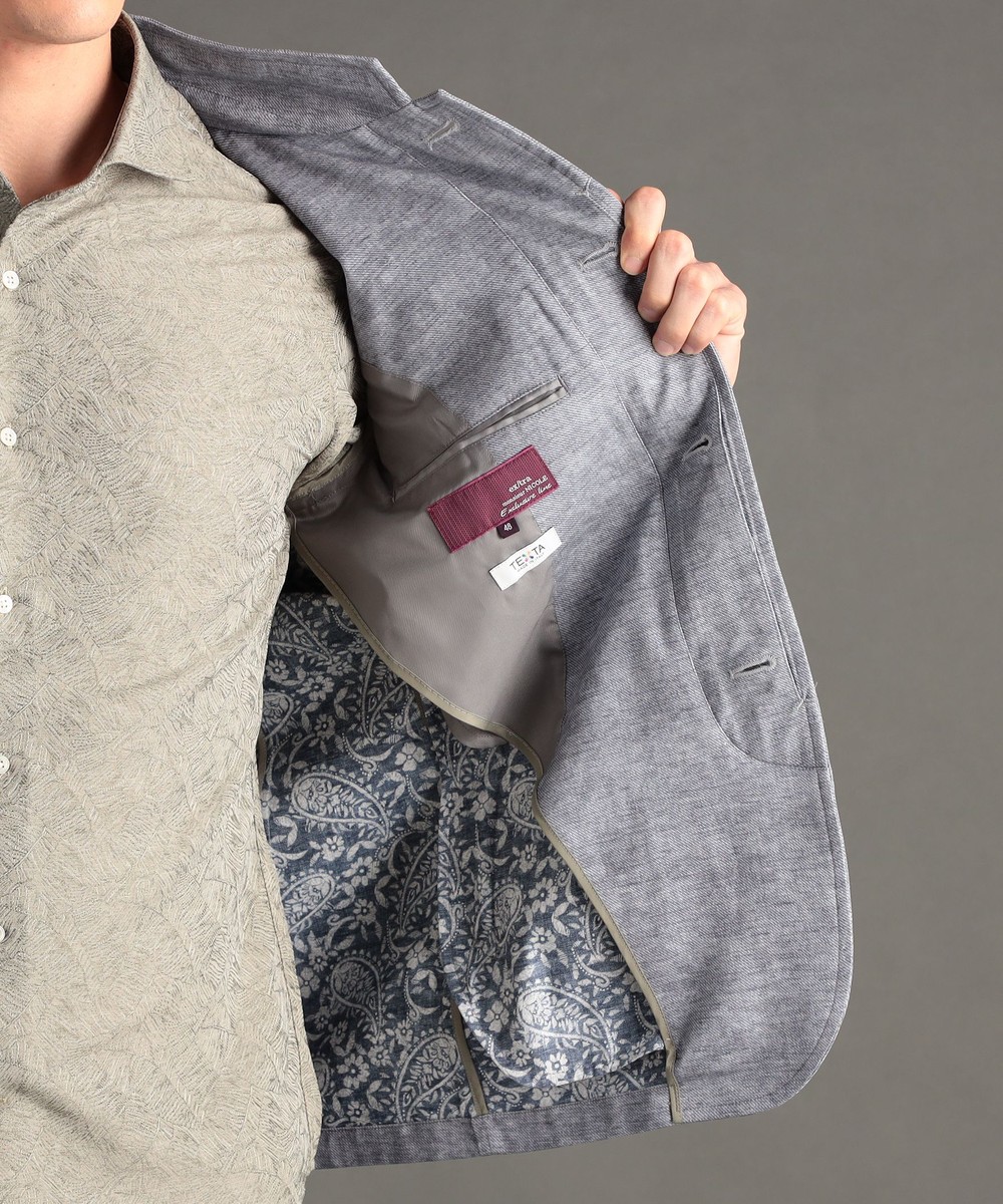 TEXTA ダークボタニカル&デニムプリント ドライバーズジャケット