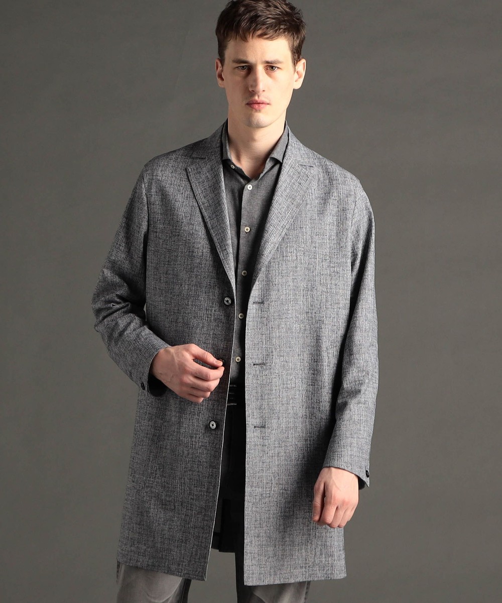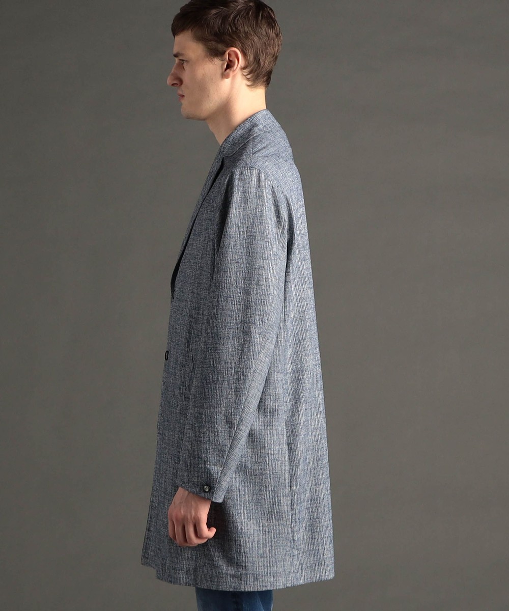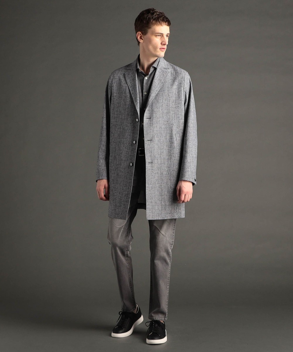 ややコンパクトな衿と、軽く羽織れる着丈90cmのスプリング仕様のチェスターコート。