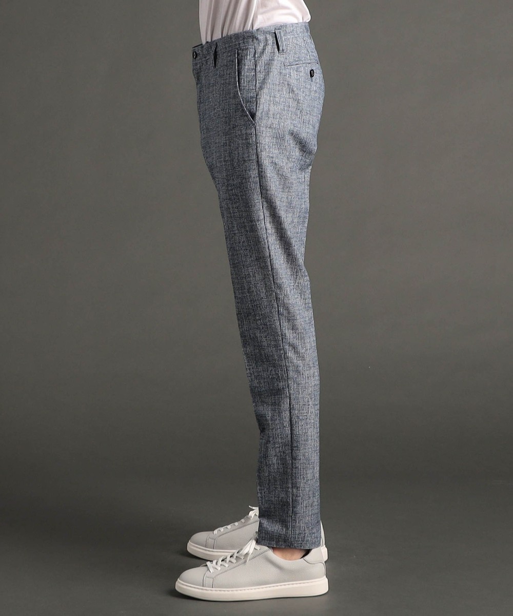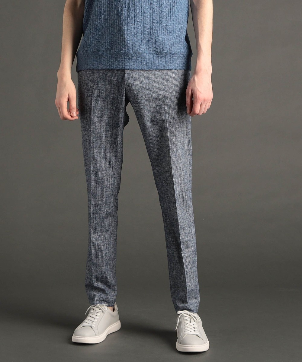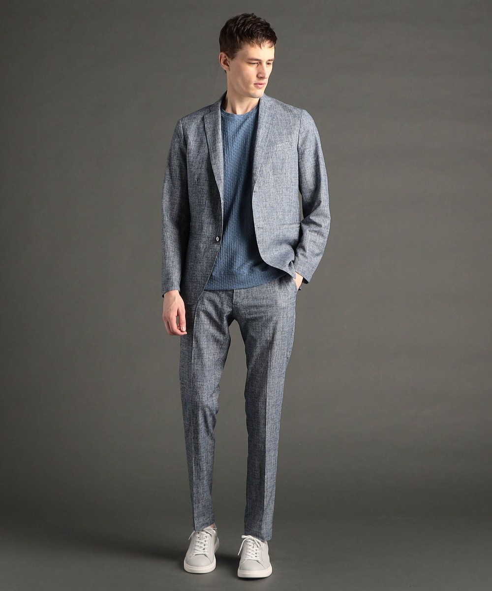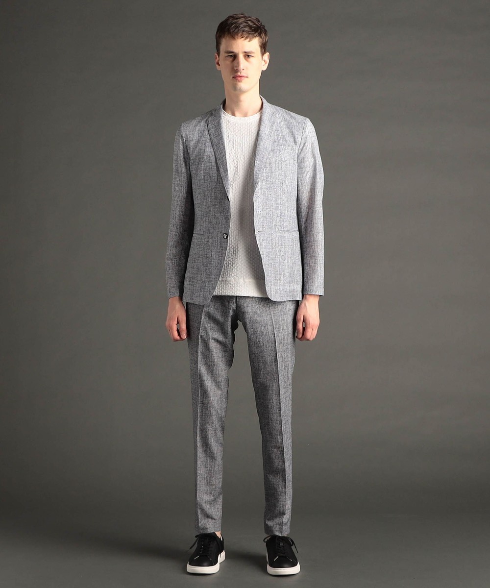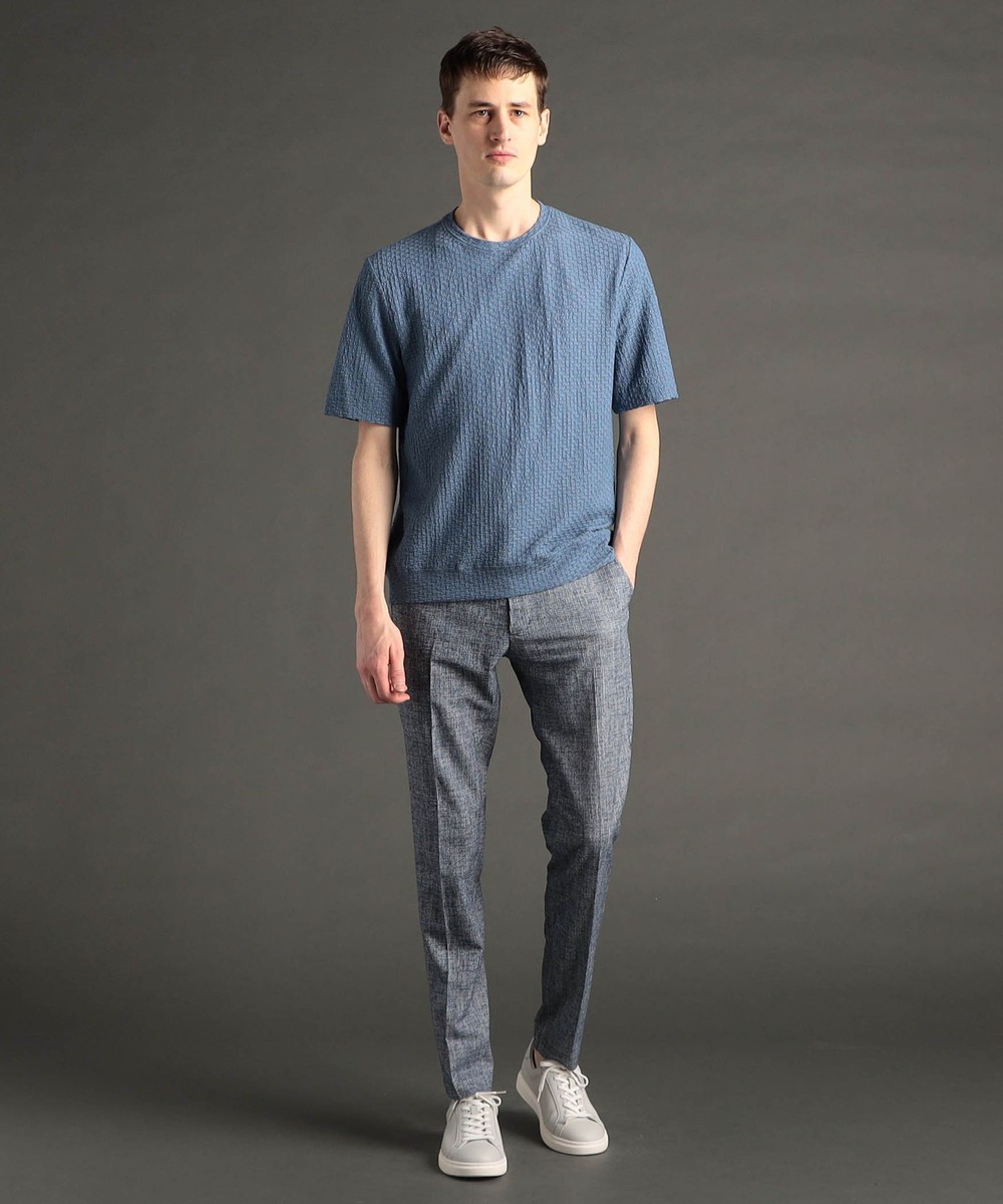 絶妙な凹凸感と、レーヨンの混紡により、ドライタッチ感と滑らかさを両立したテクニカル素材。