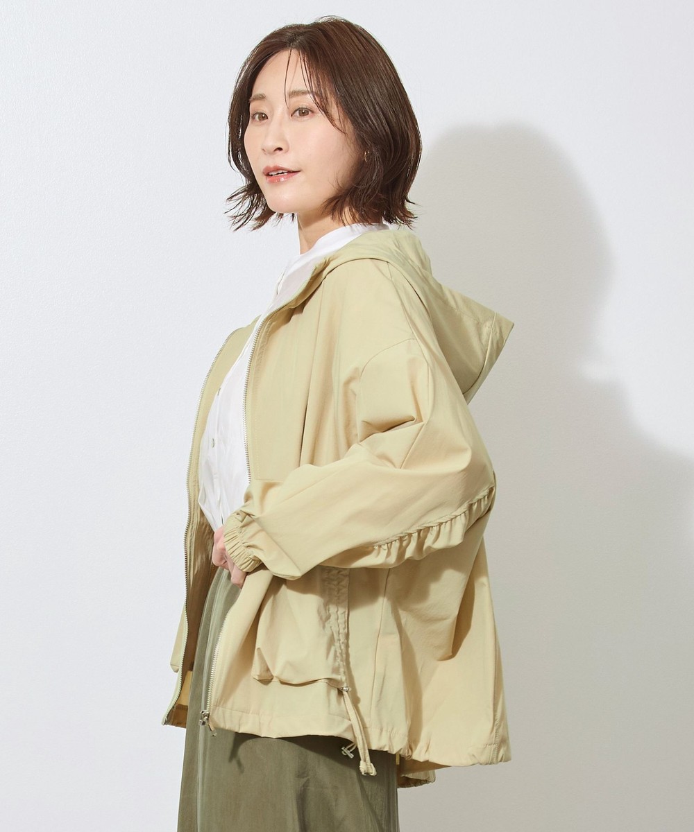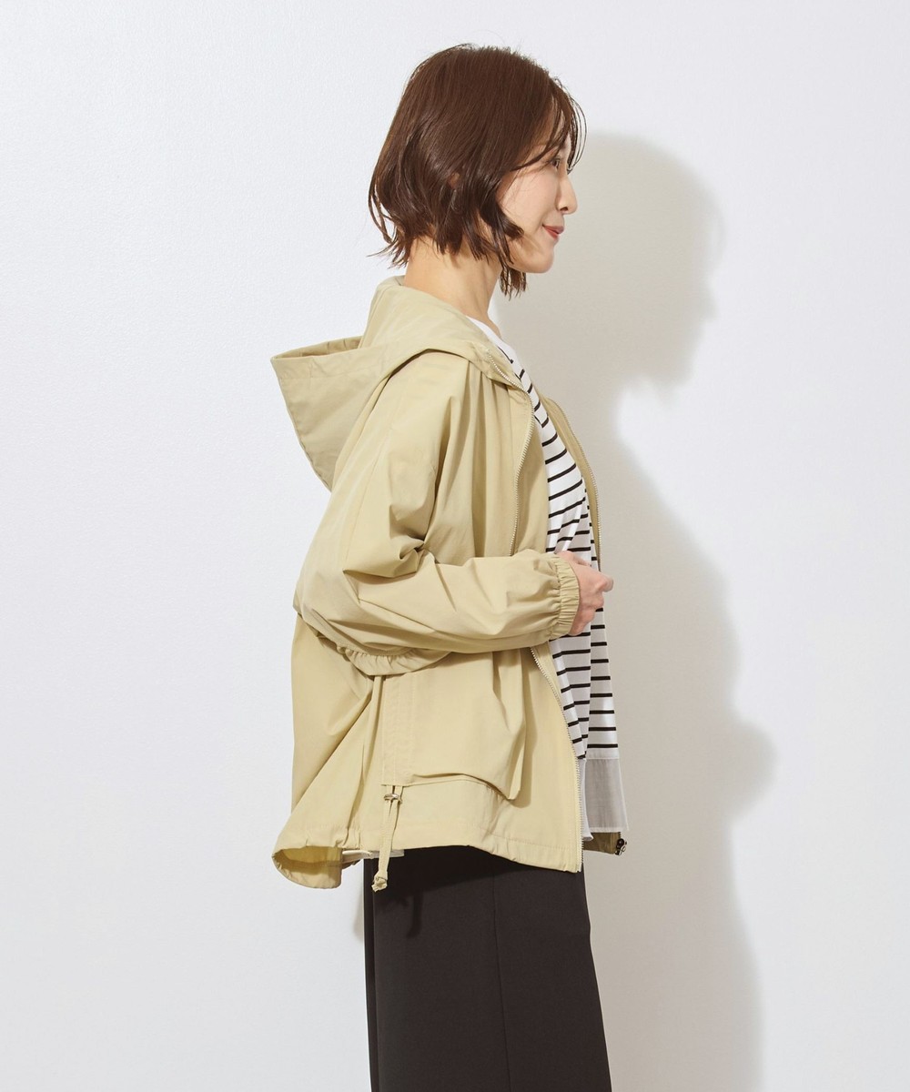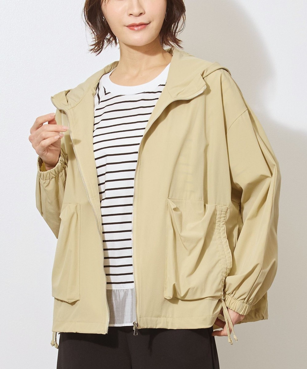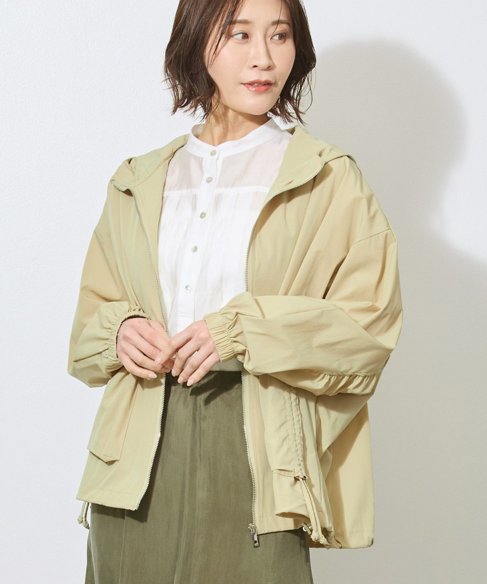 軽い素材でサラッと羽織れるフード付きのブルゾン。