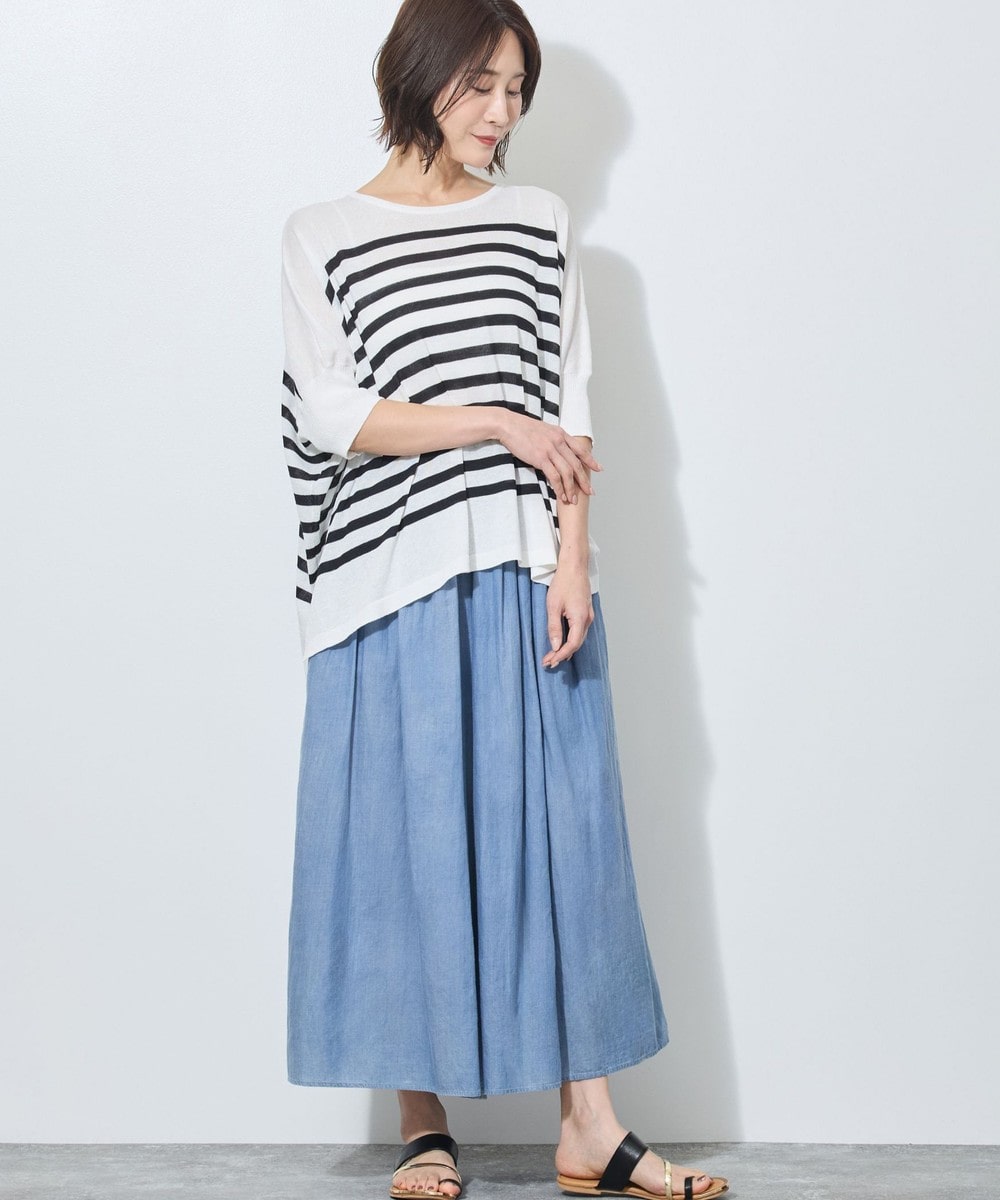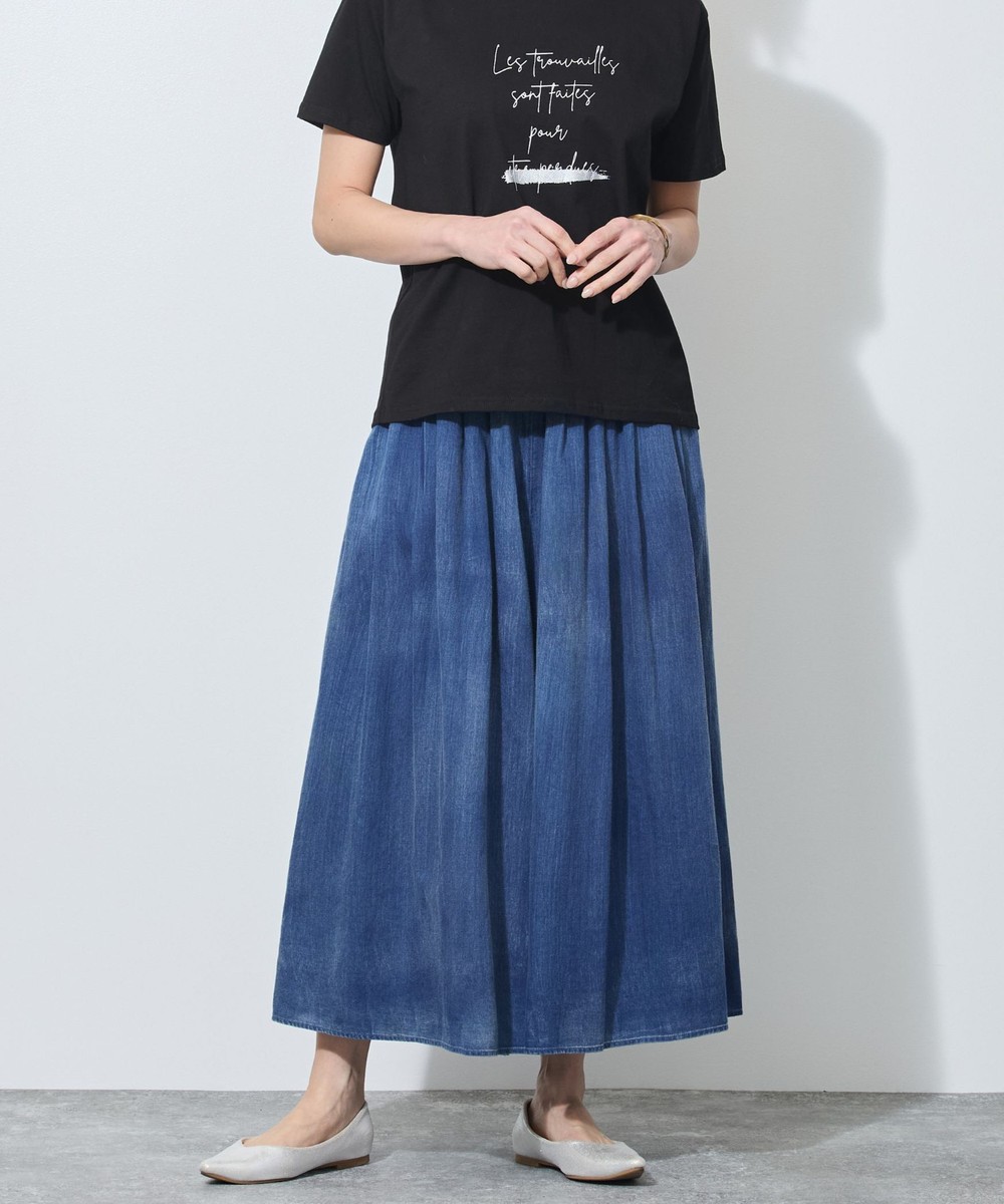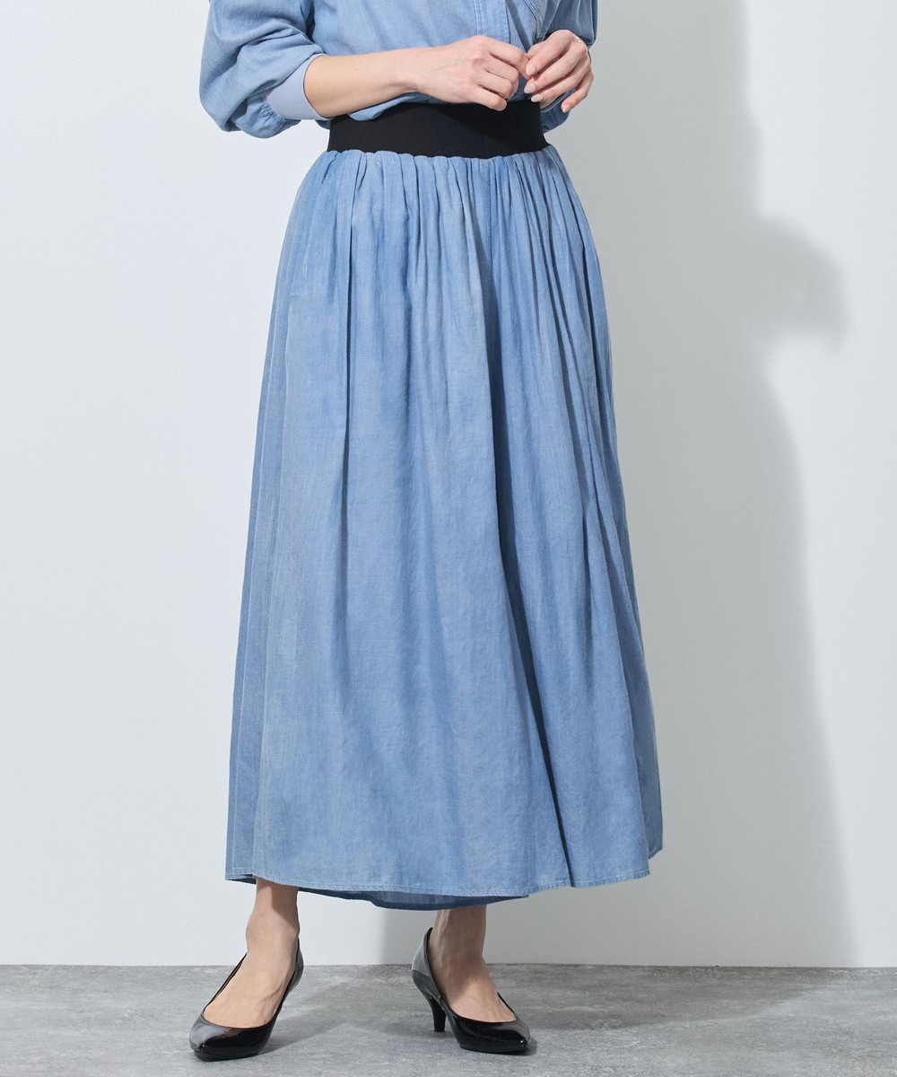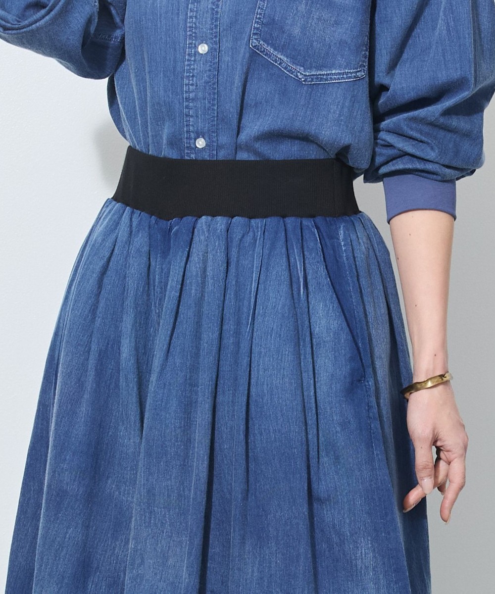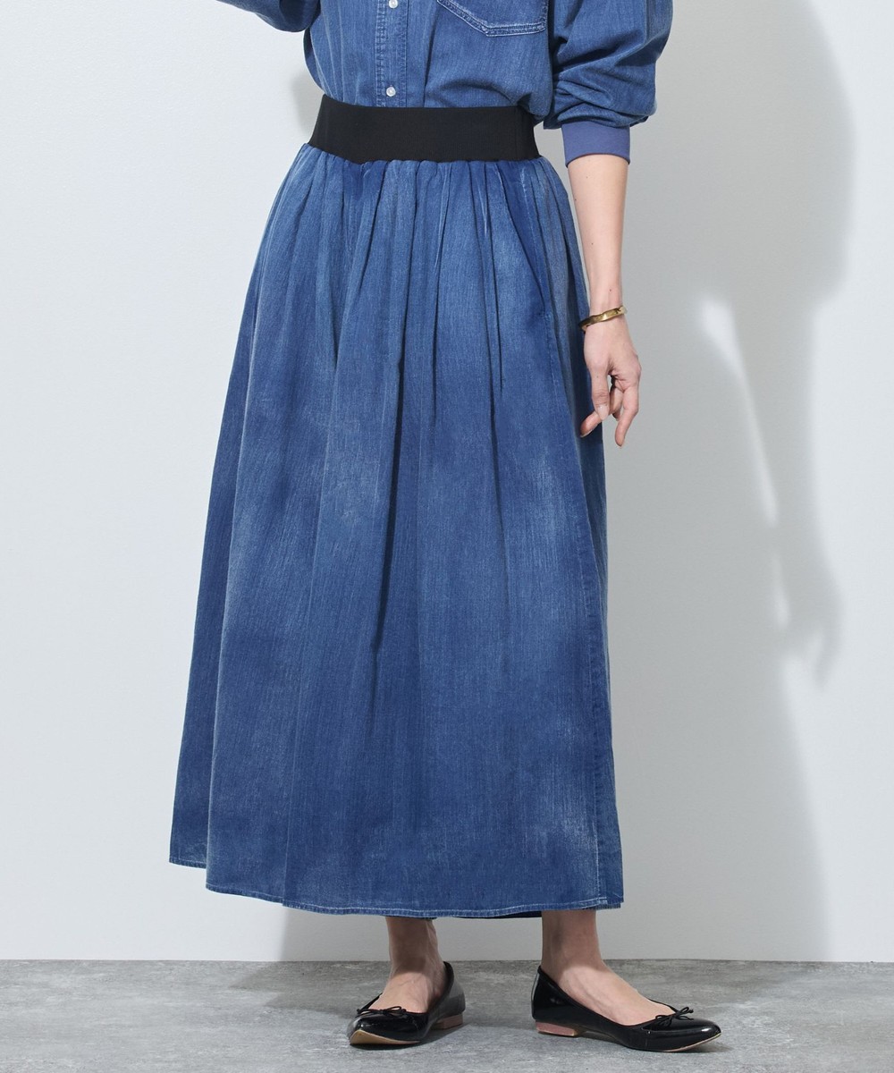 ガーゼのような薄手のデニムを使用したフレアパンツ。