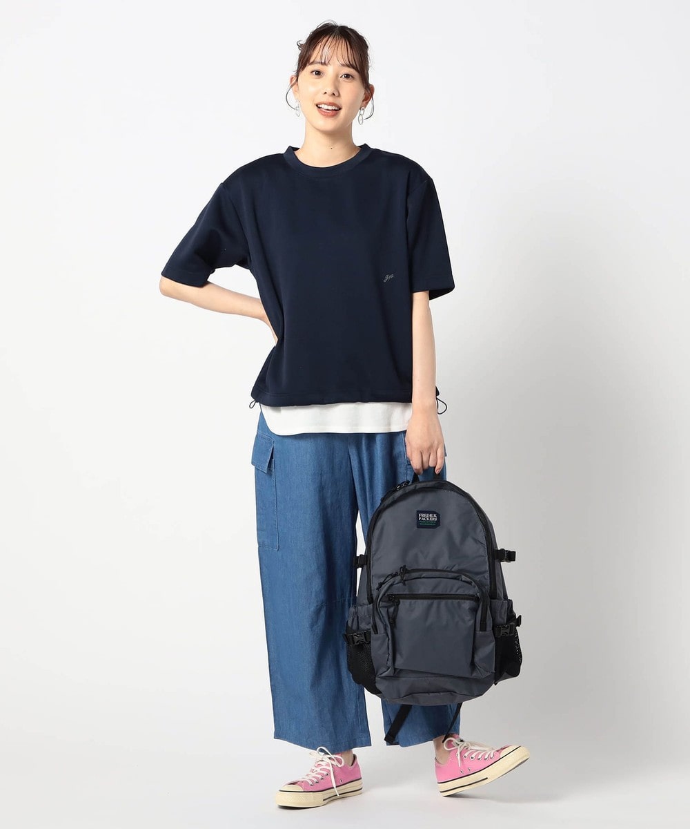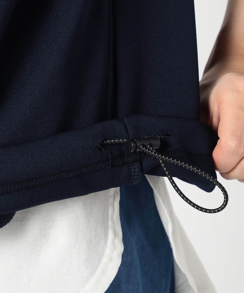 *裾のドローコードを絞って着丈の調整が可能なので、ボトムの種類を選びません。
