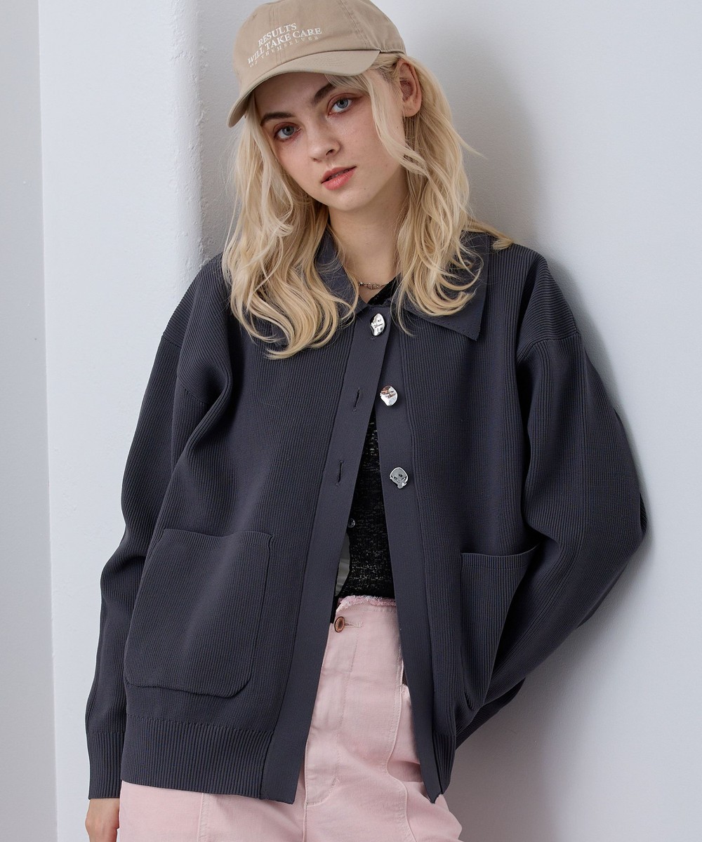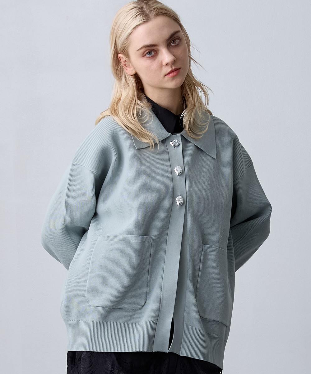 大き目なメタル釦が存在感ある春にぴったりなカーディガンが新登場!
