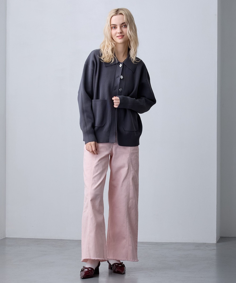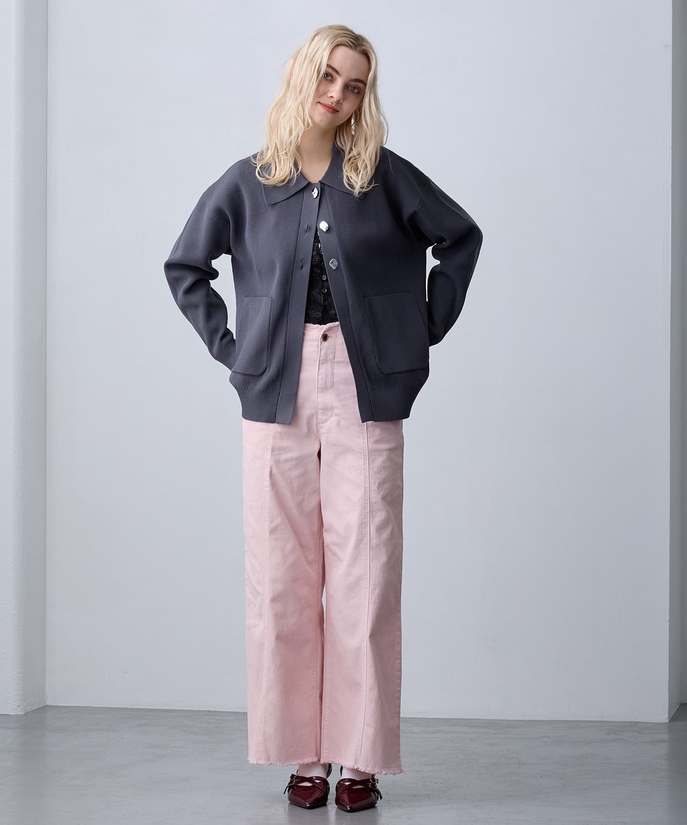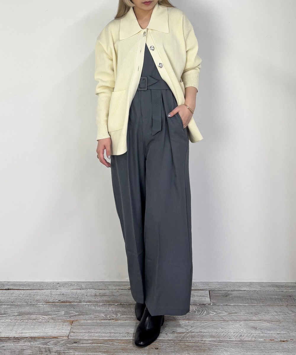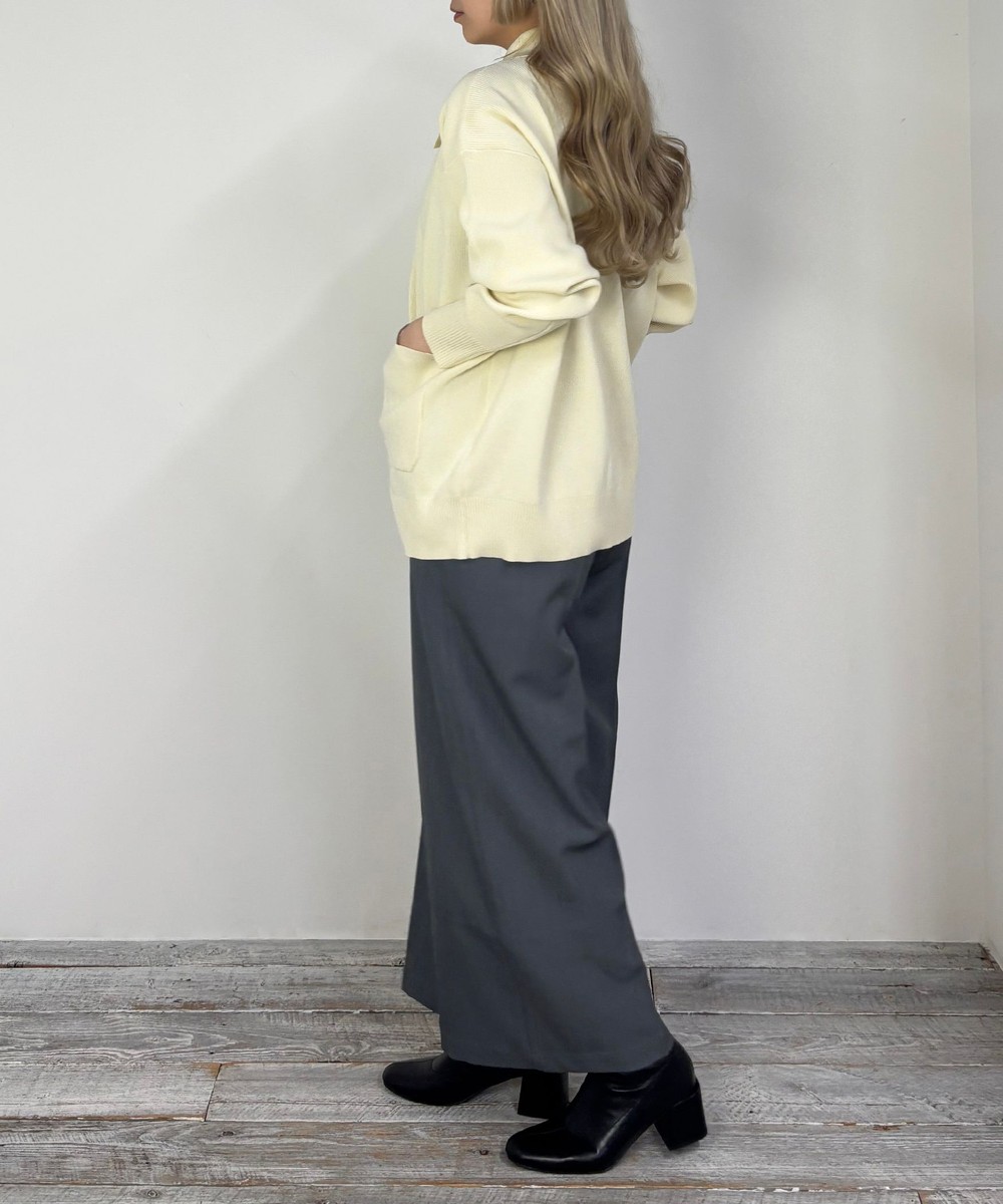 釦は上部のみのためレースインナーとの合わせで裾から中のトップスを見せるスタイリングもおすすめです。