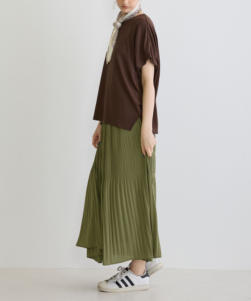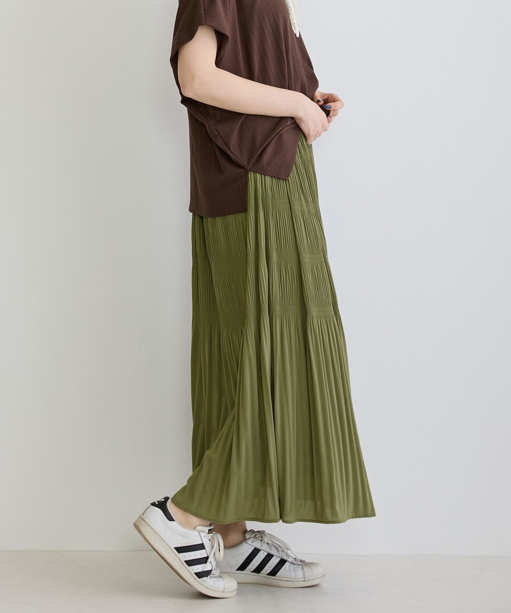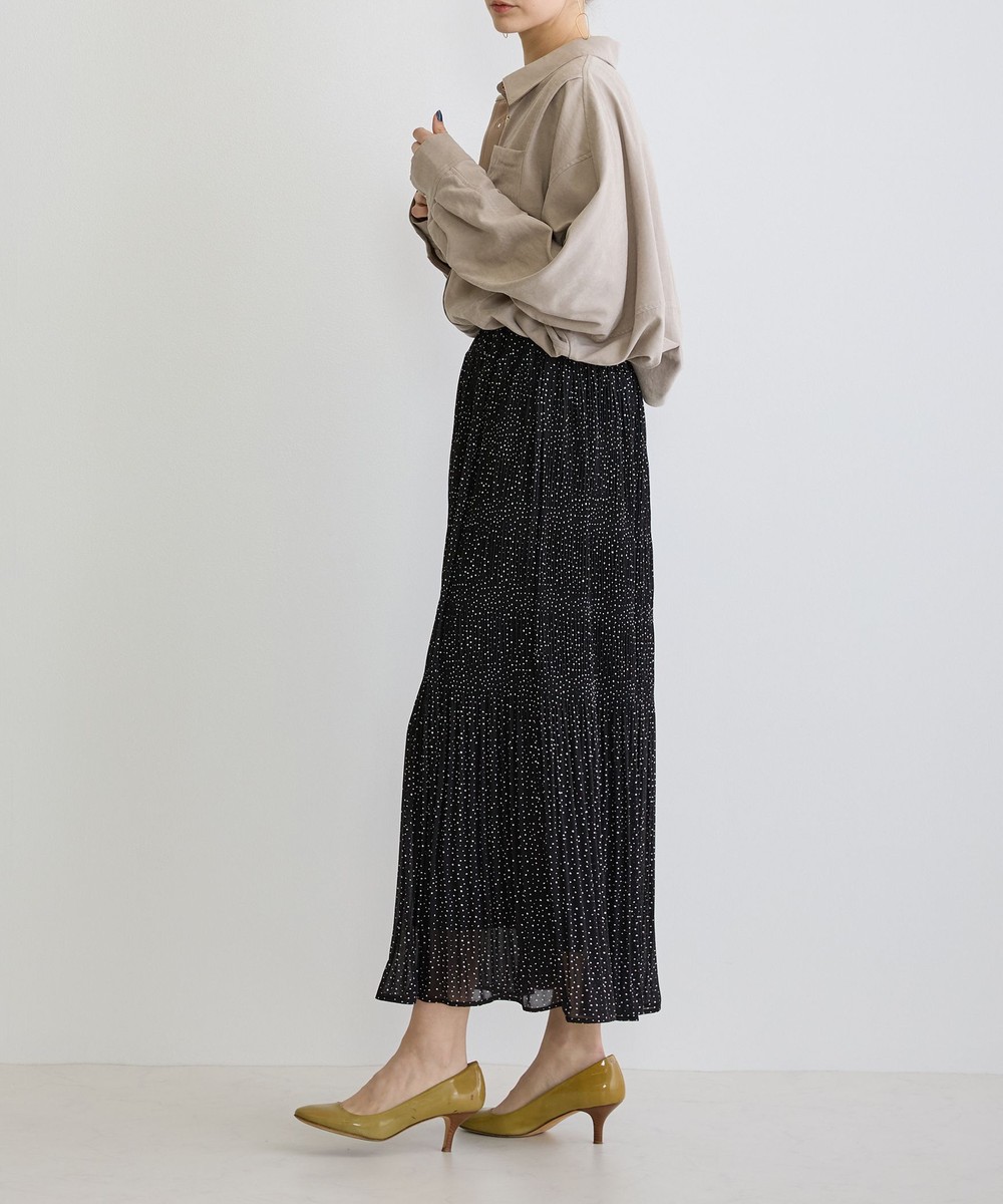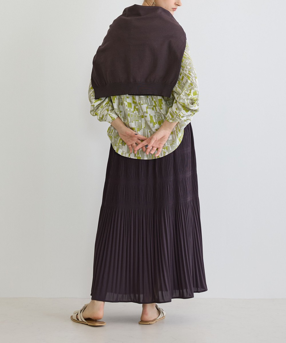 変化のついたプリーツが軽やかでふんわりとした印象を与えてくれ、春にピッタリなアイテムです。