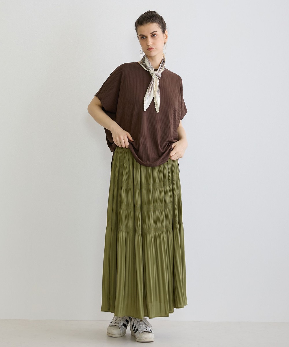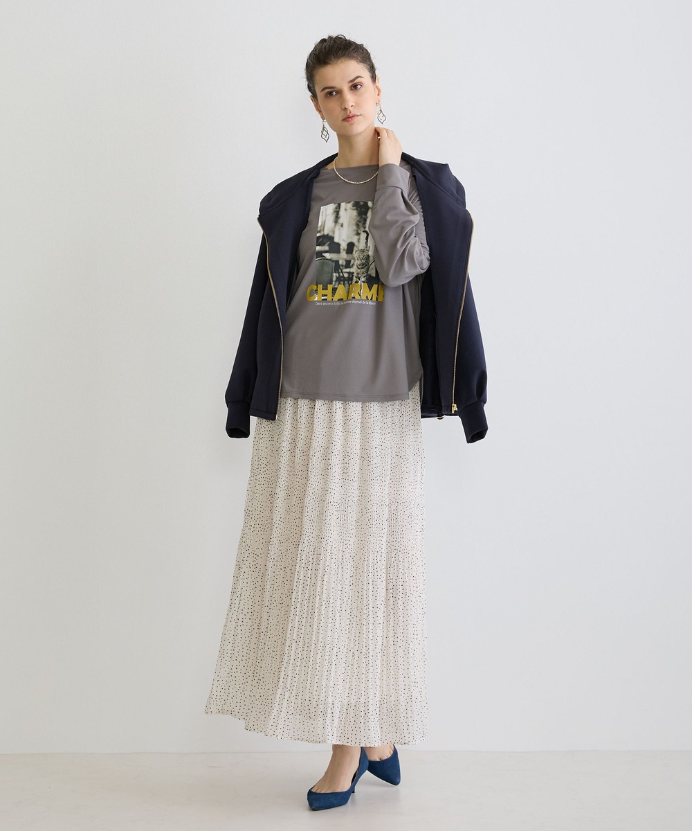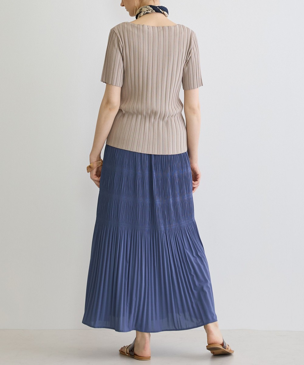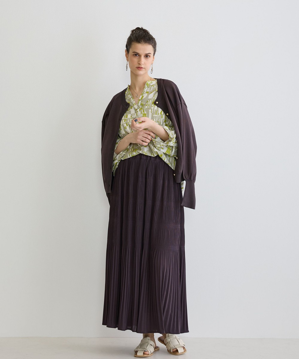 変化のついたプリーツが軽やかでふんわりとした印象を与えてくれ、春にピッタリなアイテムです。
