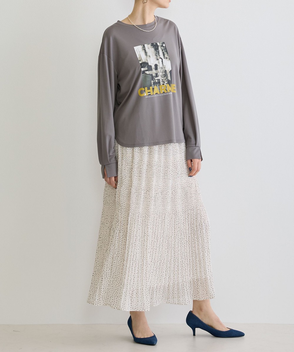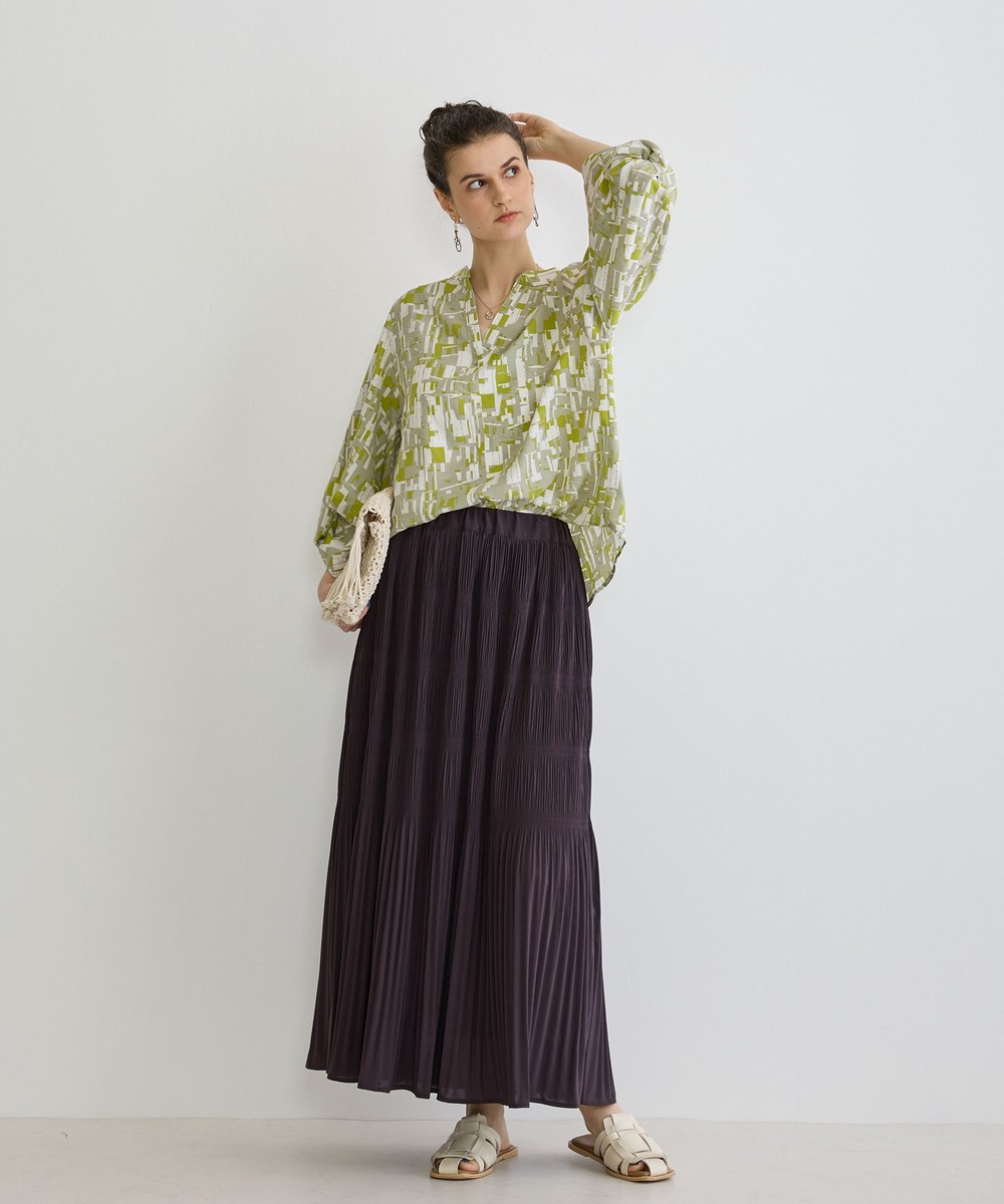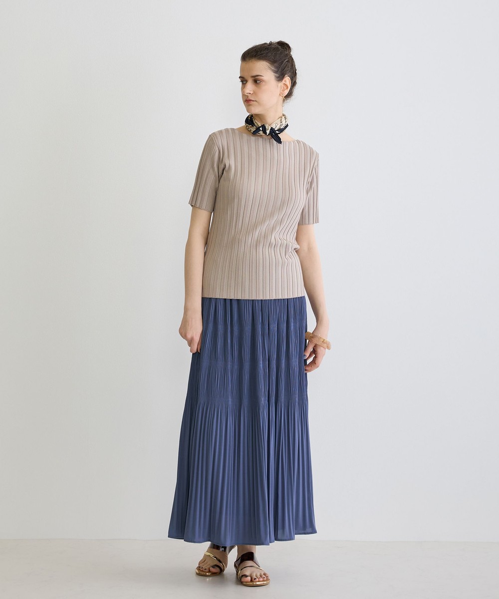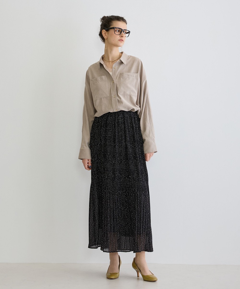 変化のついたプリーツが軽やかでふんわりとした印象を与えてくれ、春にピッタリなアイテムです。