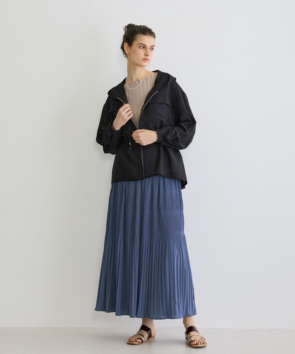ジップパーカーやブルゾンなどと合わせてカジュアルに、コートやカーディガンと合わせてきれいめにと、エアリー感のある素材はシーズンムードを高めつつ、幅広いコーディネートが楽しめます。