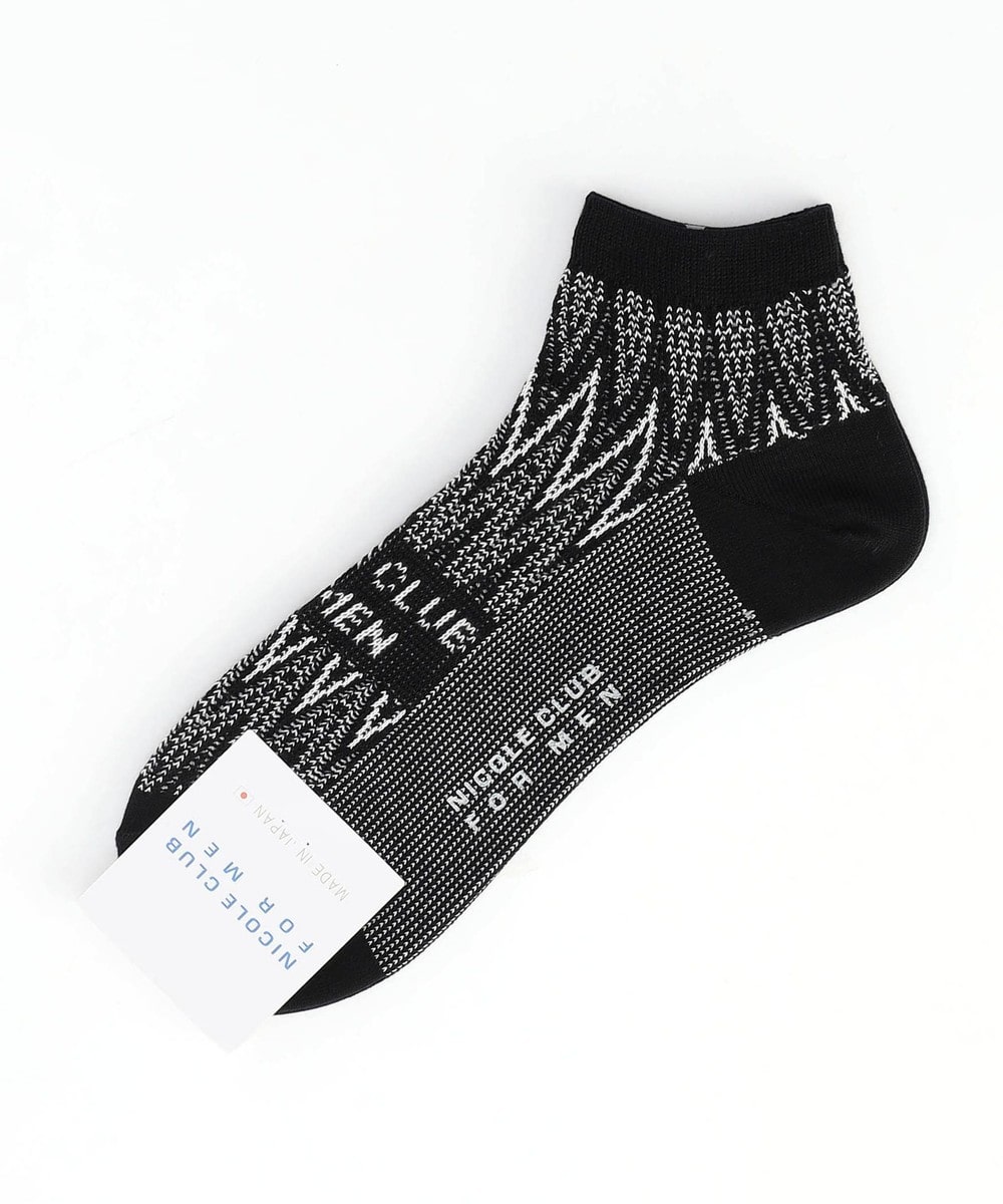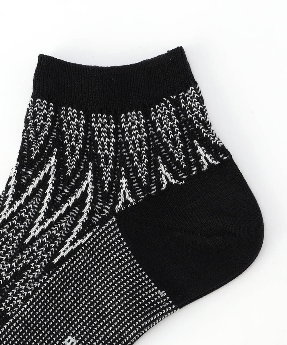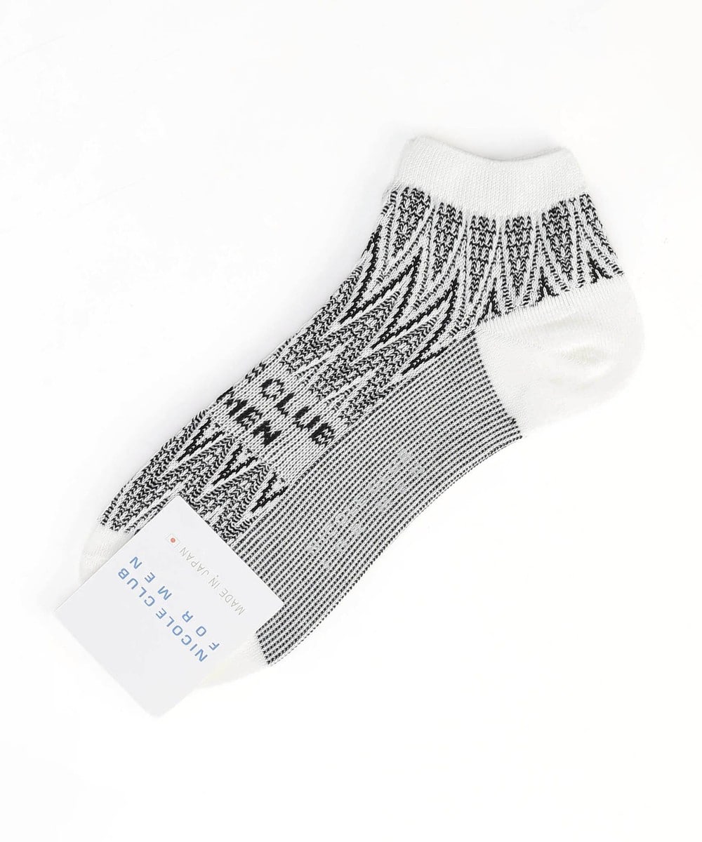 シェブロン(ヘリンボン)柄×ロゴデザインのショート丈ソックス。兵庫県の専門工場で製造した上質な仕上がりの日本製ソックスです。ピッチアレンジを効かせた細やかなシェブロン柄をベースに、足の甲にはスタイリッシュな印象のブランドロゴをジャカードで表現したオリジナリティ溢れる一足。スニーカーとの相性が特にピッタリのソックスです。ブランドネーム入りの口紙付き包装なので、ちょっとしたギフトにもおすすめです。