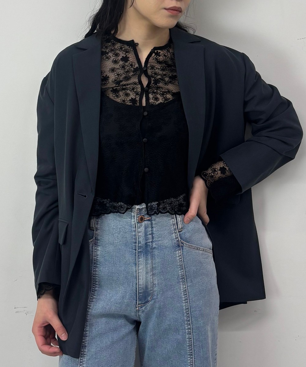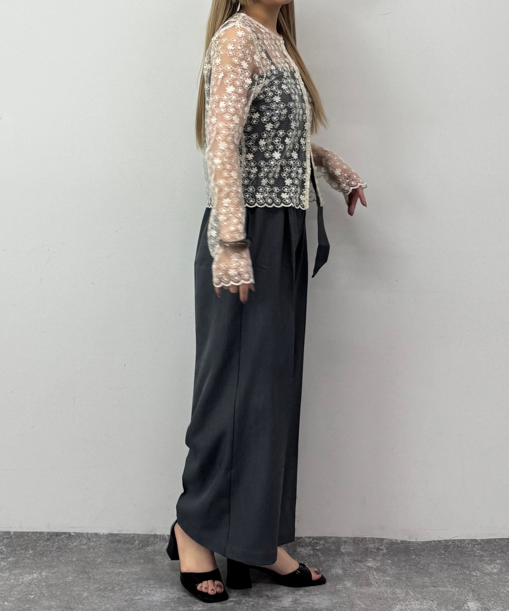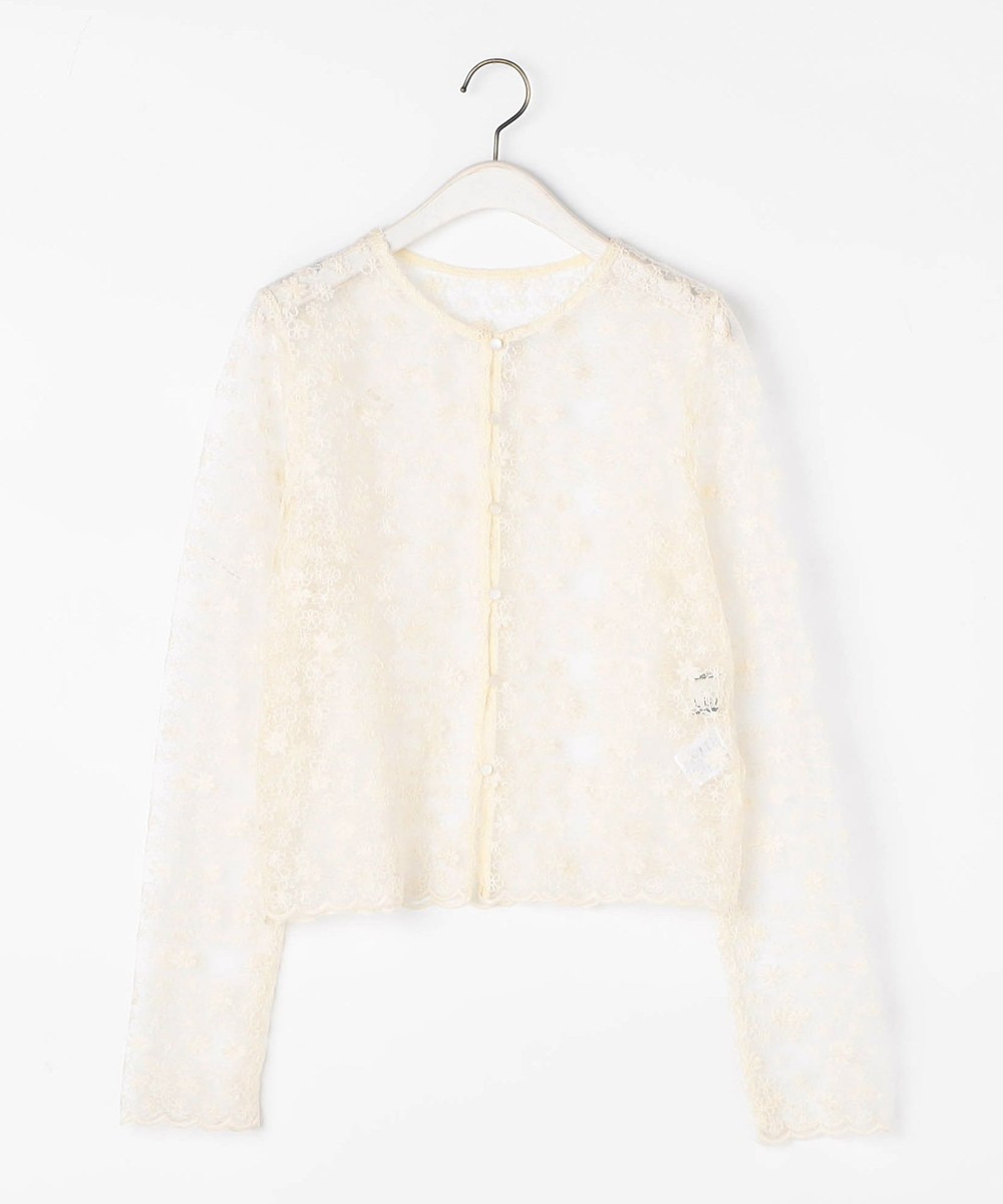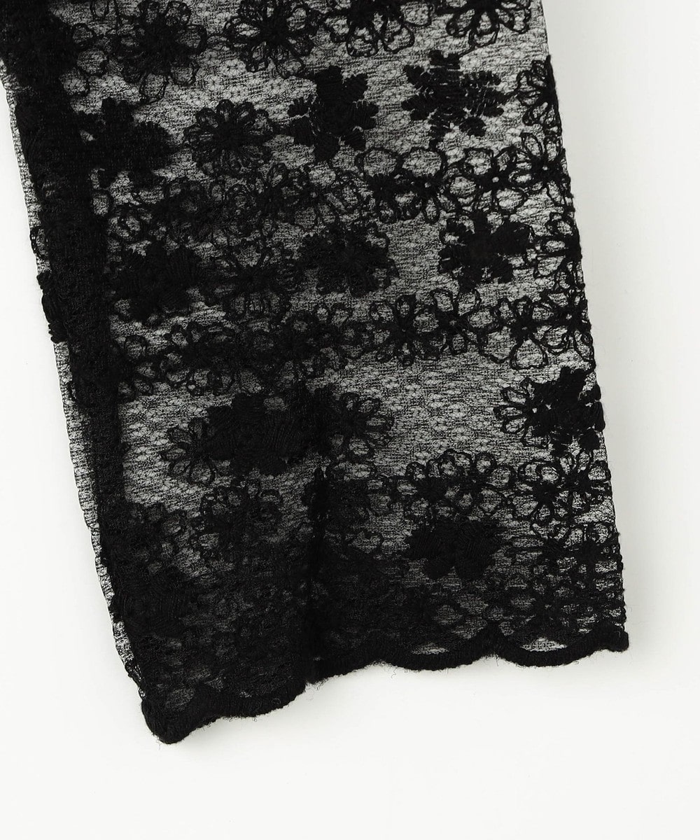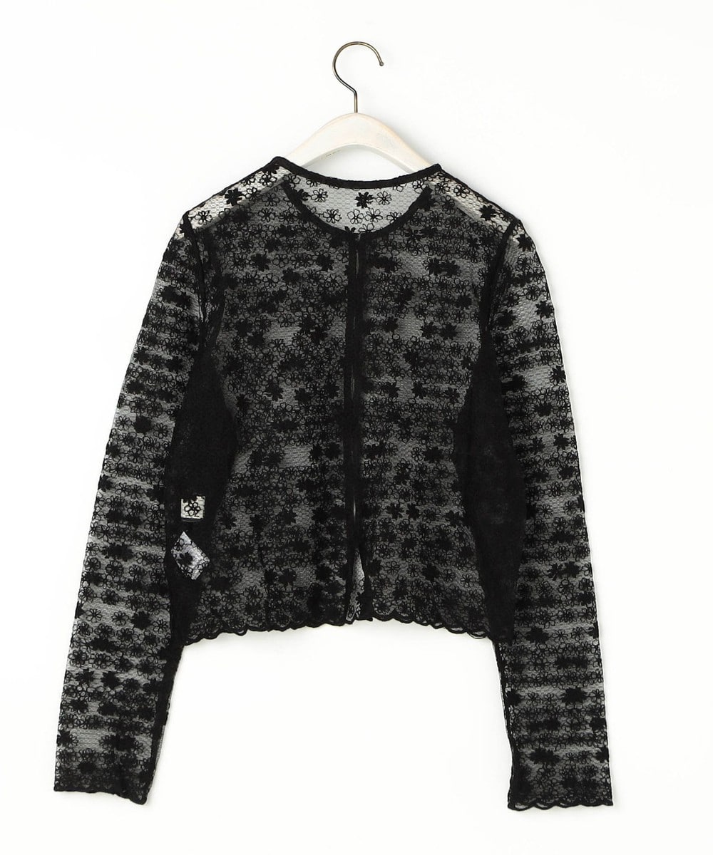 全体に施された花柄のレース刺繍が華やかなトップス。
