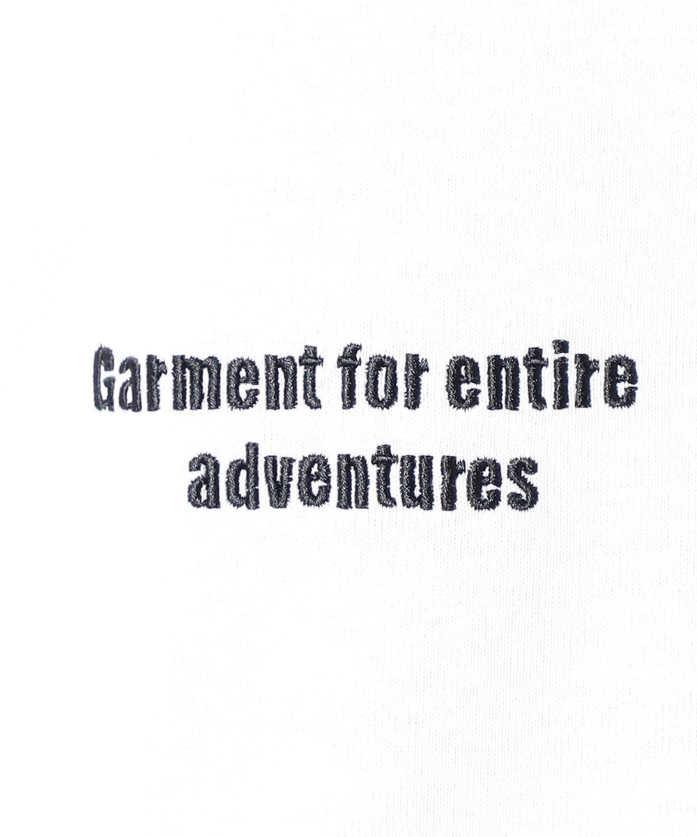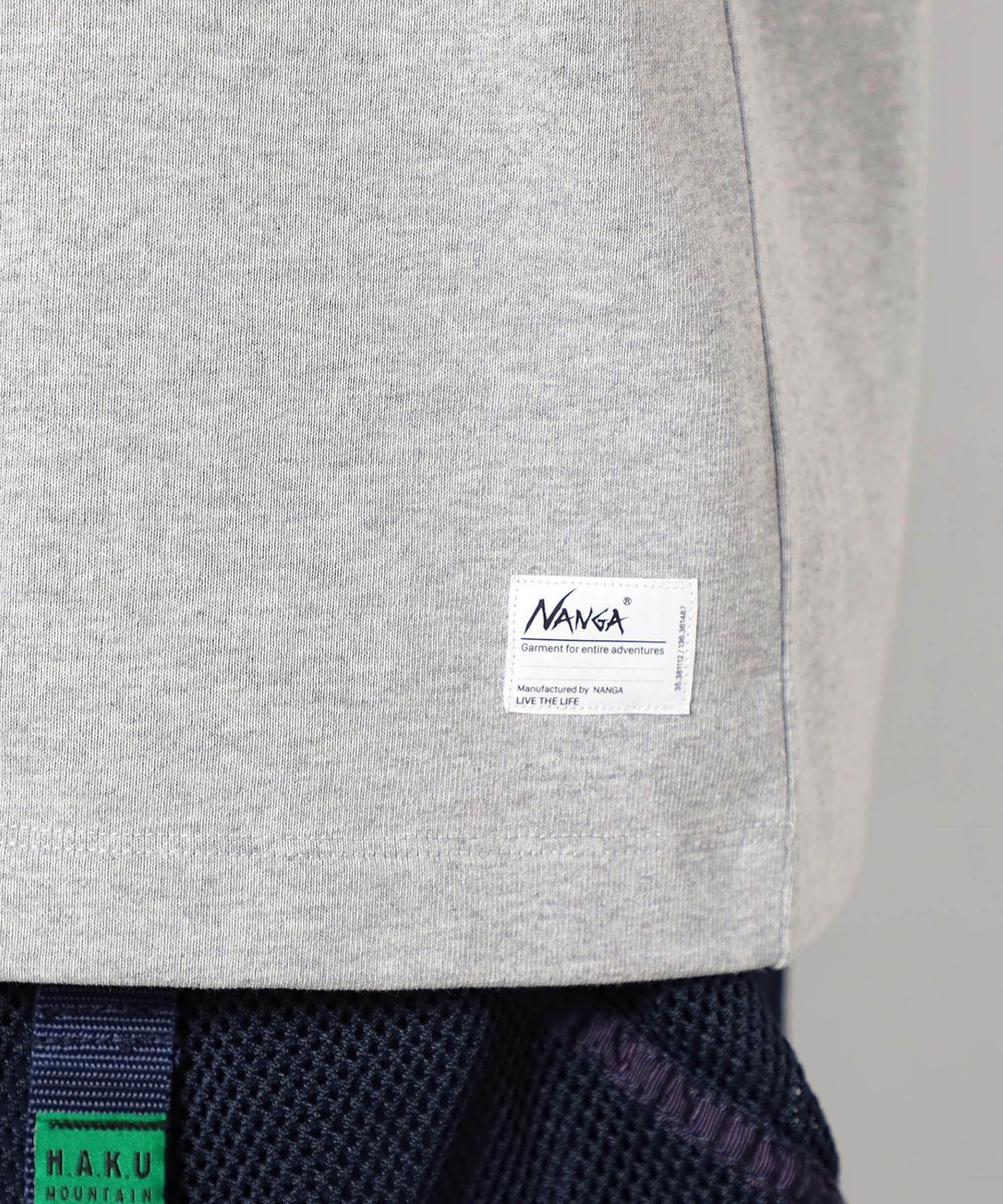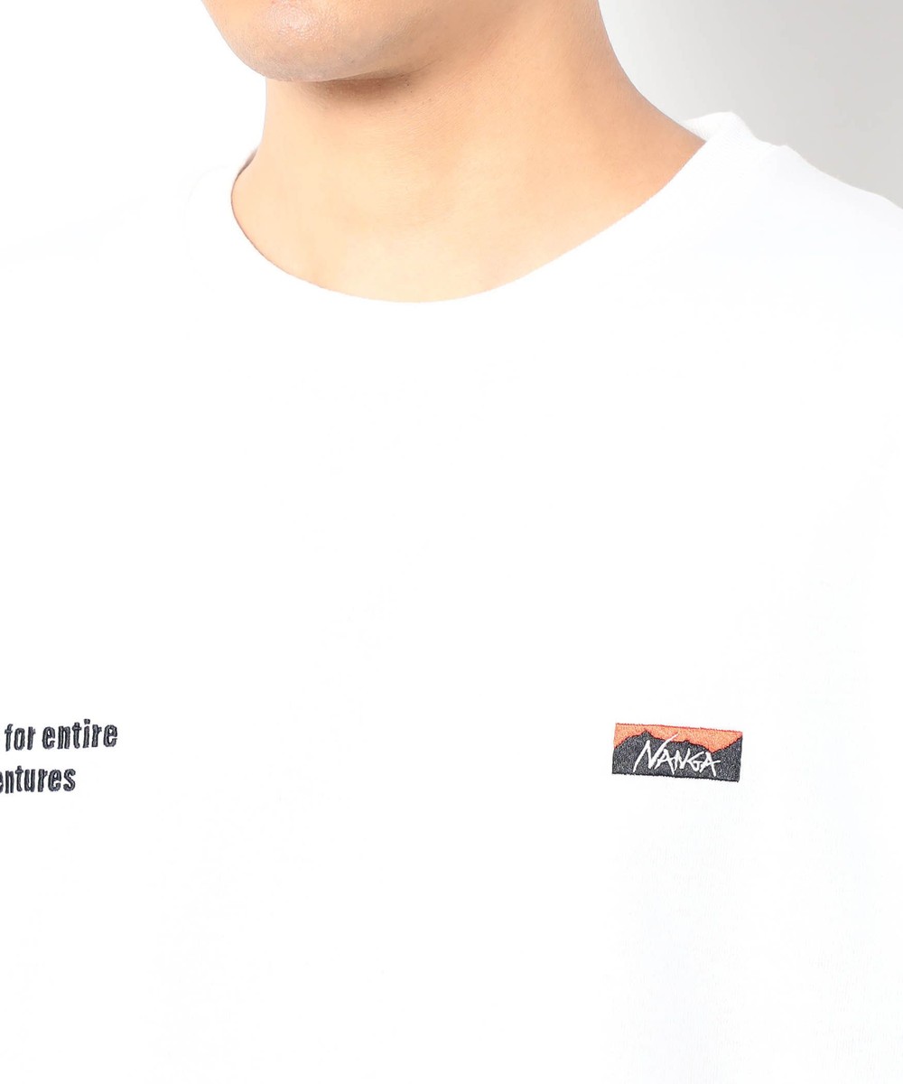 左胸にはNANGAのボックスロゴ刺繍、右胸には「Garment for entire adventures.」の刺繍を配置。