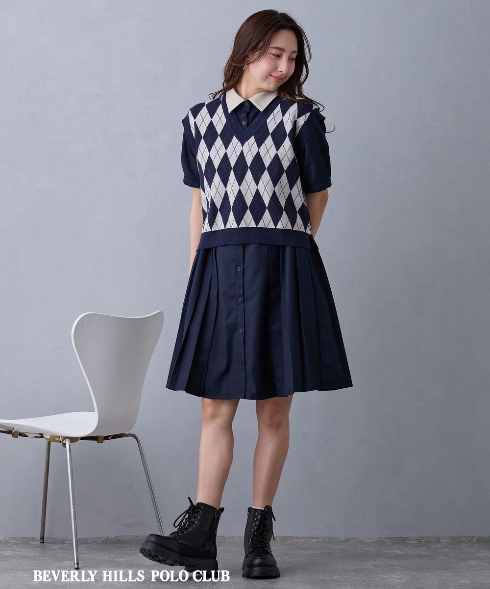 サイドのプリーツや、ひざまである丈がプレッピーでトレンド感のある一枚。