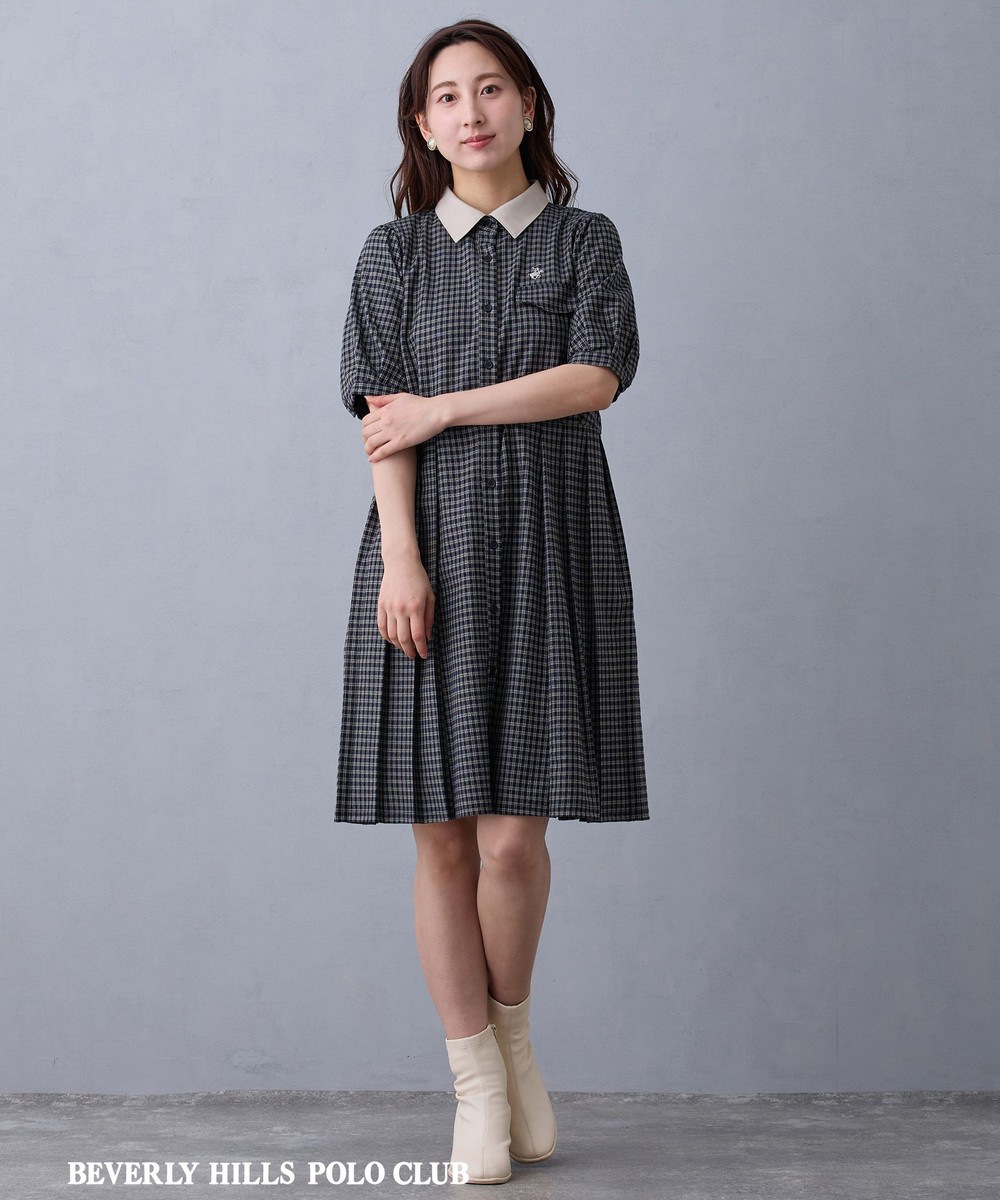 衿の配色がクラシカルなワンピース。