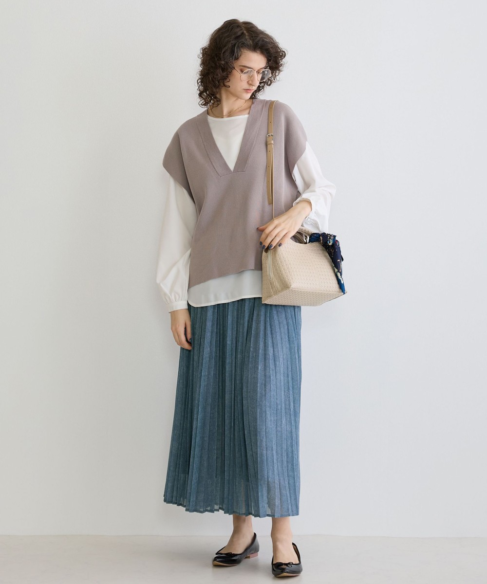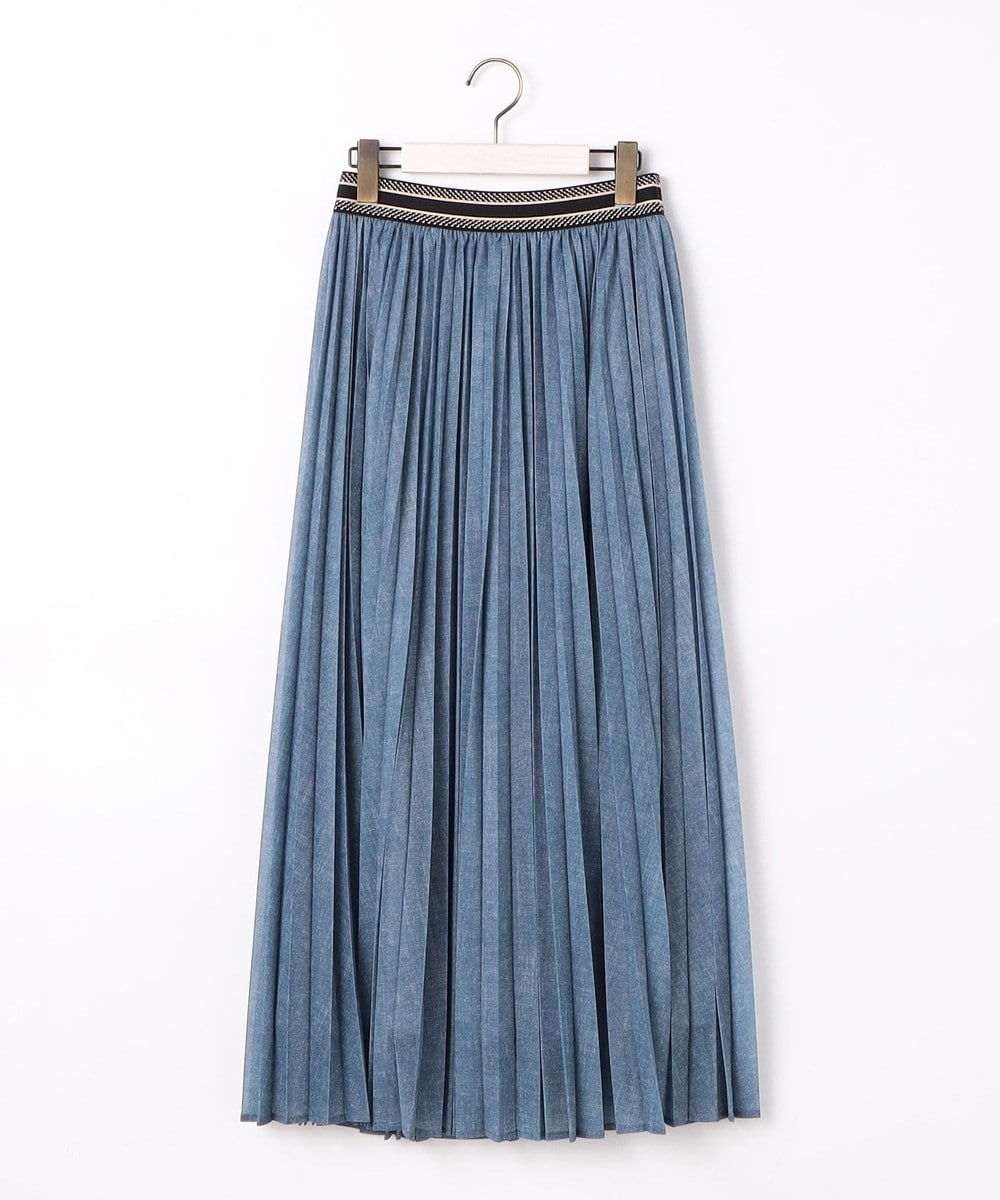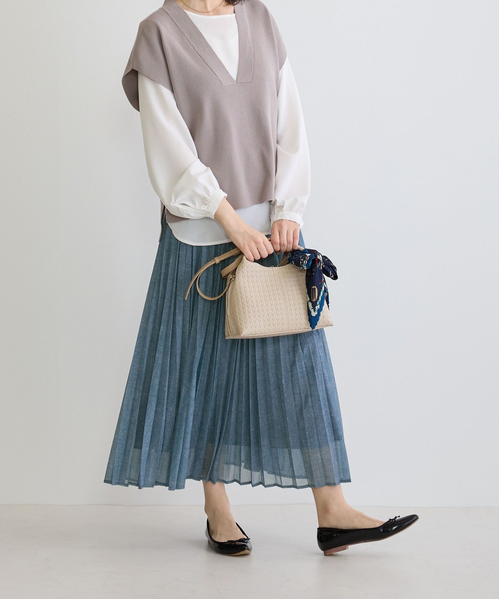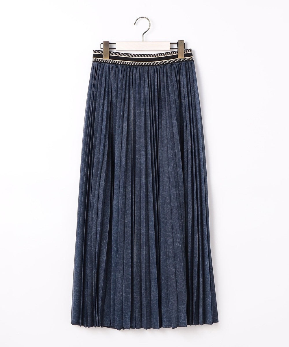 シアー感ある素材はデニム調でカジュアルダウン。ふんわりと揺れるプリーツ感が◎