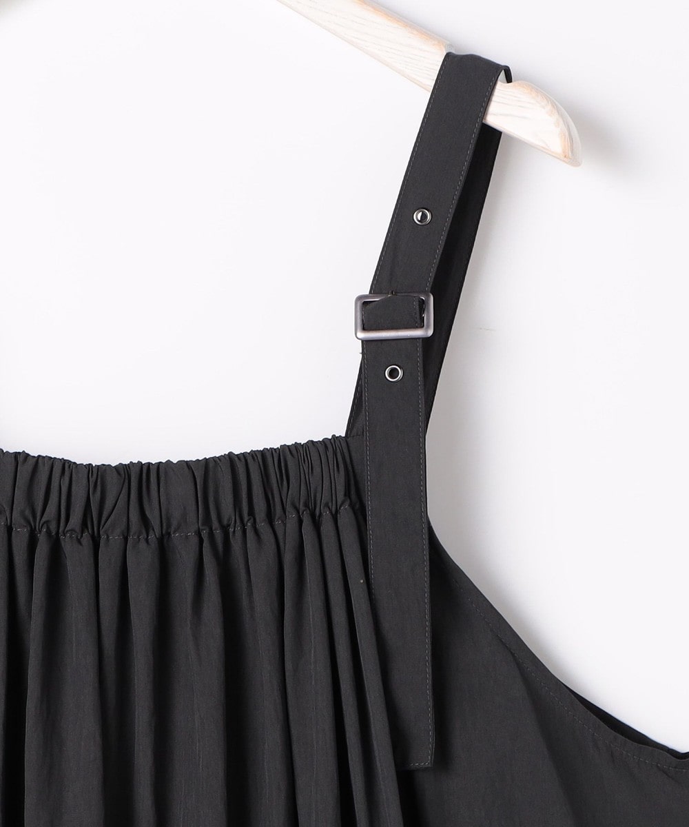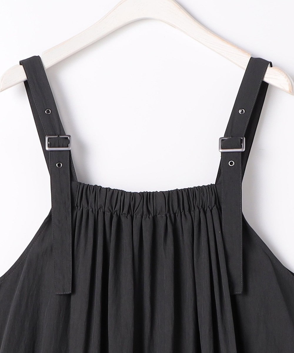 ミリタリーな雰囲気の中で、胸元のギャザ-が女性らしさを演出しています。