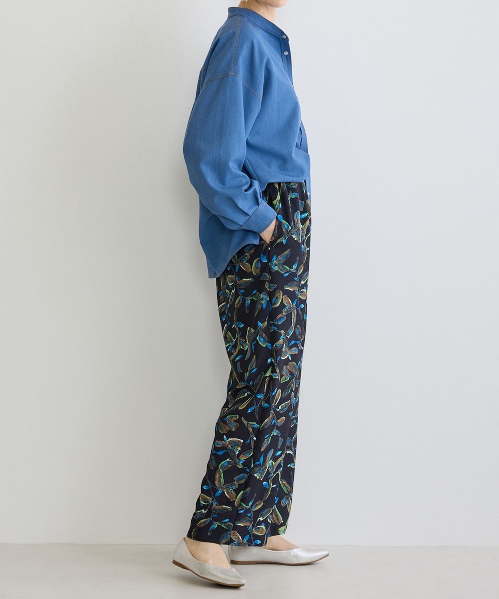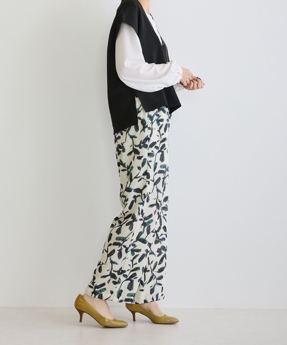 大人柄のプリントデザインとシックな色合いが上品なプリントパンツ。