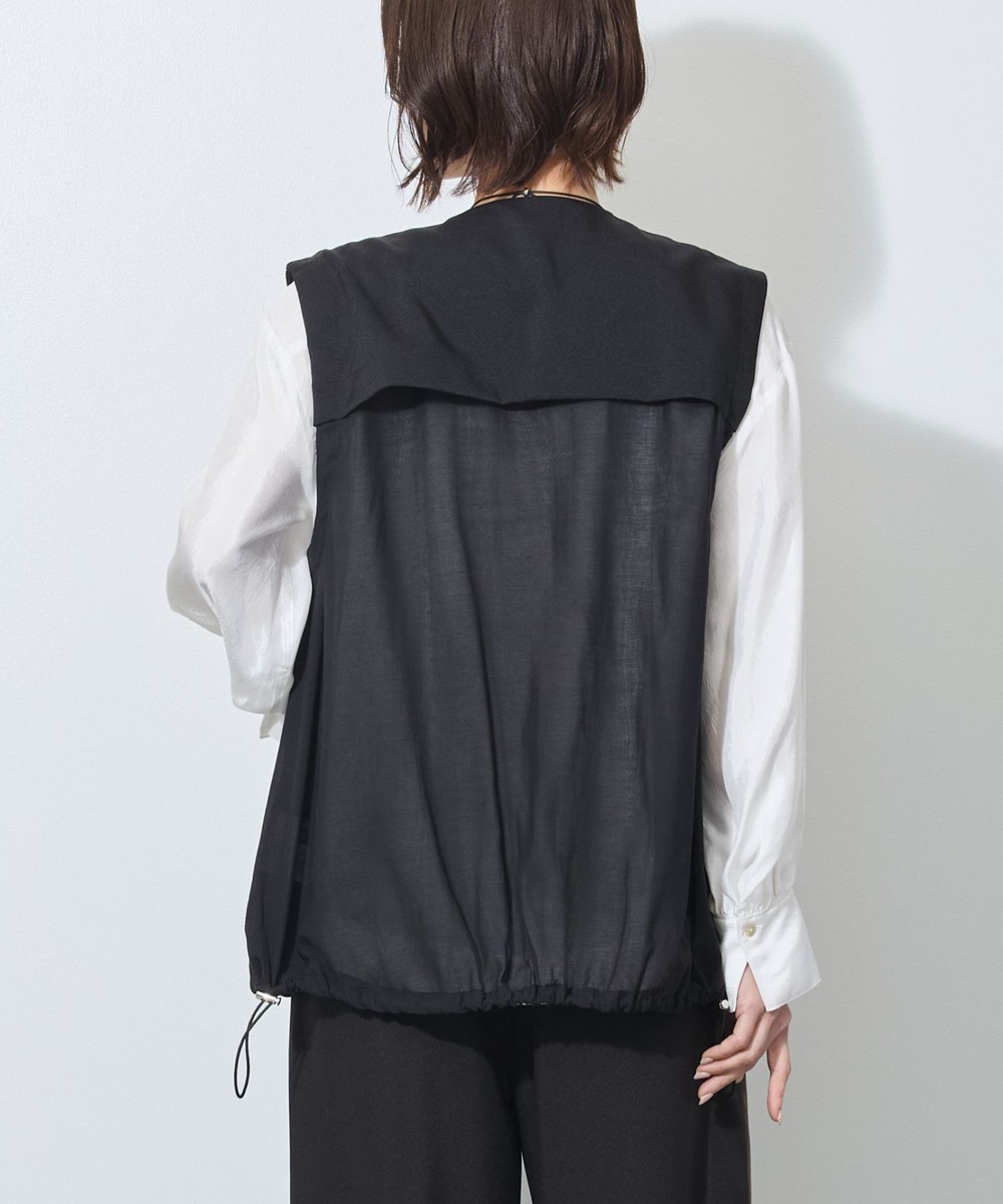 前身頃のレイヤード部分と後身頃に別素材を使用しています。