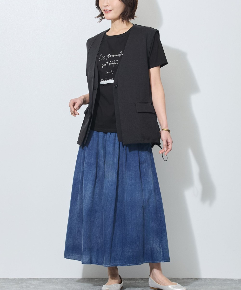 ワイドパンツなど、落ち感のある素材のボトムと合わせれば