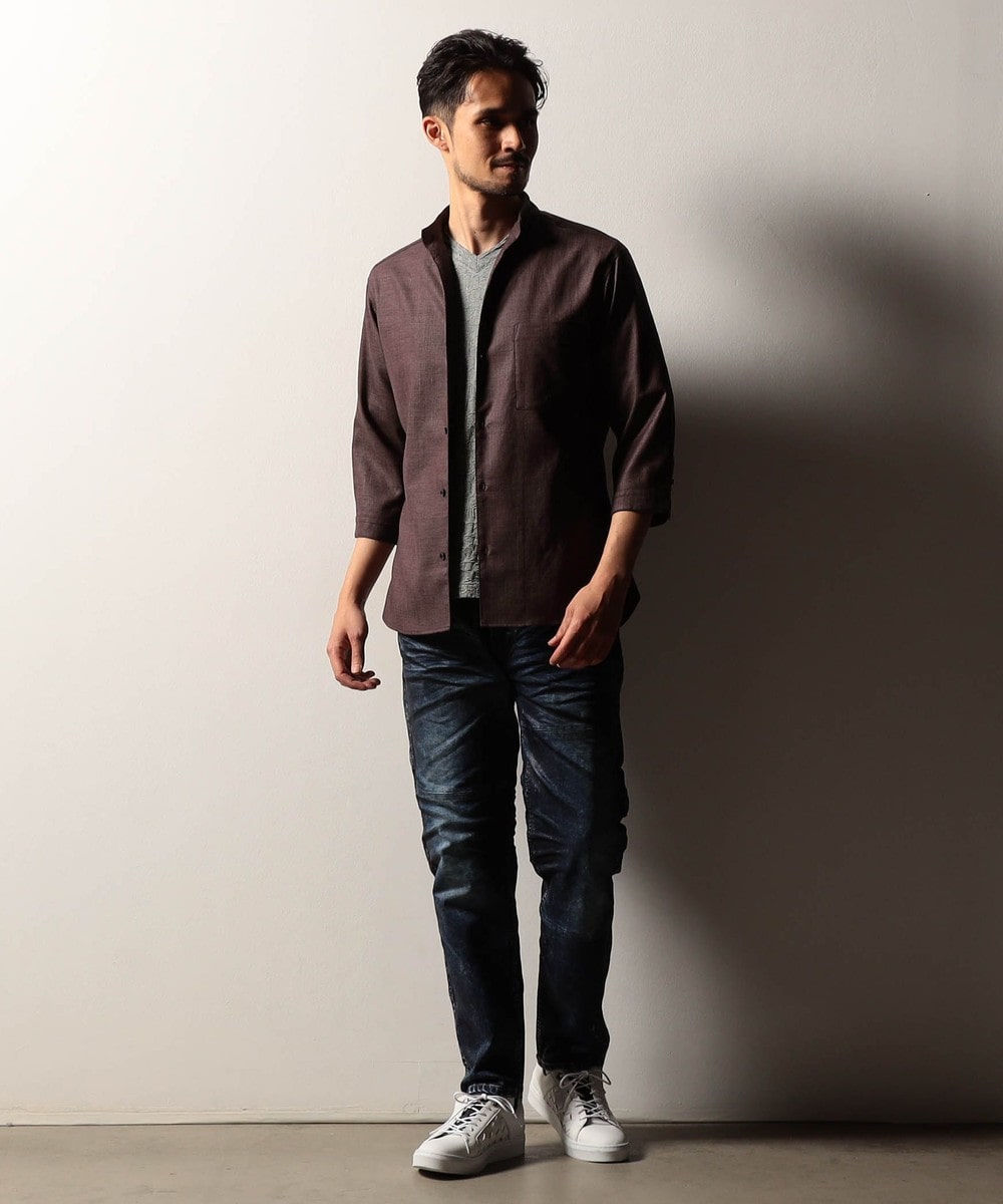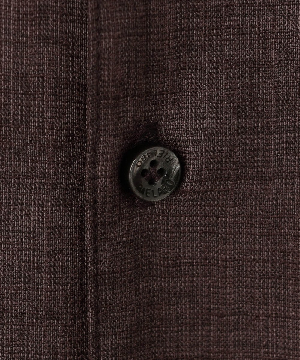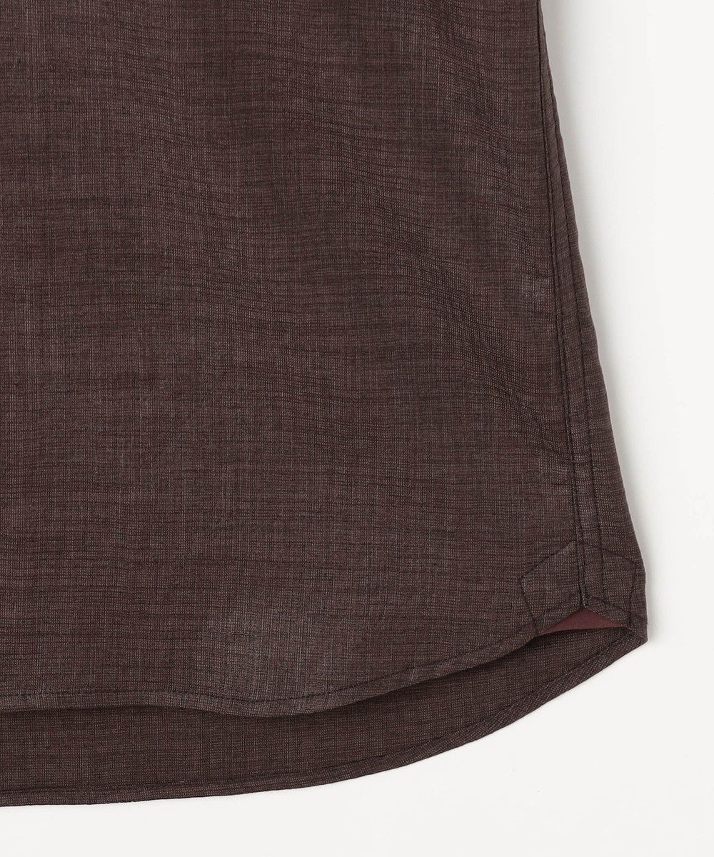 シャリ感のある風合いとストレッチ性、生地の最終仕上げでカレンダー加工とエアタンブラー加工を施す事でナチュラルな風合いと光沢感を特徴にした変わり素材です。シワになりにくく、イージーケア性も高いです。